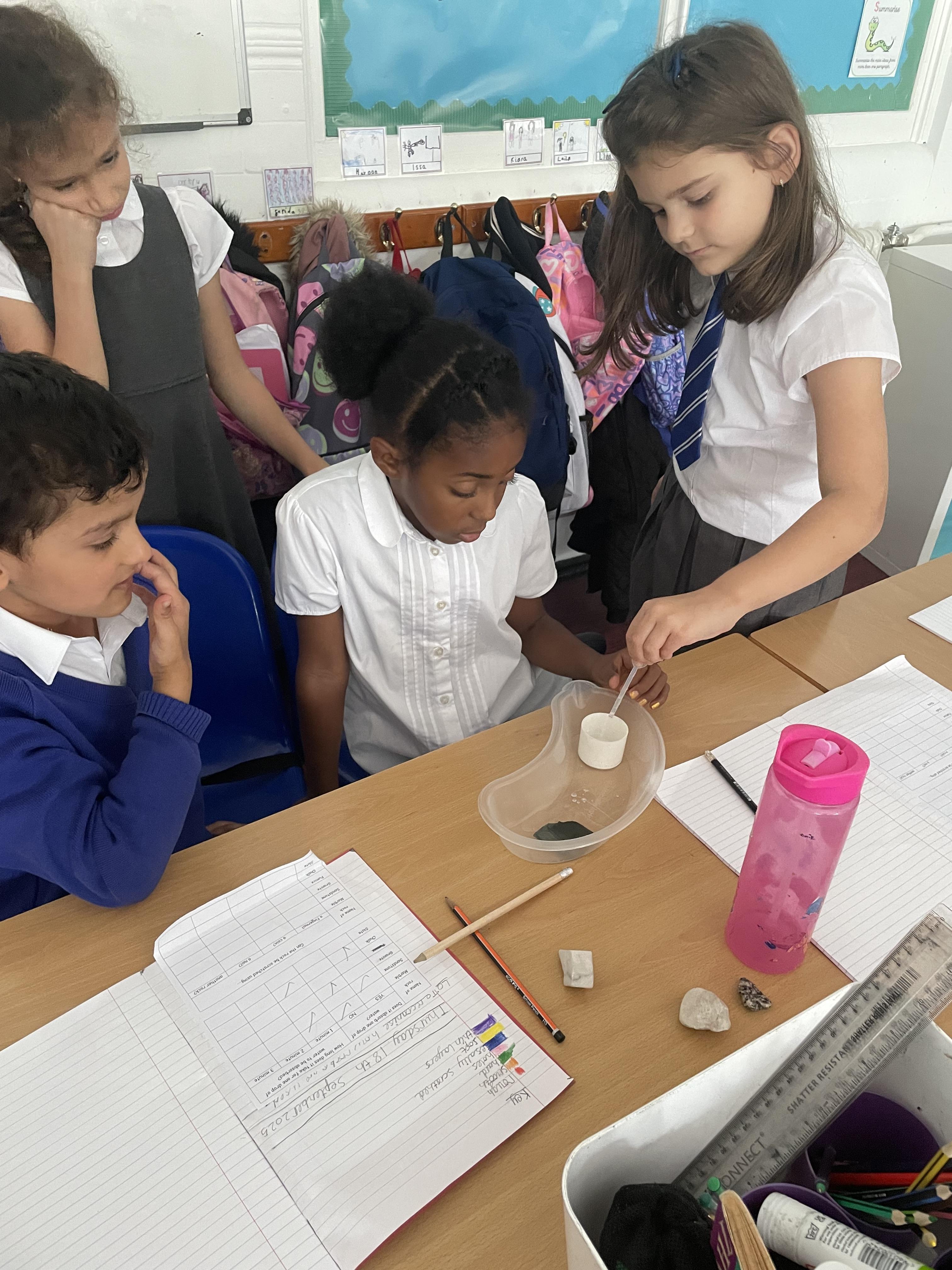 The children completed a Science experiment to see which rocks absorbed water and which ones did not.