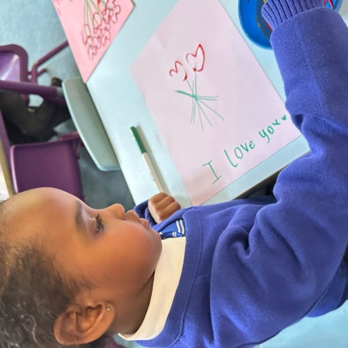 Reception pupils celebrated Valentine’s Day by creating thoughtful cards for their loved ones, showing gratitude for the care and kindness they receive.