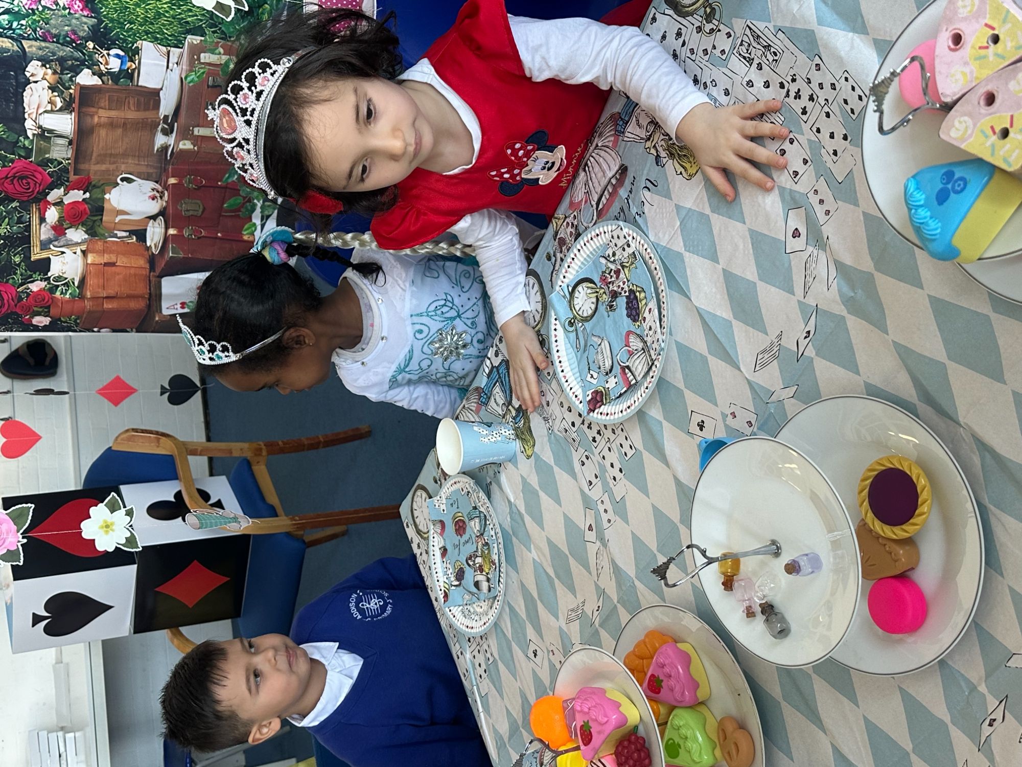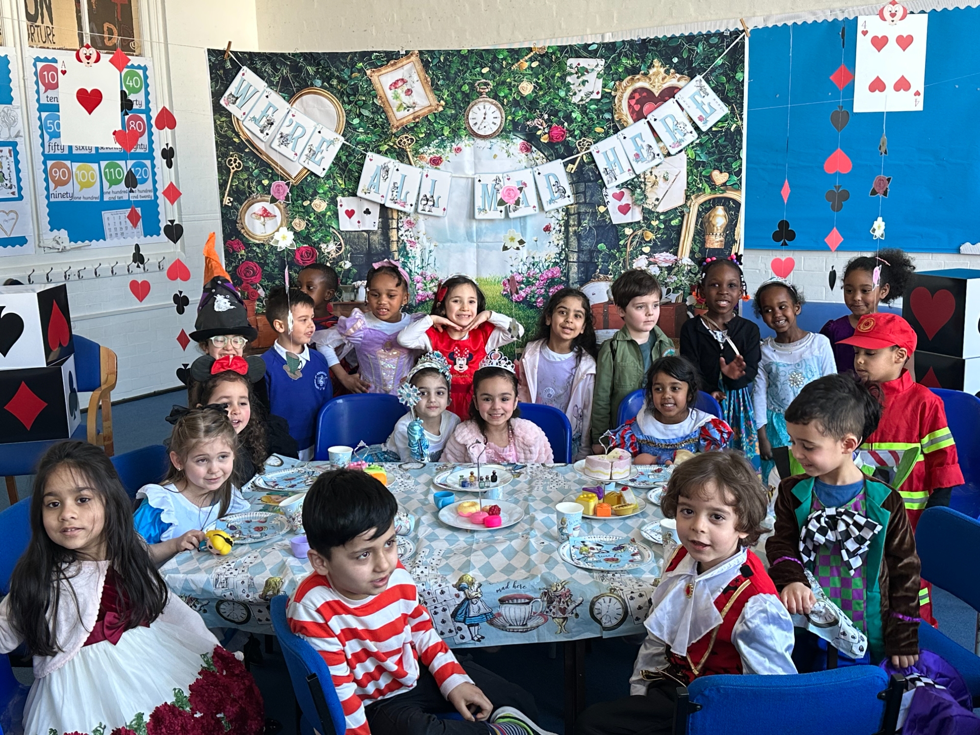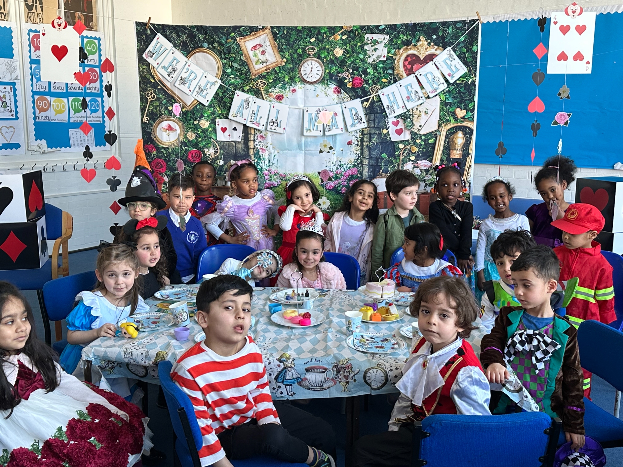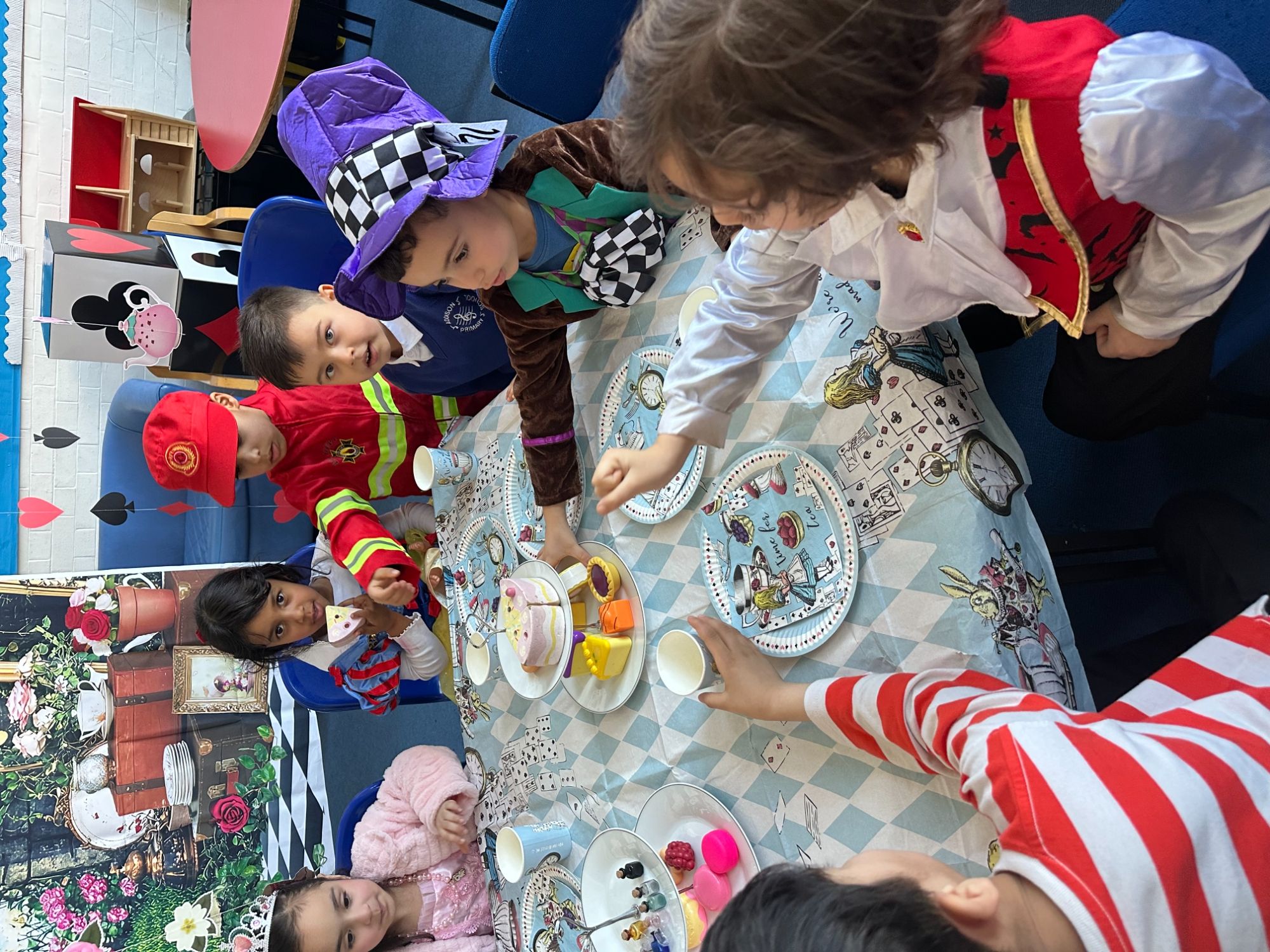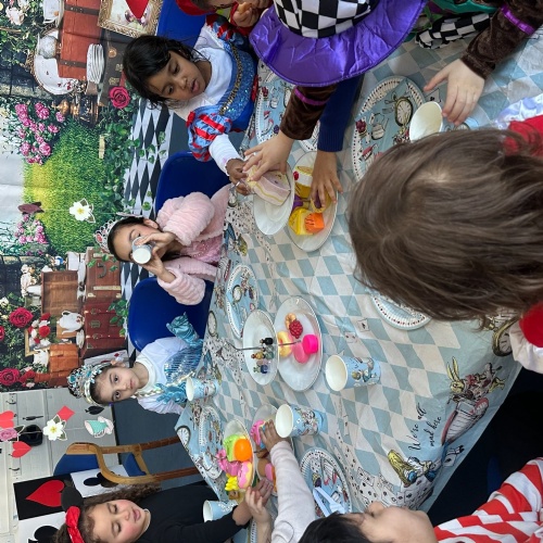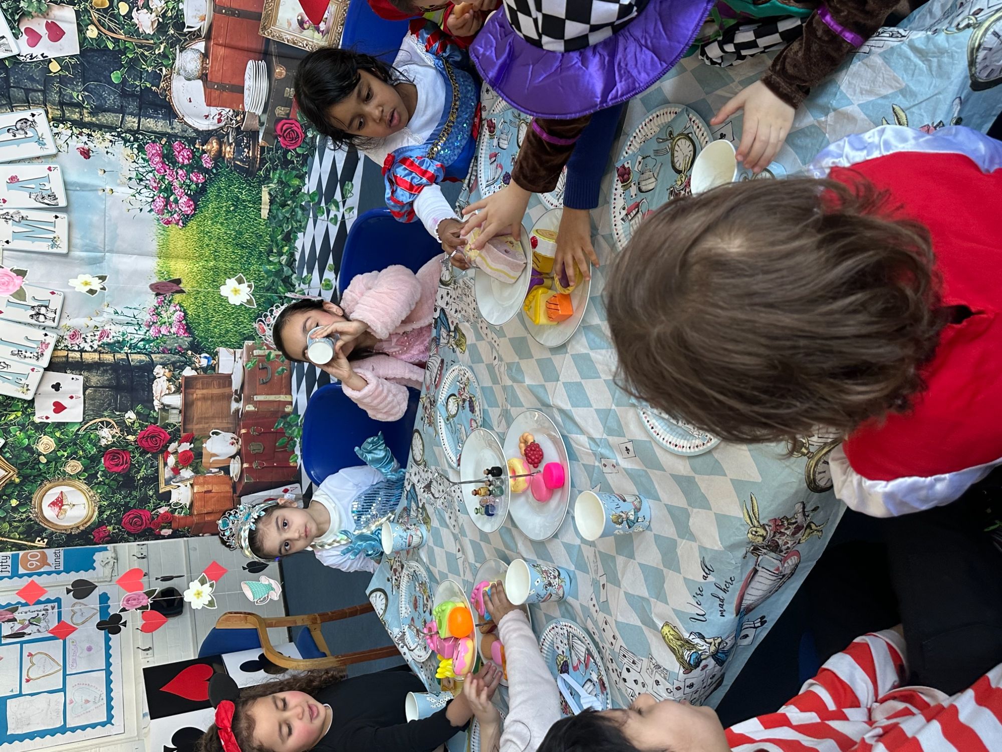 For World Book Day, pupils dressed up as their favourite book characters. Our theme this year was ‘Alice in Wonderland’. Pupils went down the rabbit hole and enjoyed the Mad Hatter’s Afternoon Tea, ‘drinking’ tea and playing cards.