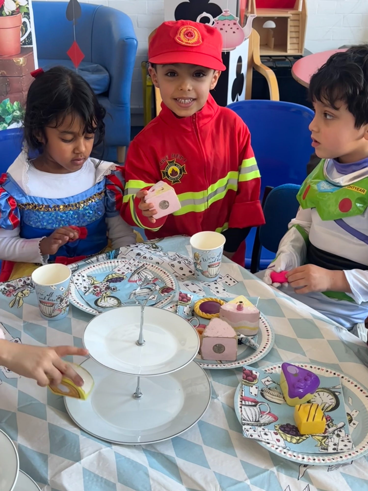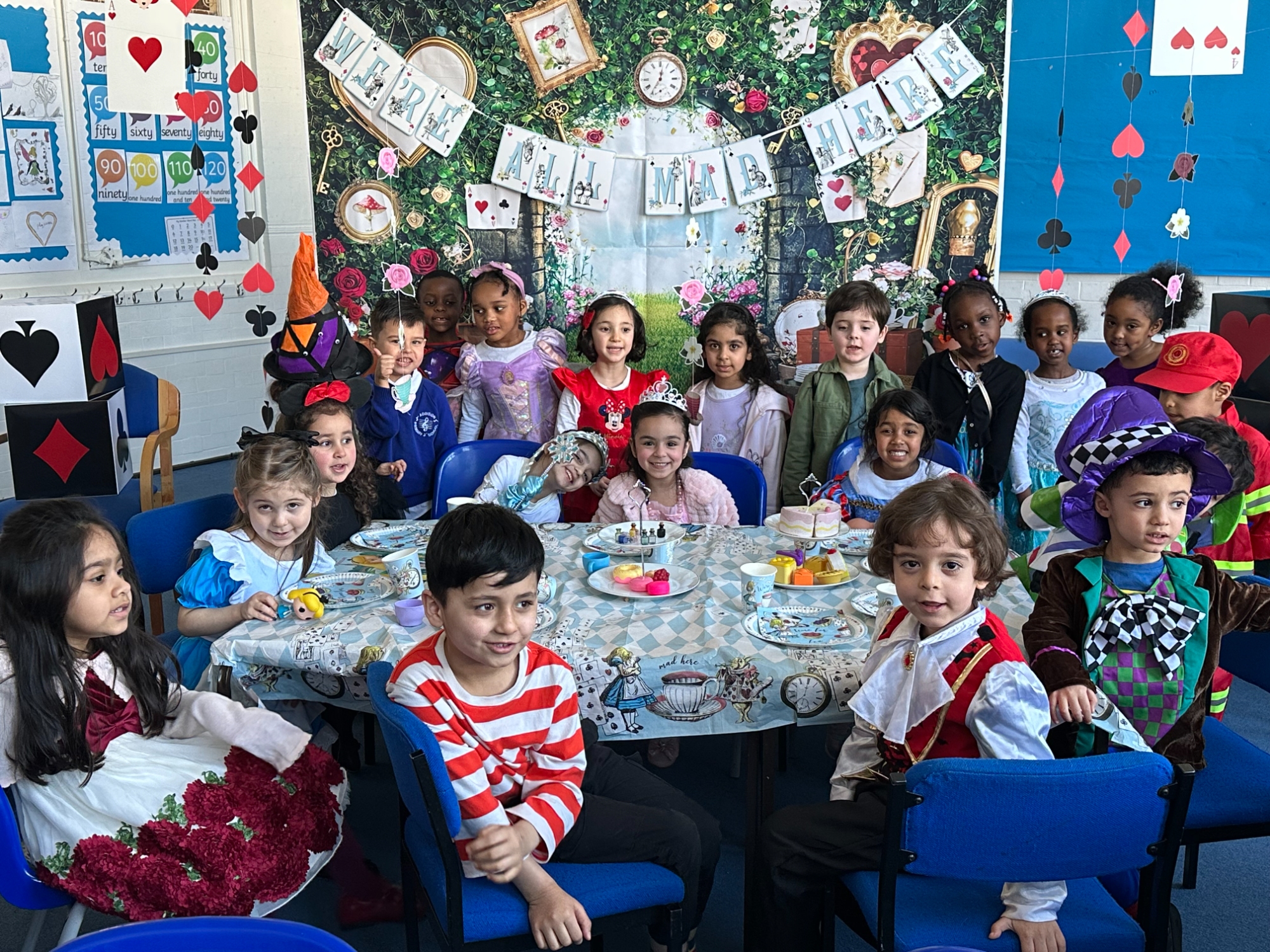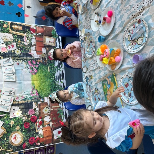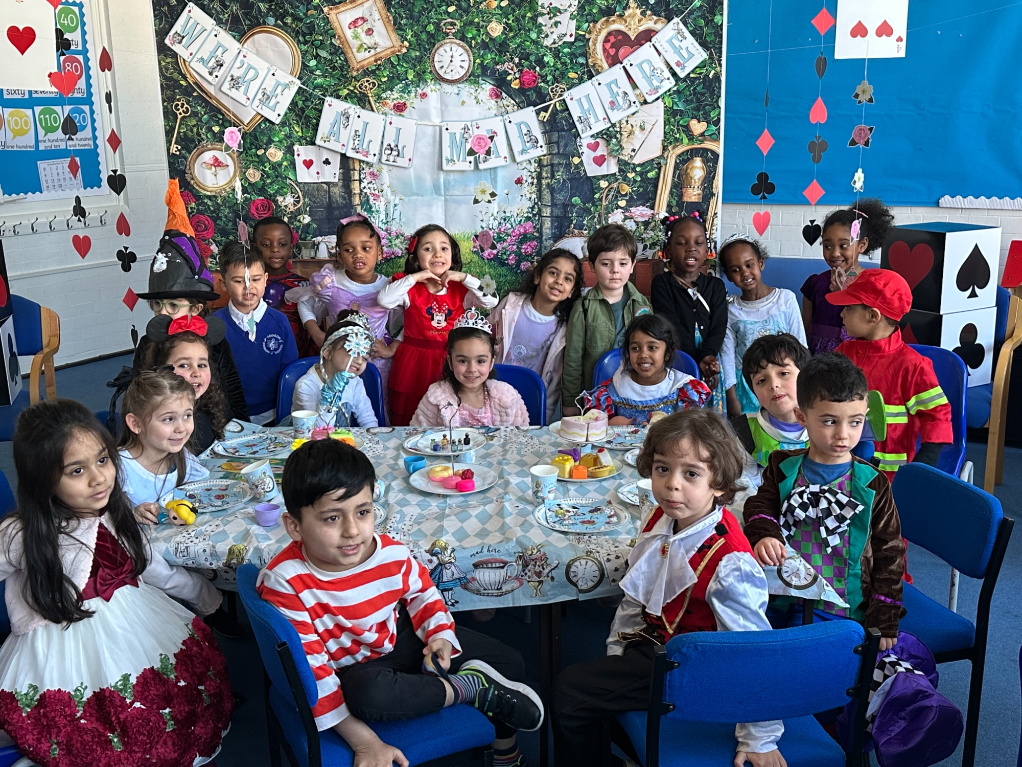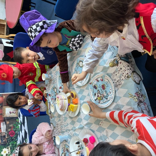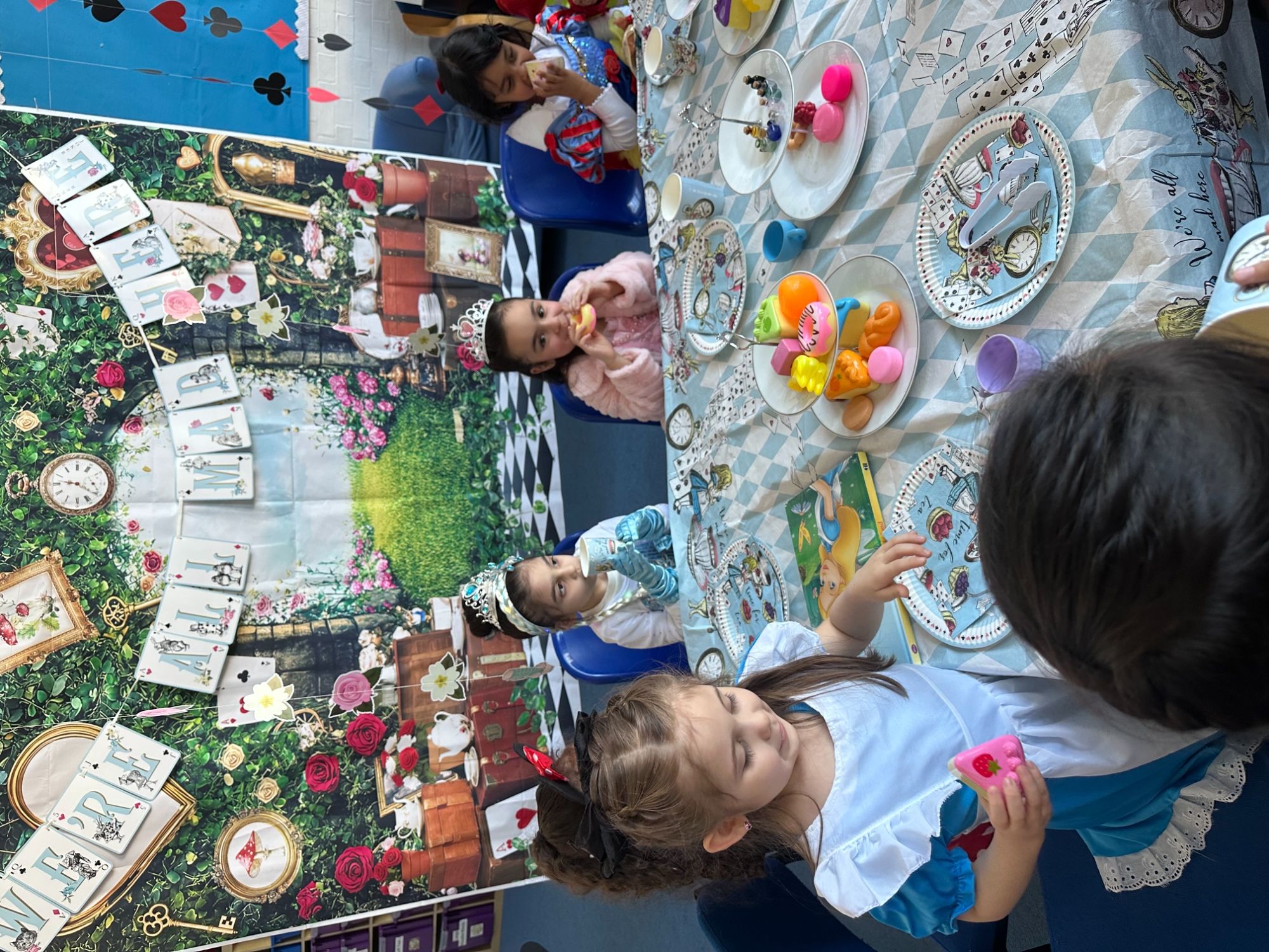 For World Book Day, pupils dressed up as their favourite book characters. Our theme this year was ‘Alice in Wonderland’. Pupils went down the rabbit hole and enjoyed the Mad Hatter’s Afternoon Tea, ‘drinking’ tea and playing cards.
