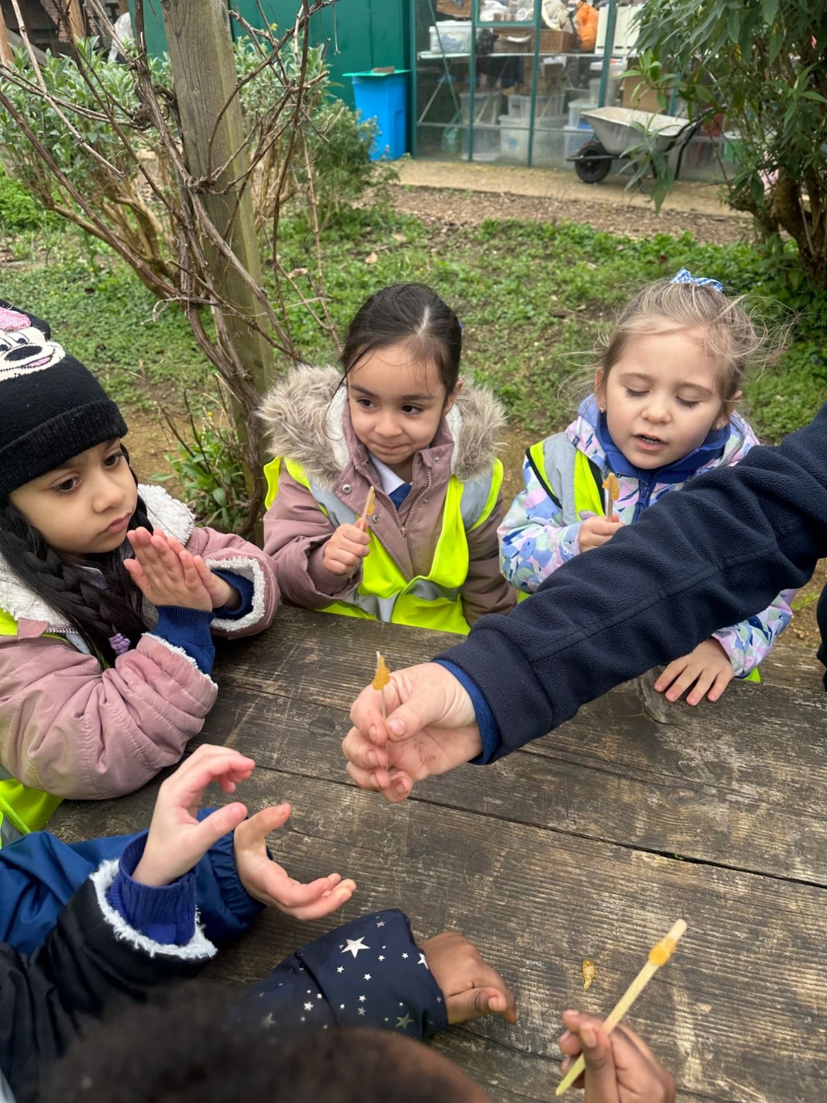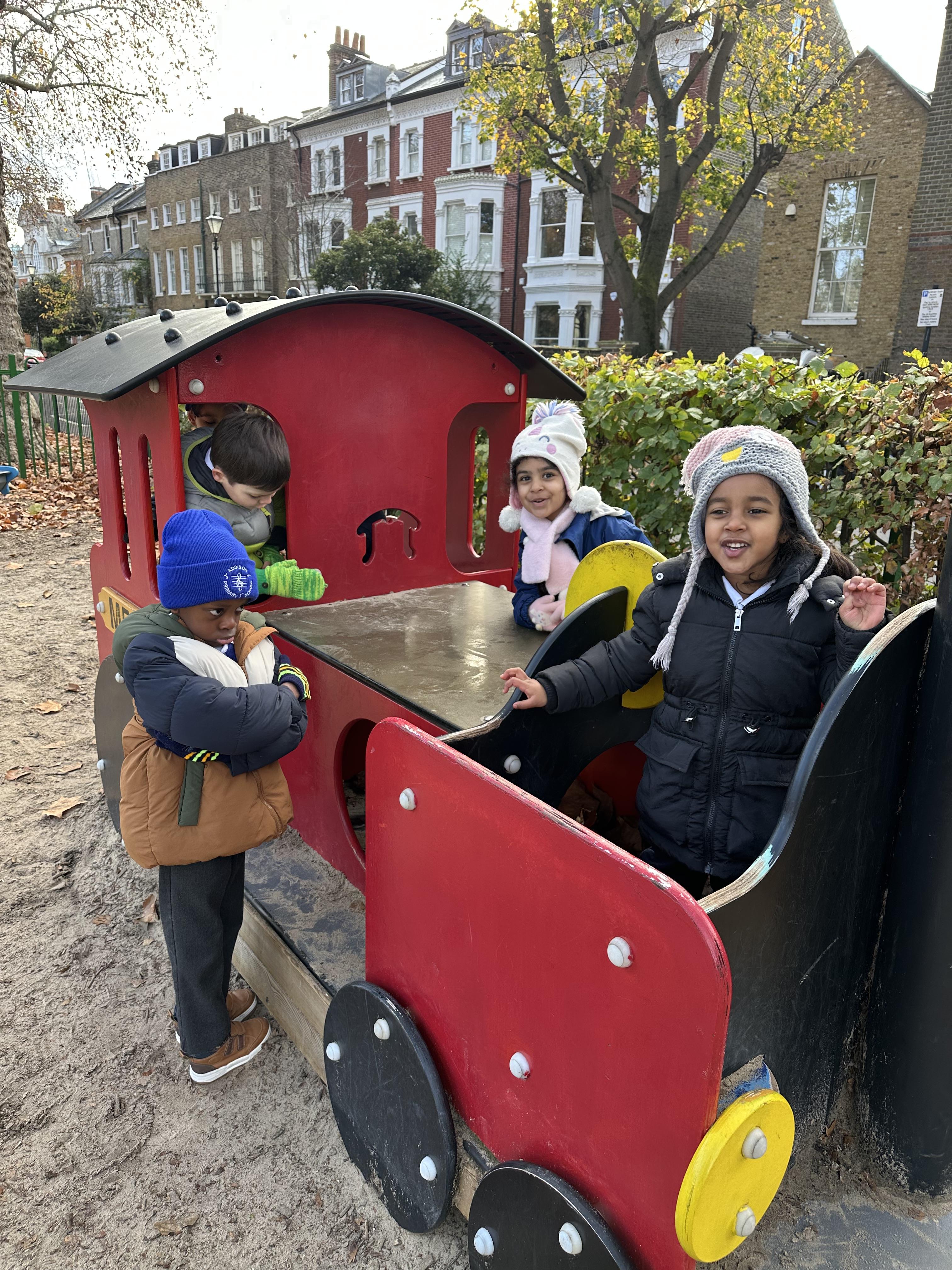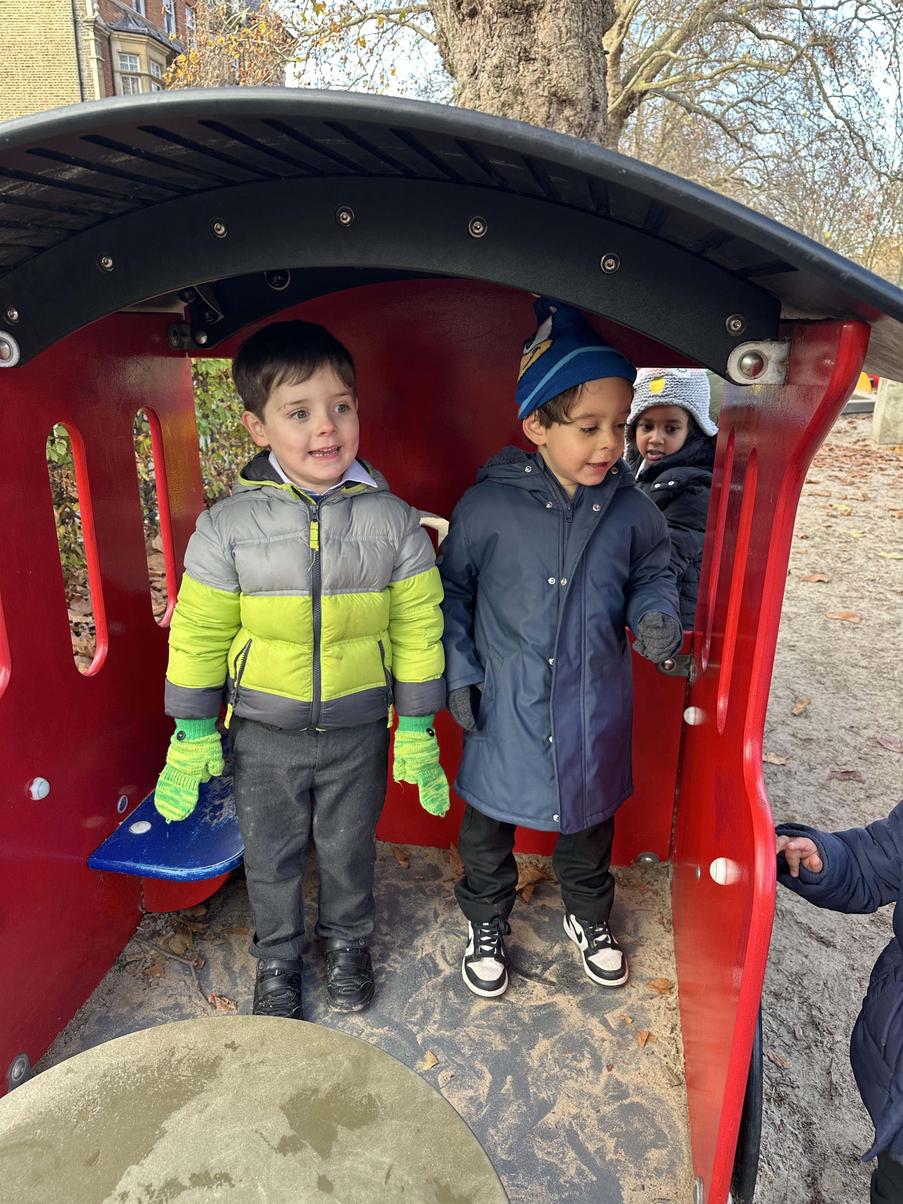 Our children had a wonderful day exploring Brook Green. They wrapped up warm for the autumn weather and enjoyed noticing the seasonal changes around them. The children observed the colourful leaves on the ground, the bare branches on some trees and the cooler air that shows winter is on the way. They were excited to spot how nature changes at this time of year.