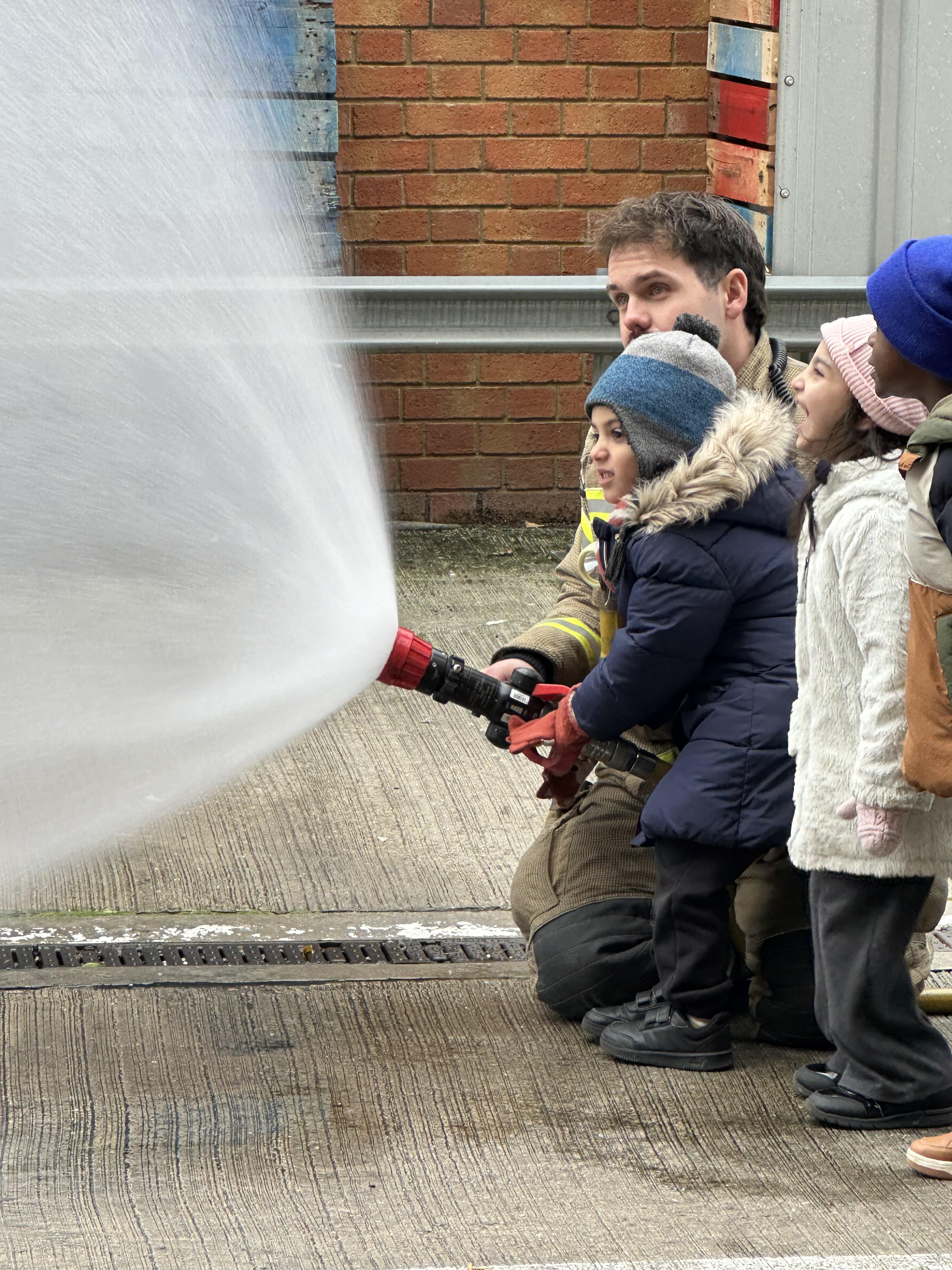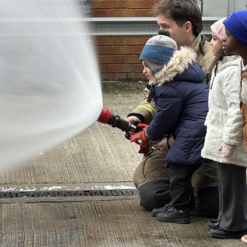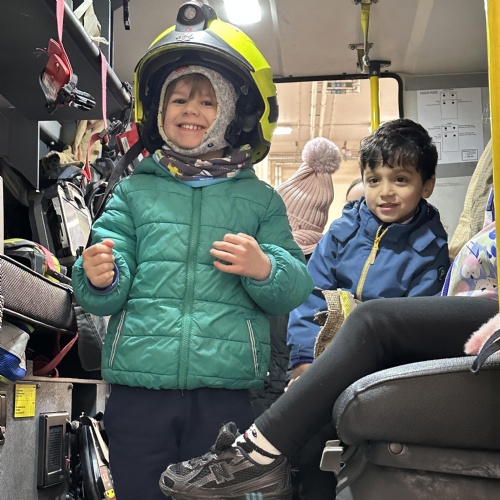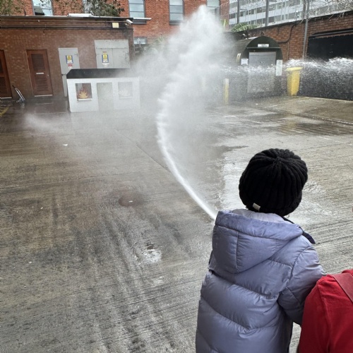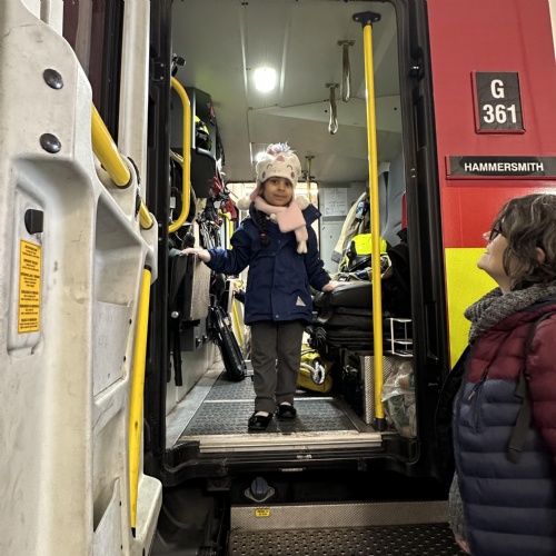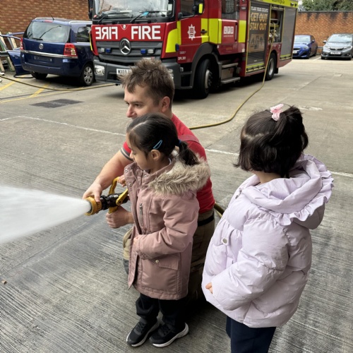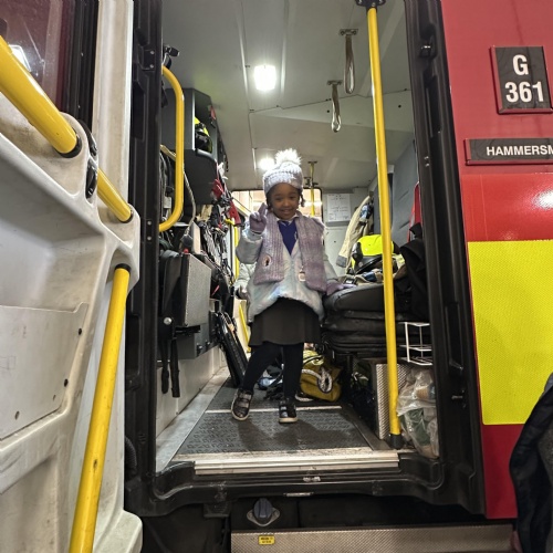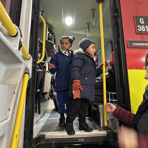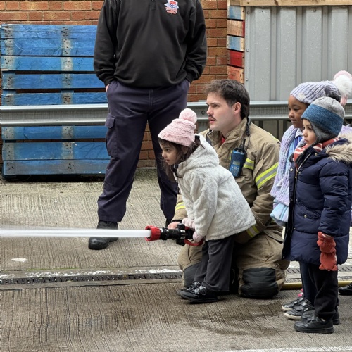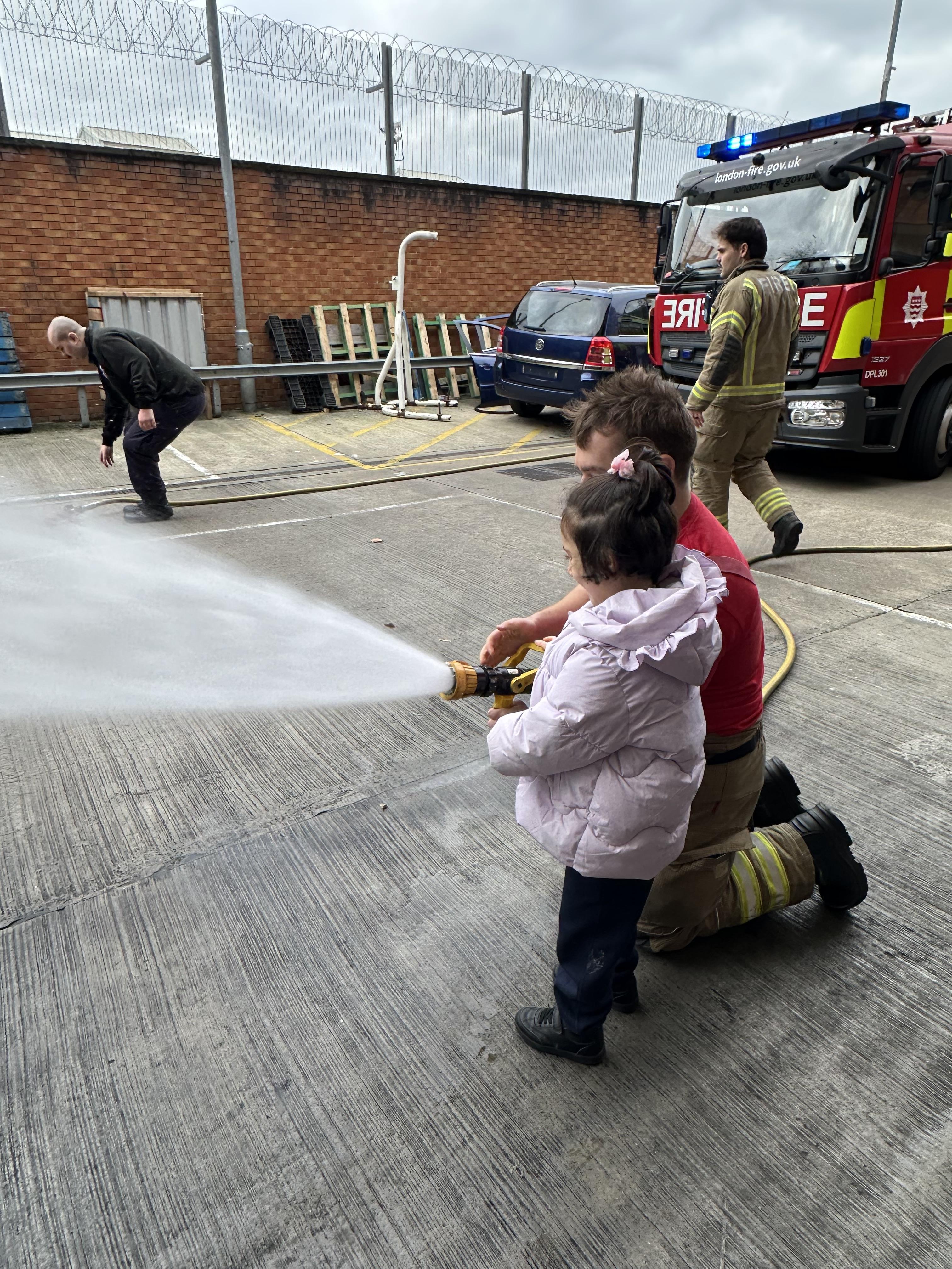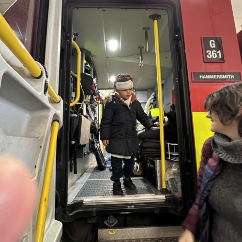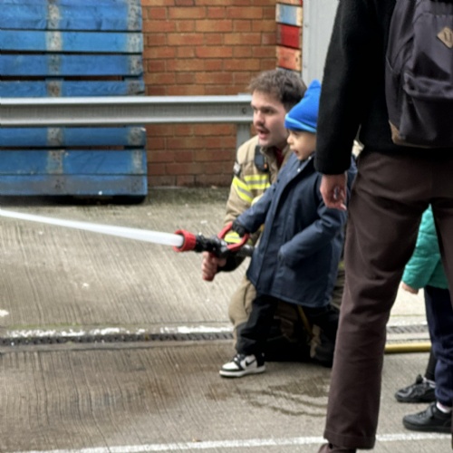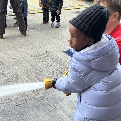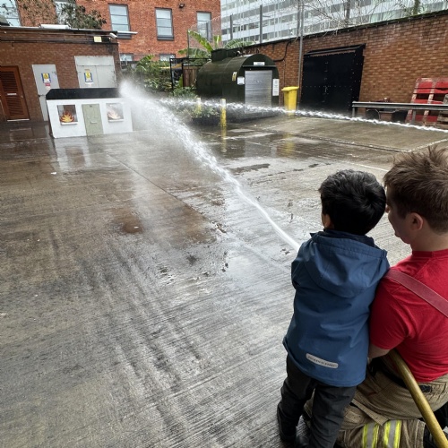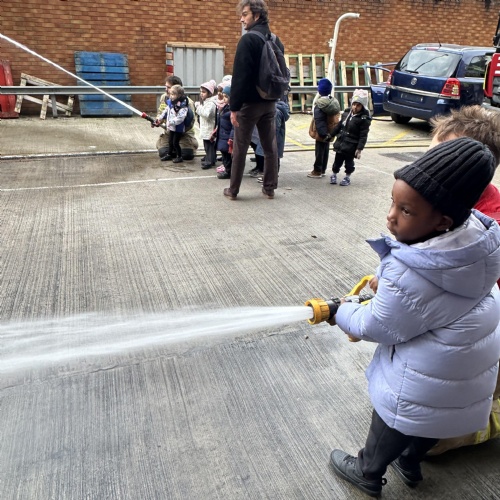 After our time in the park we walked to Hammersmith Fire Station where the firefighters gave us a very warm welcome. The children were delighted to climb onto the fire engine and explore the equipment. They even had the chance to hold the hose and put out a fake fire which was a highlight for many.