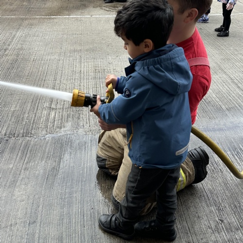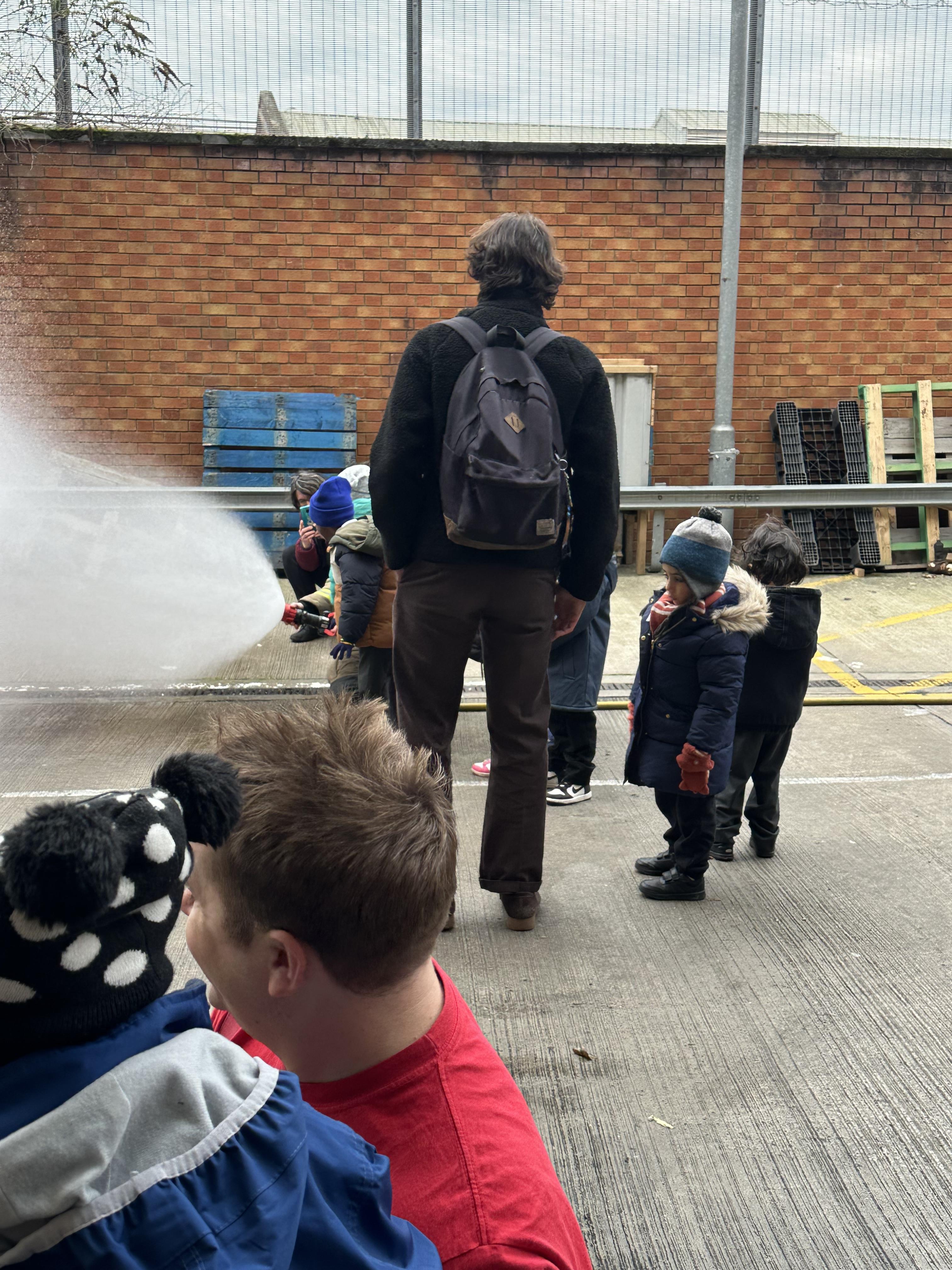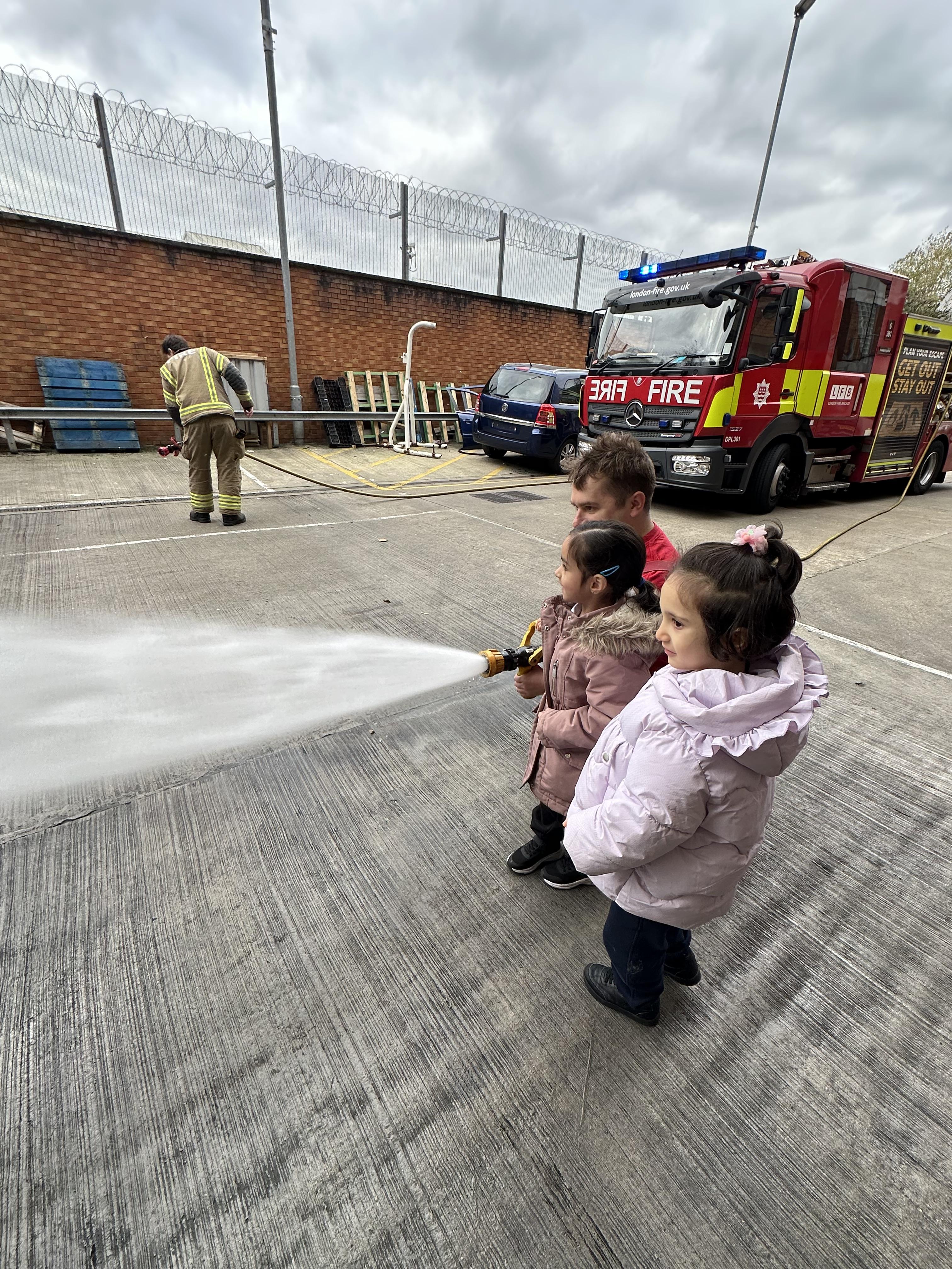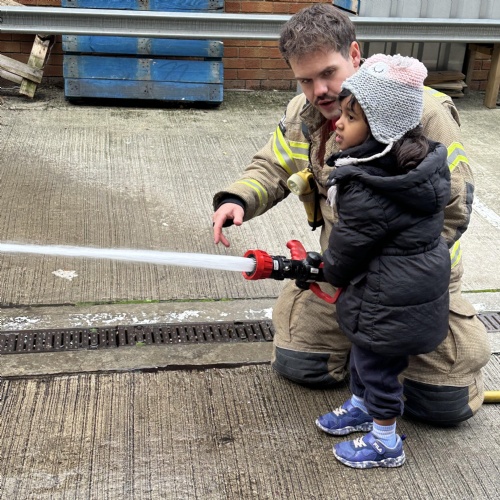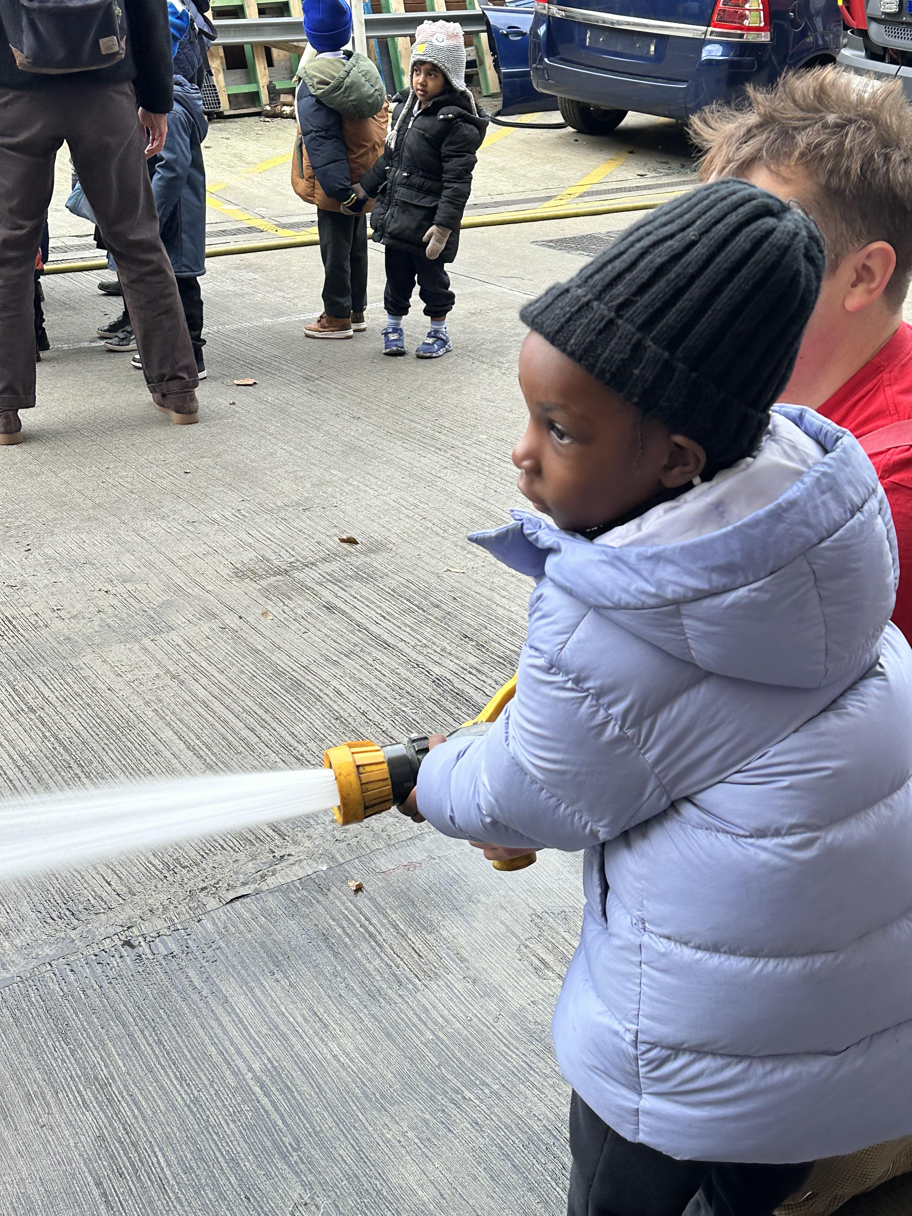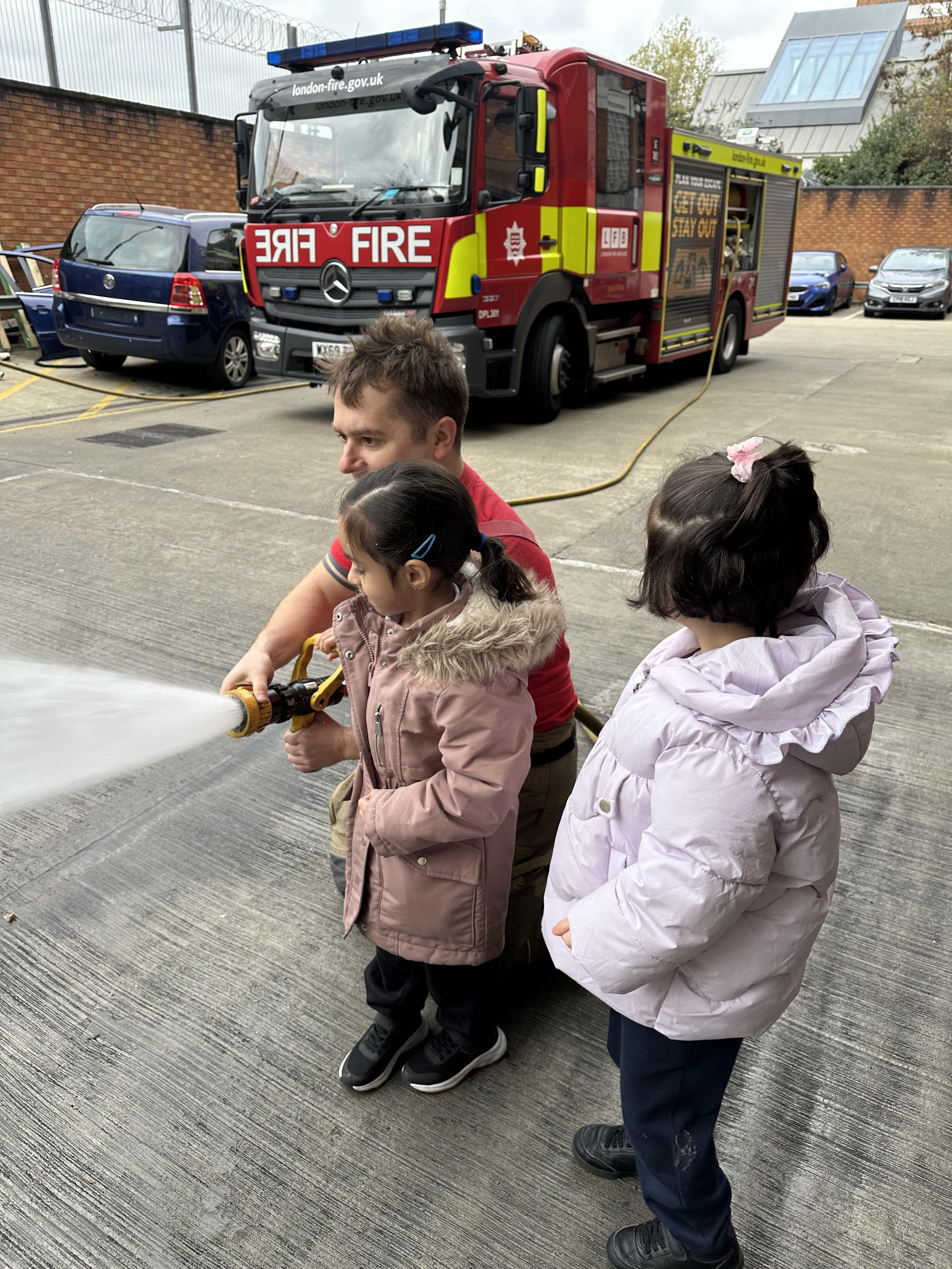 After our time in the park we walked to Hammersmith Fire Station where the firefighters gave us a very warm welcome. The children were delighted to climb onto the fire engine and explore the equipment. They even had the chance to hold the hose and put out a fake fire which was a highlight for many.