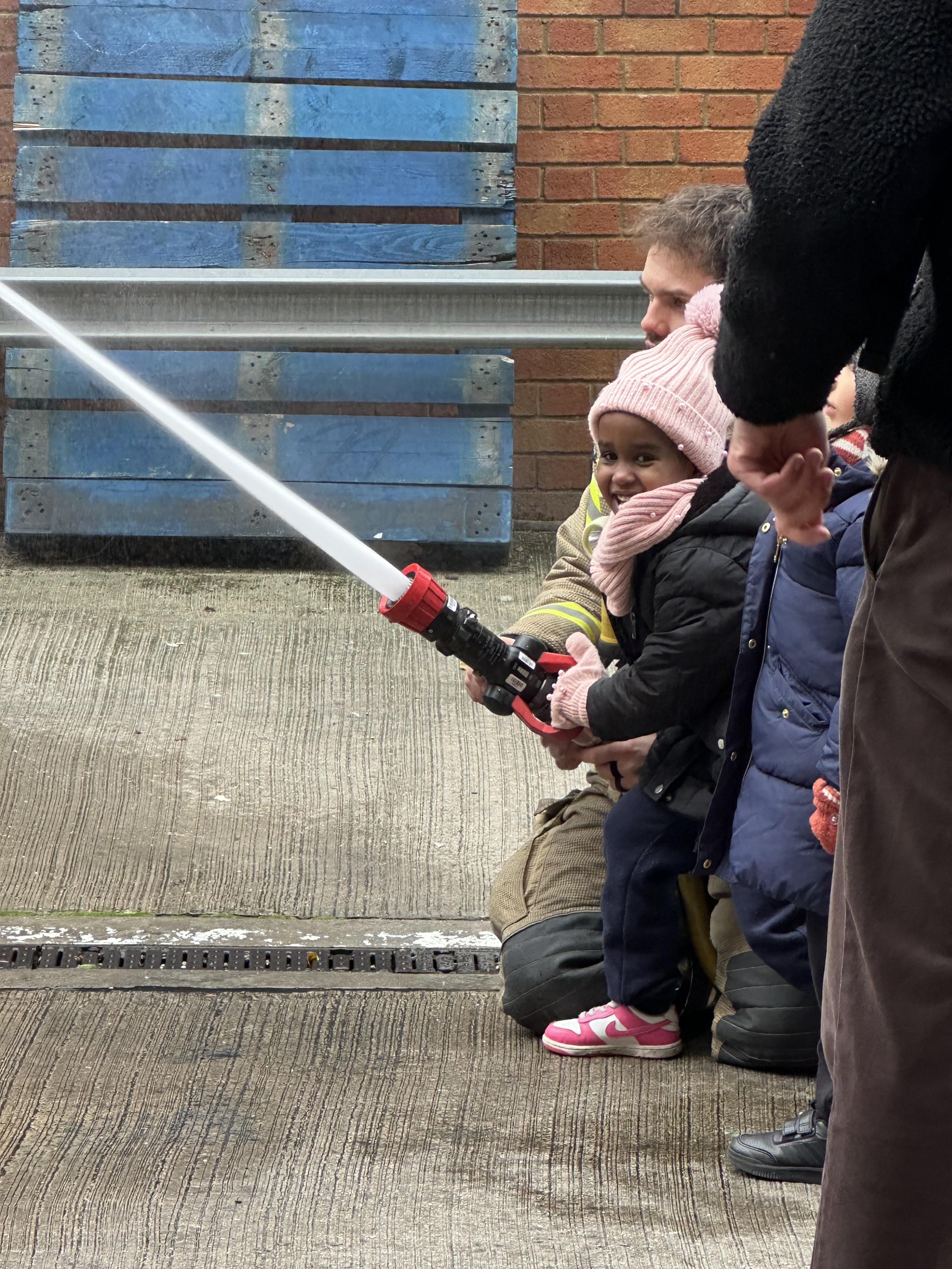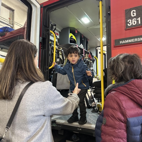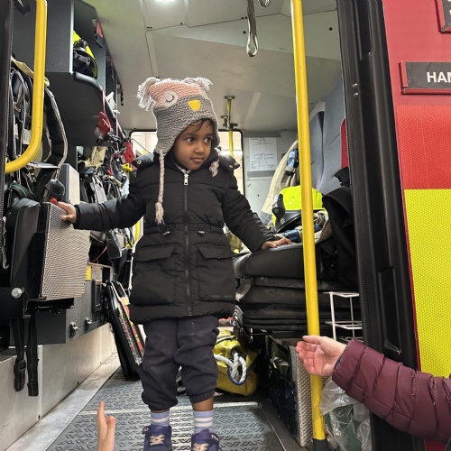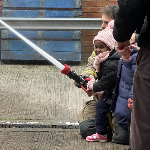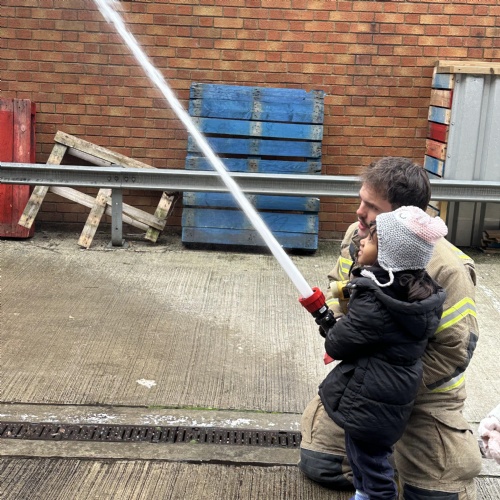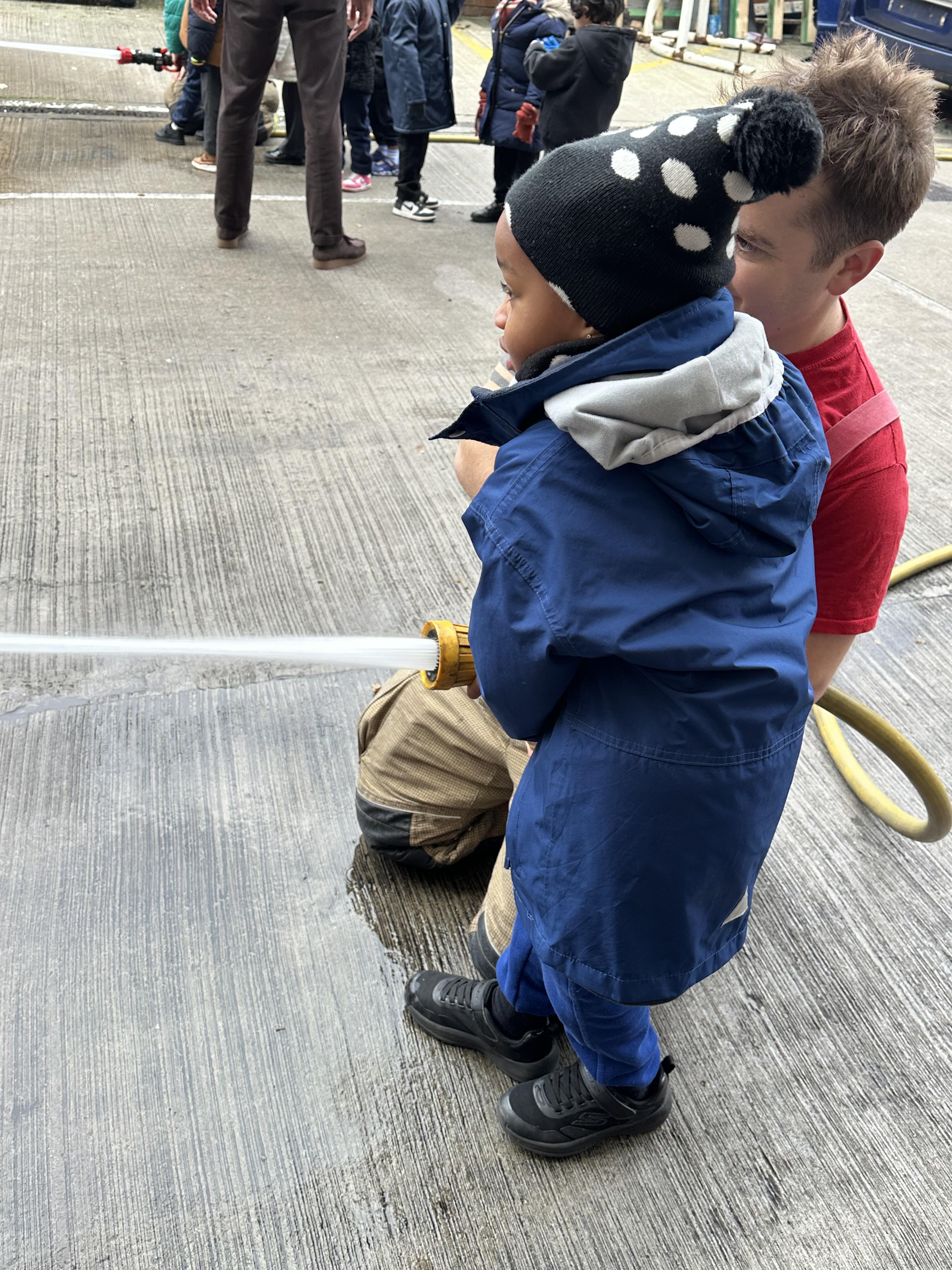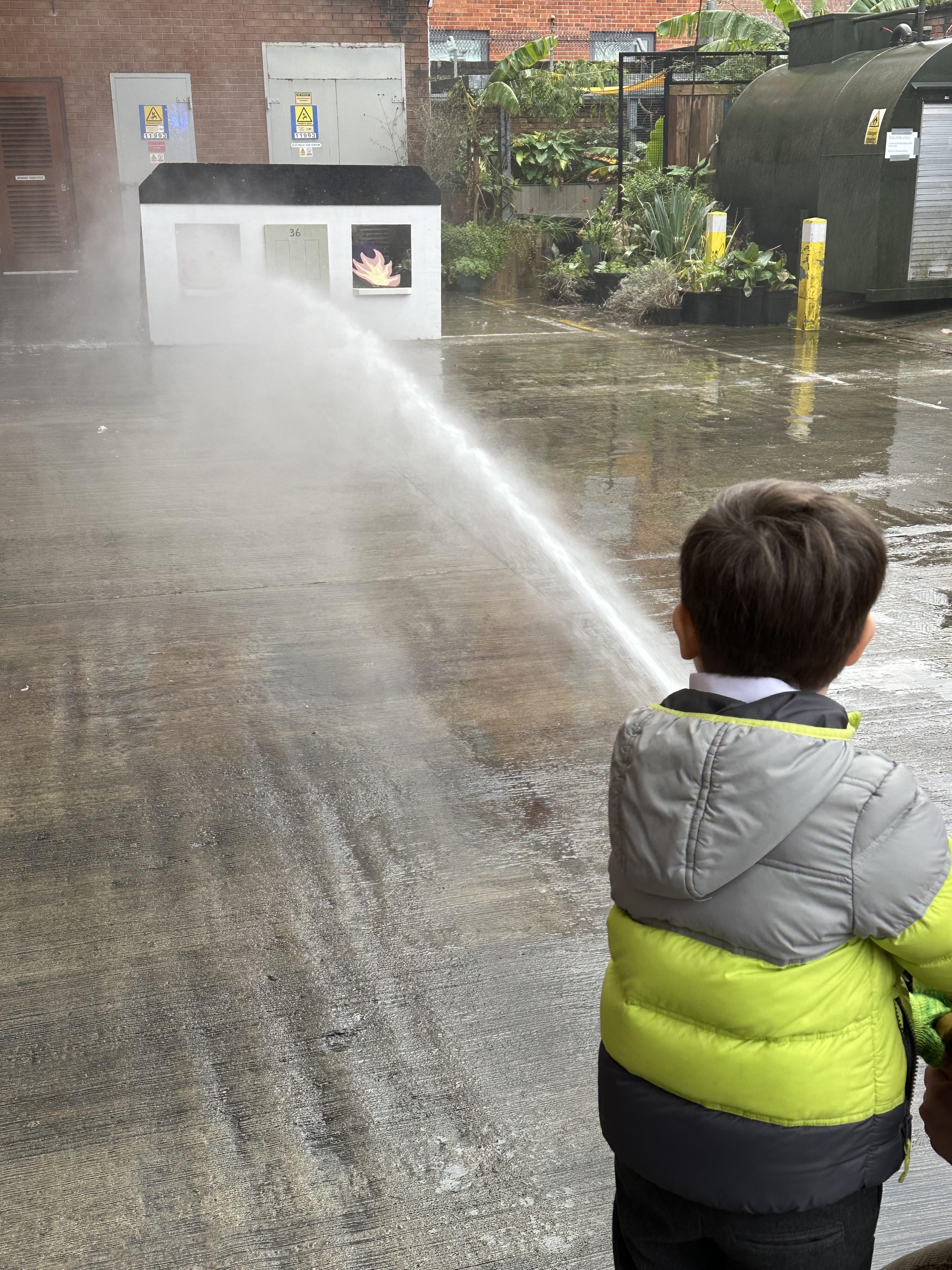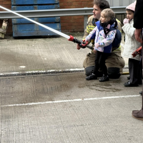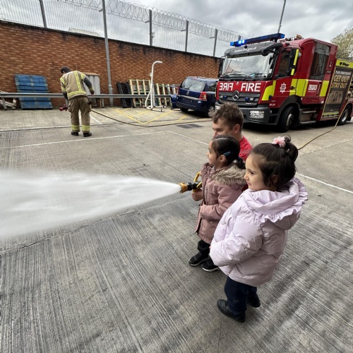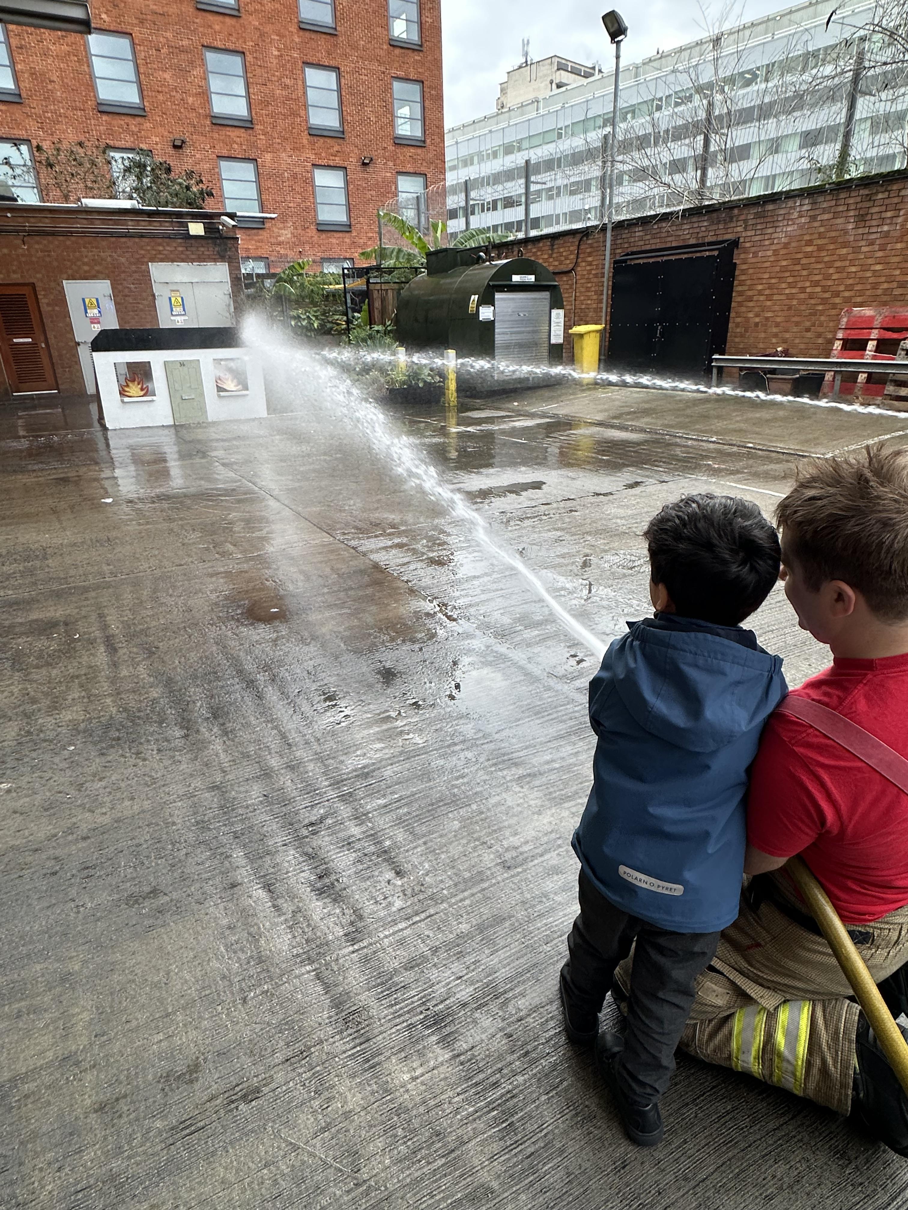 After our time in the park we walked to Hammersmith Fire Station where the firefighters gave us a very warm welcome. The children were delighted to climb onto the fire engine and explore the equipment. They even had the chance to hold the hose and put out a fake fire which was a highlight for many.