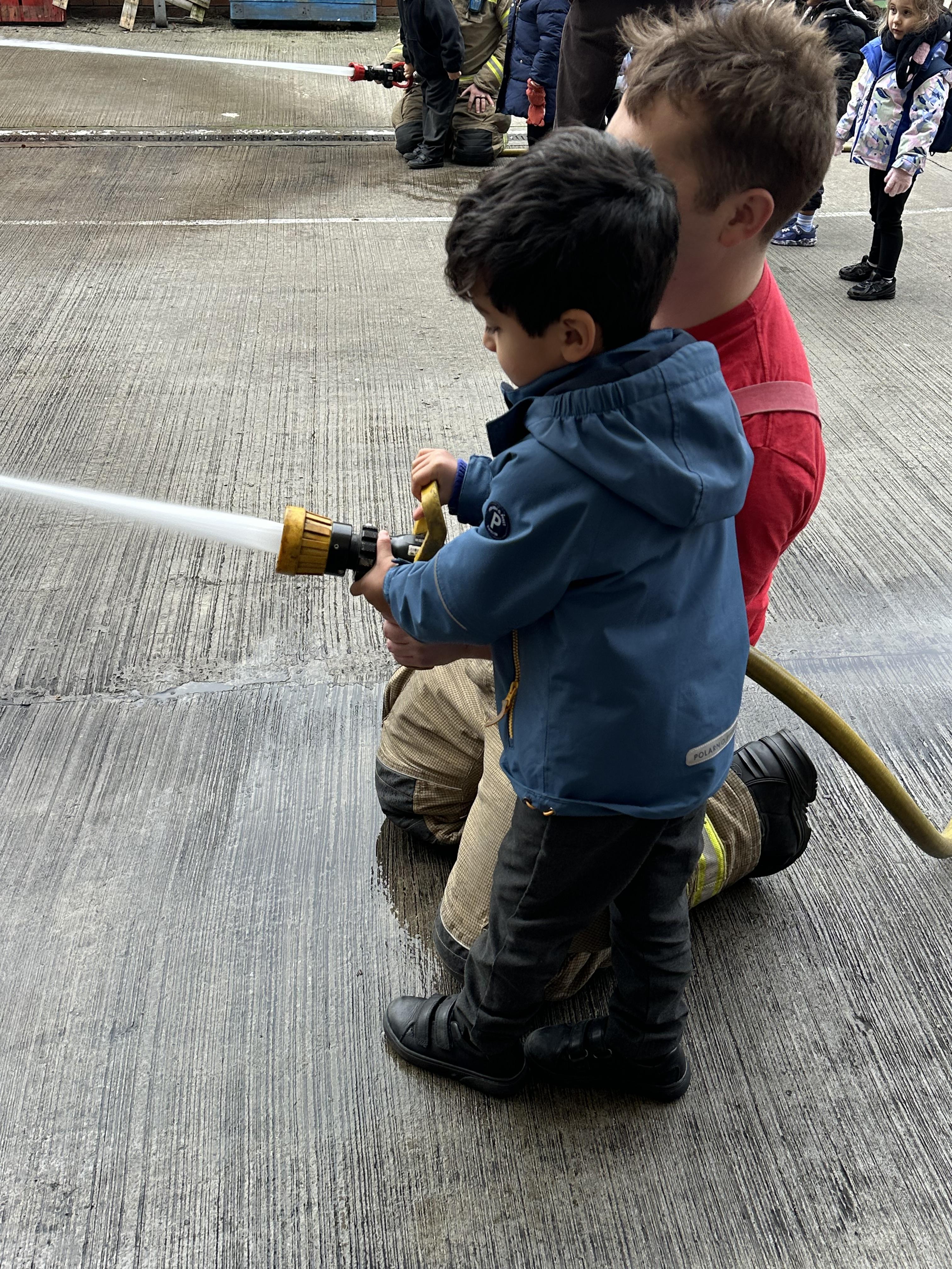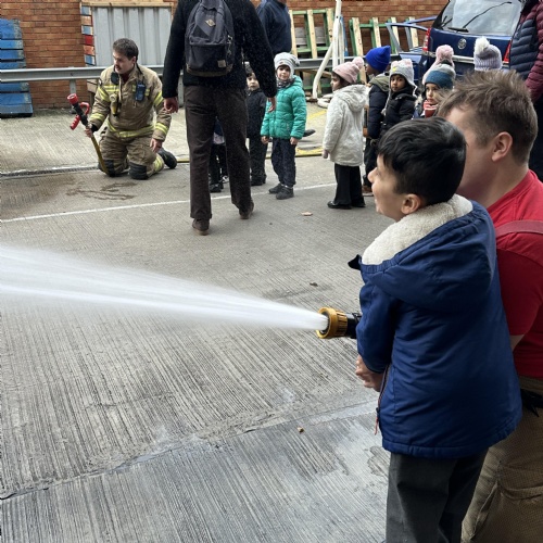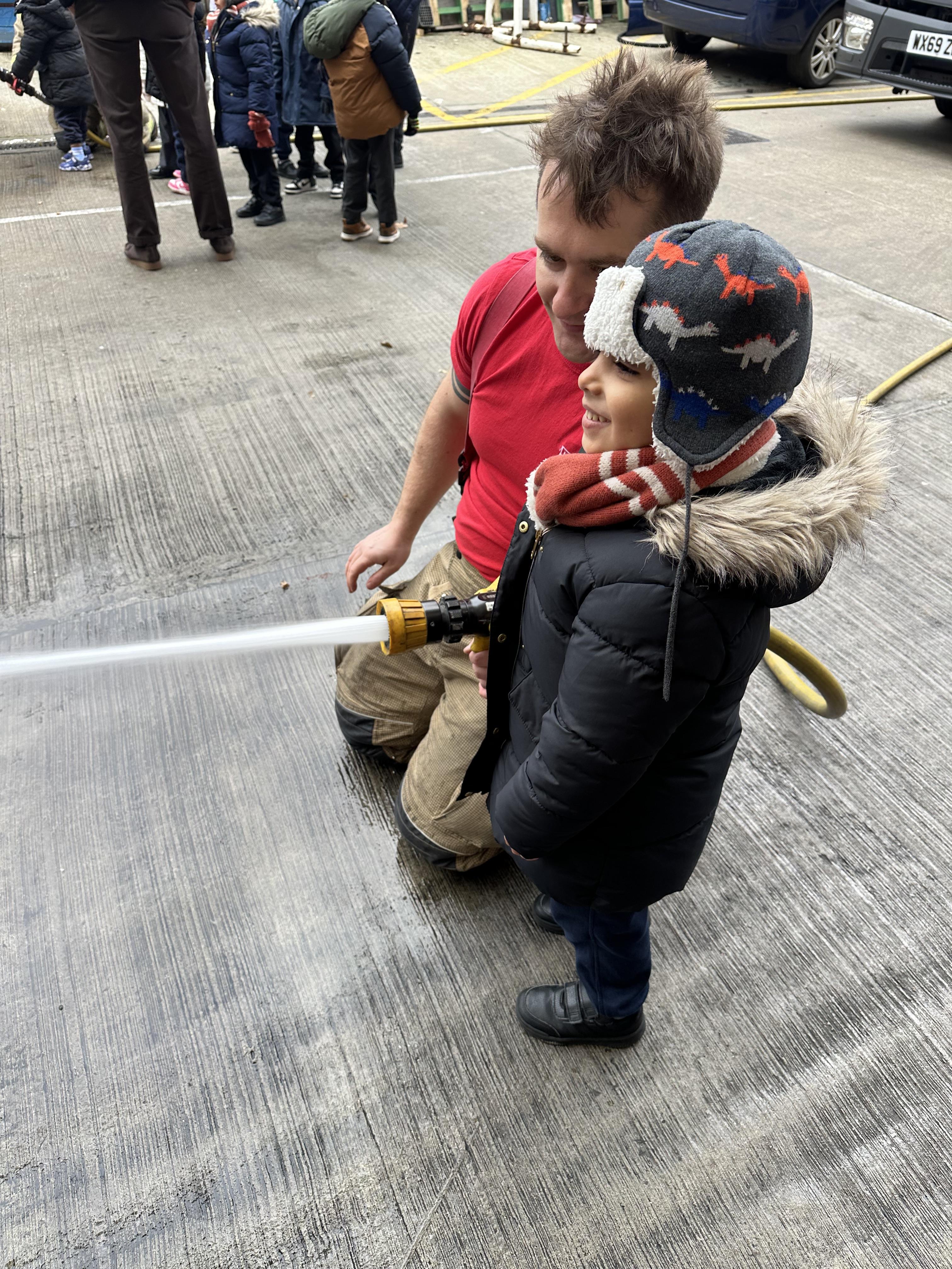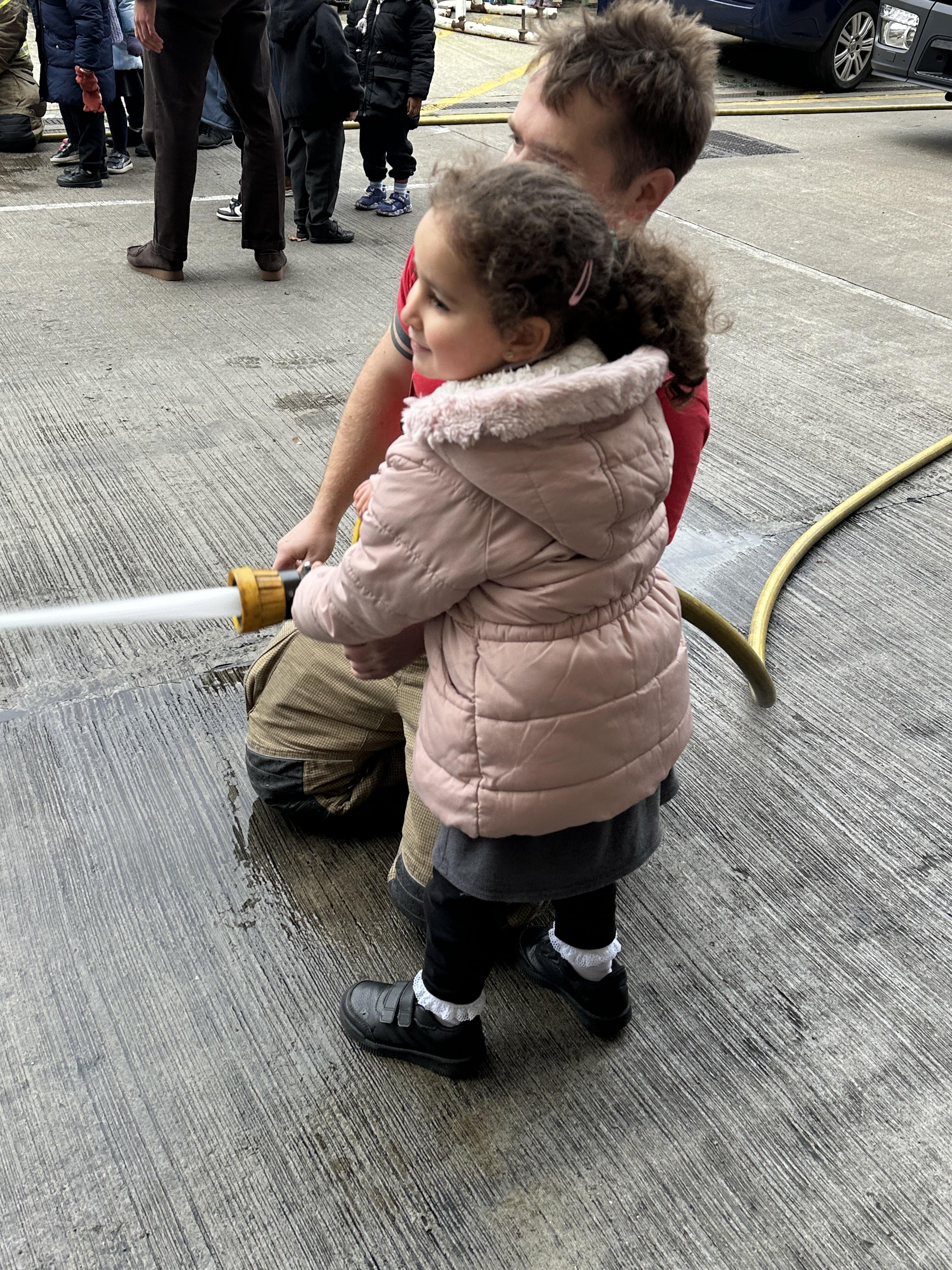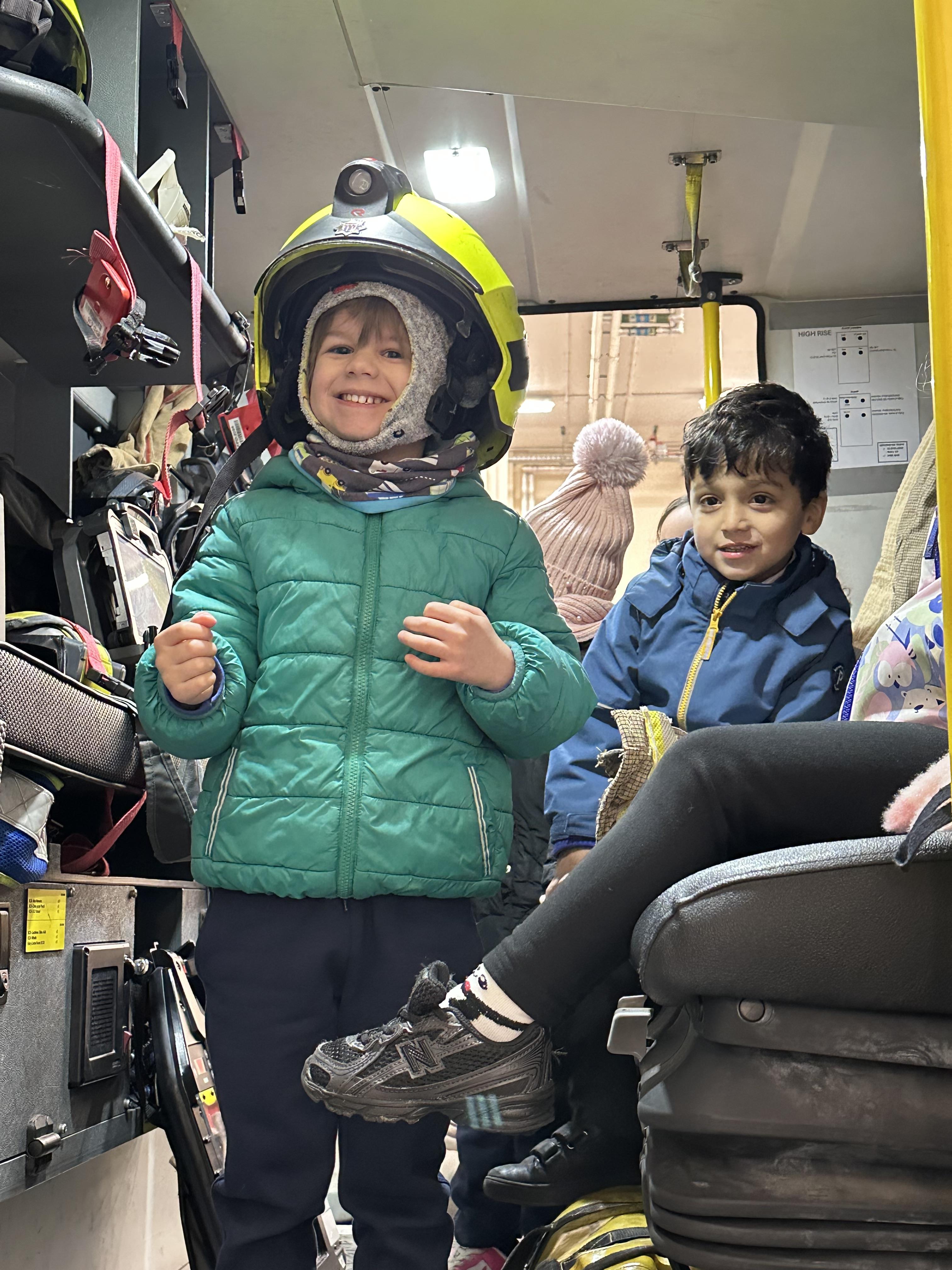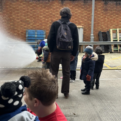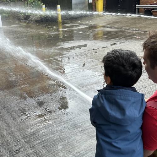 After our time in the park we walked to Hammersmith Fire Station where the firefighters gave us a very warm welcome. The children were delighted to climb onto the fire engine and explore the equipment. They even had the chance to hold the hose and put out a fake fire which was a highlight for many.
