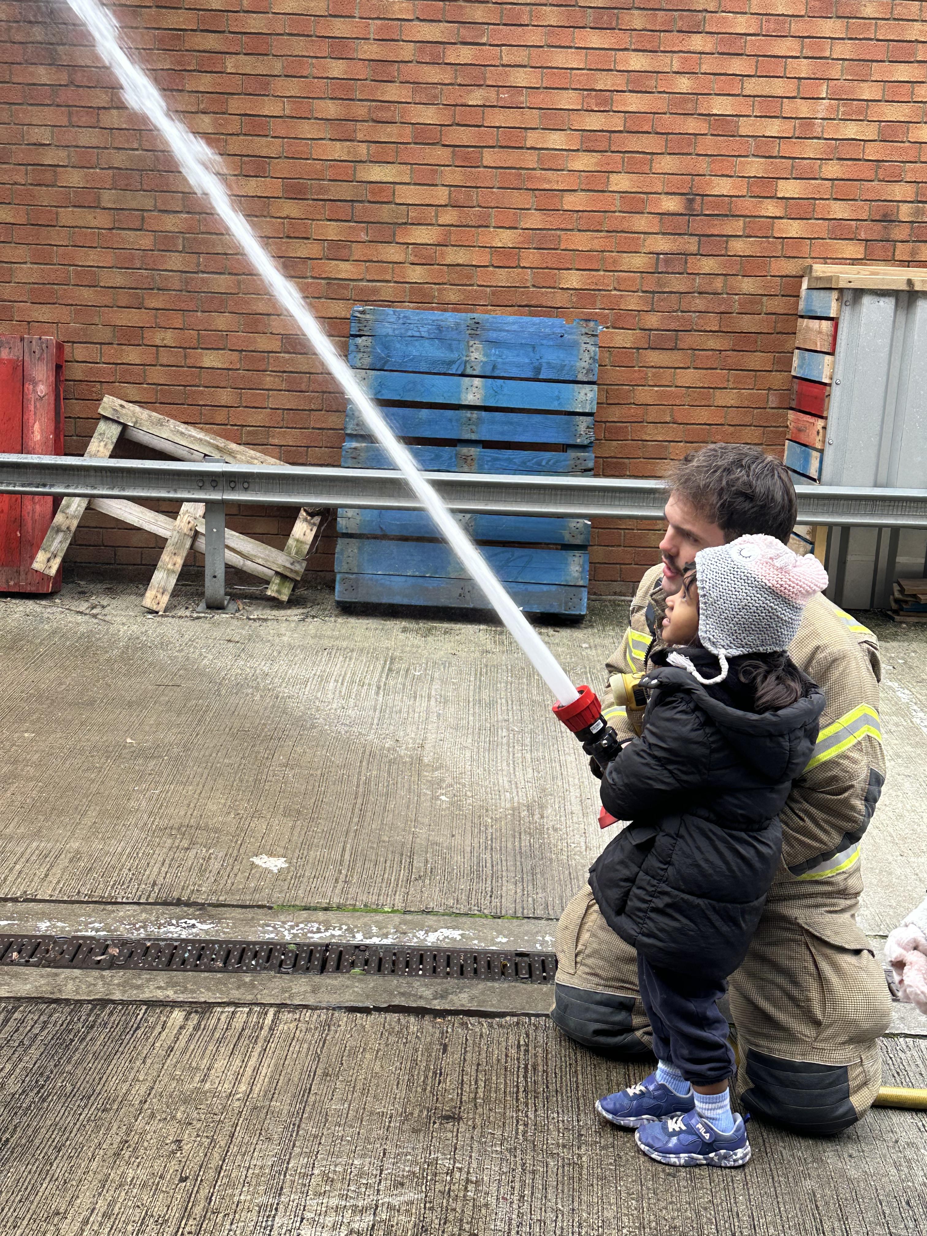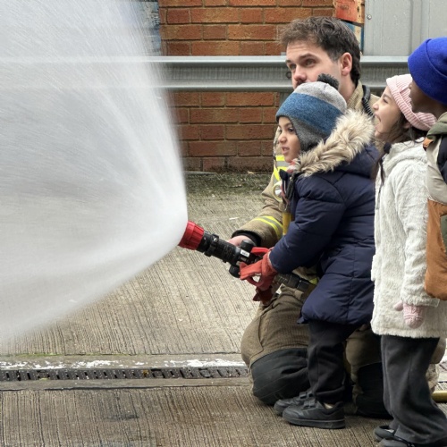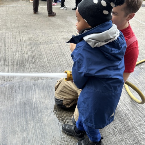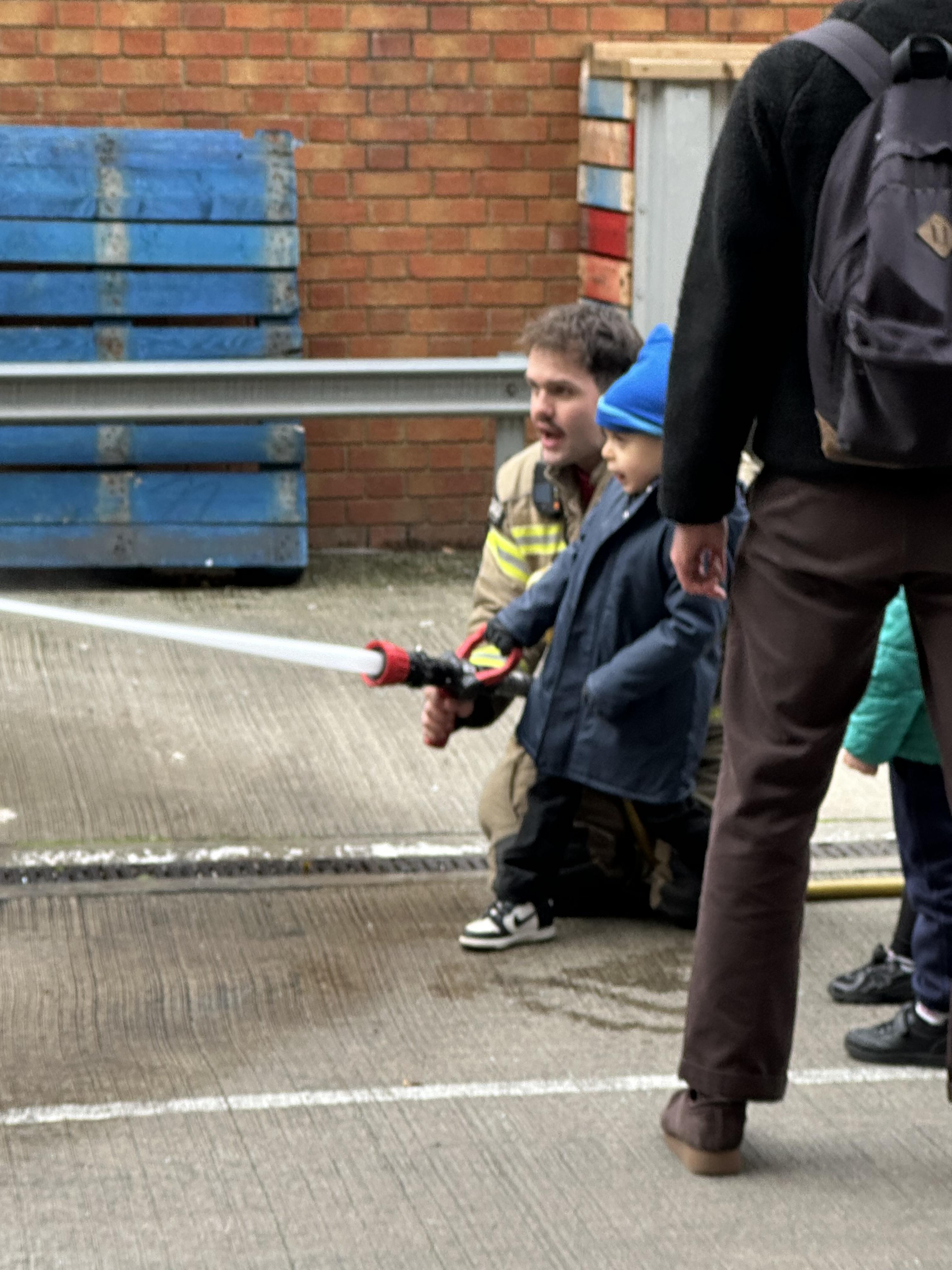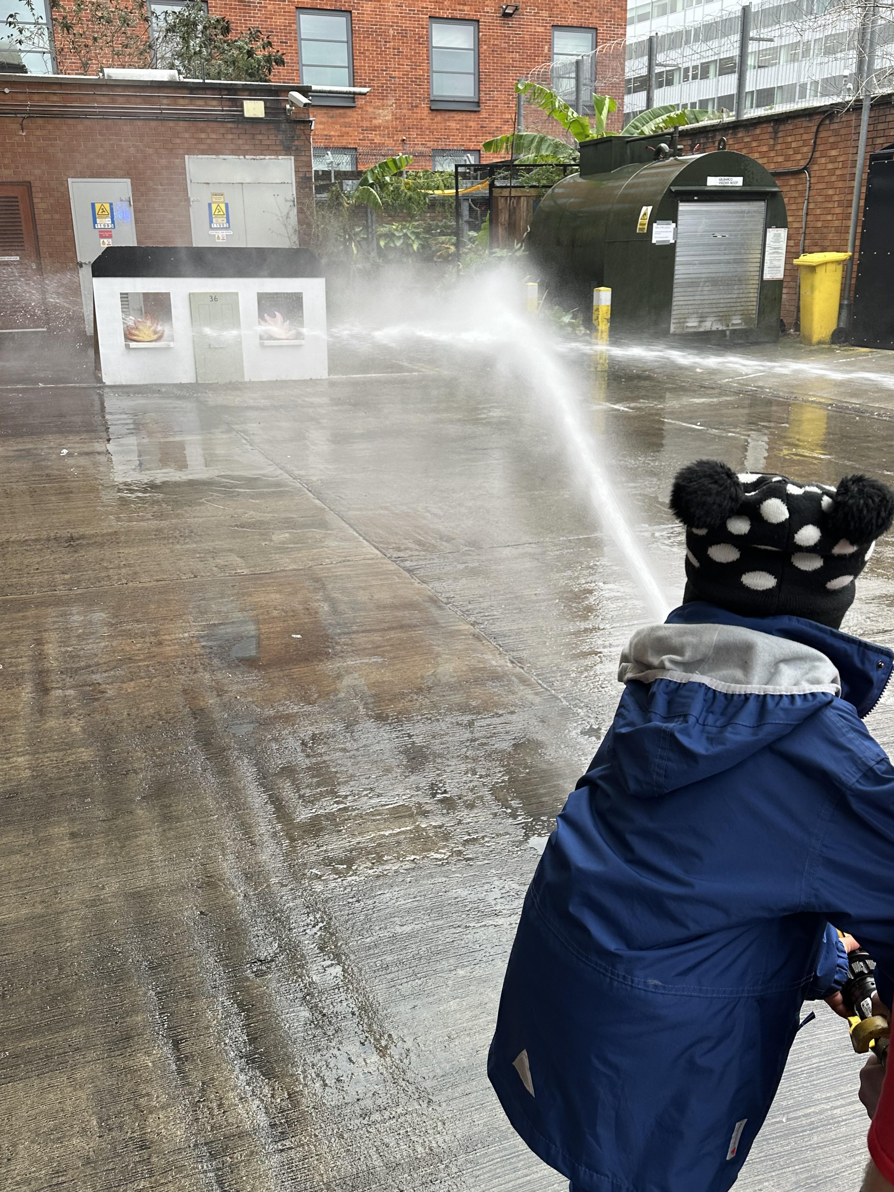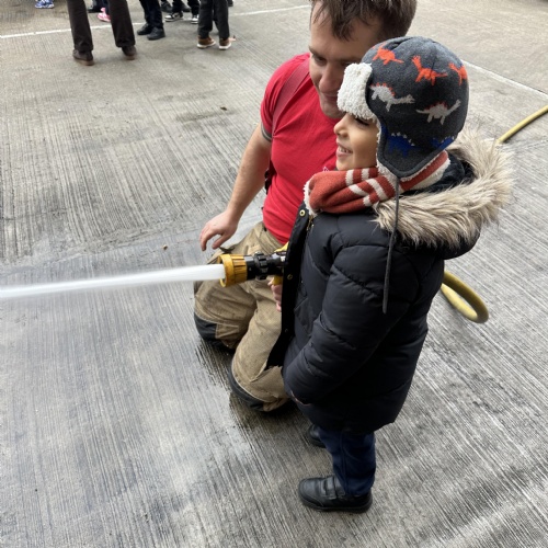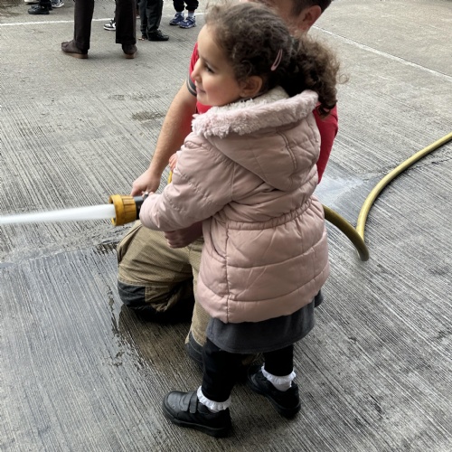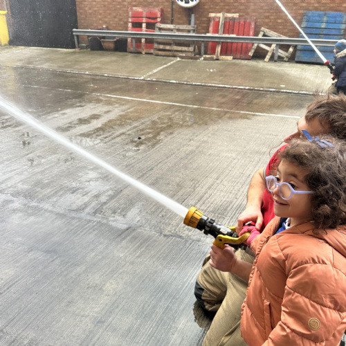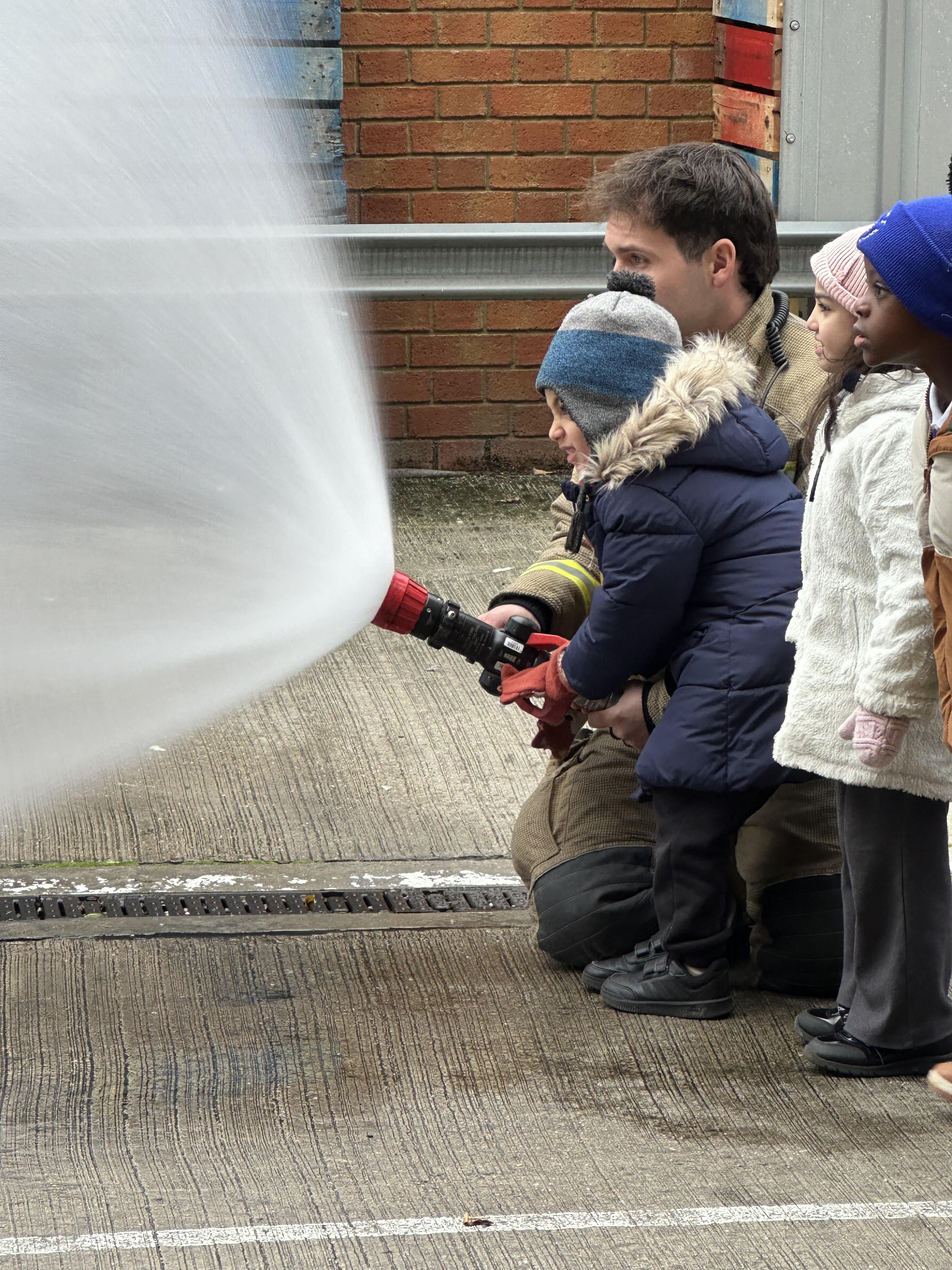 After our time in the park we walked to Hammersmith Fire Station where the firefighters gave us a very warm welcome. The children were delighted to climb onto the fire engine and explore the equipment. They even had the chance to hold the hose and put out a fake fire which was a highlight for many.