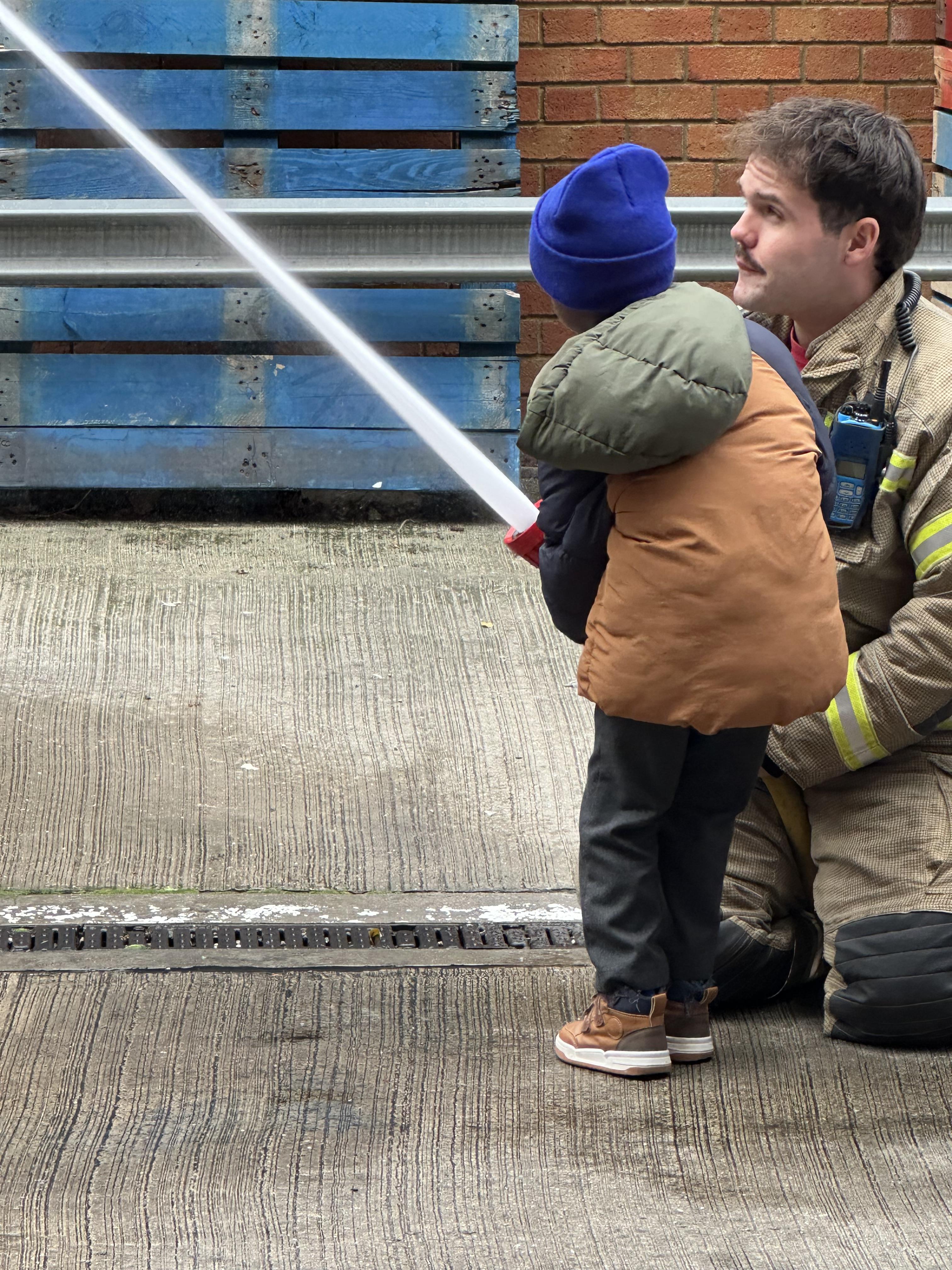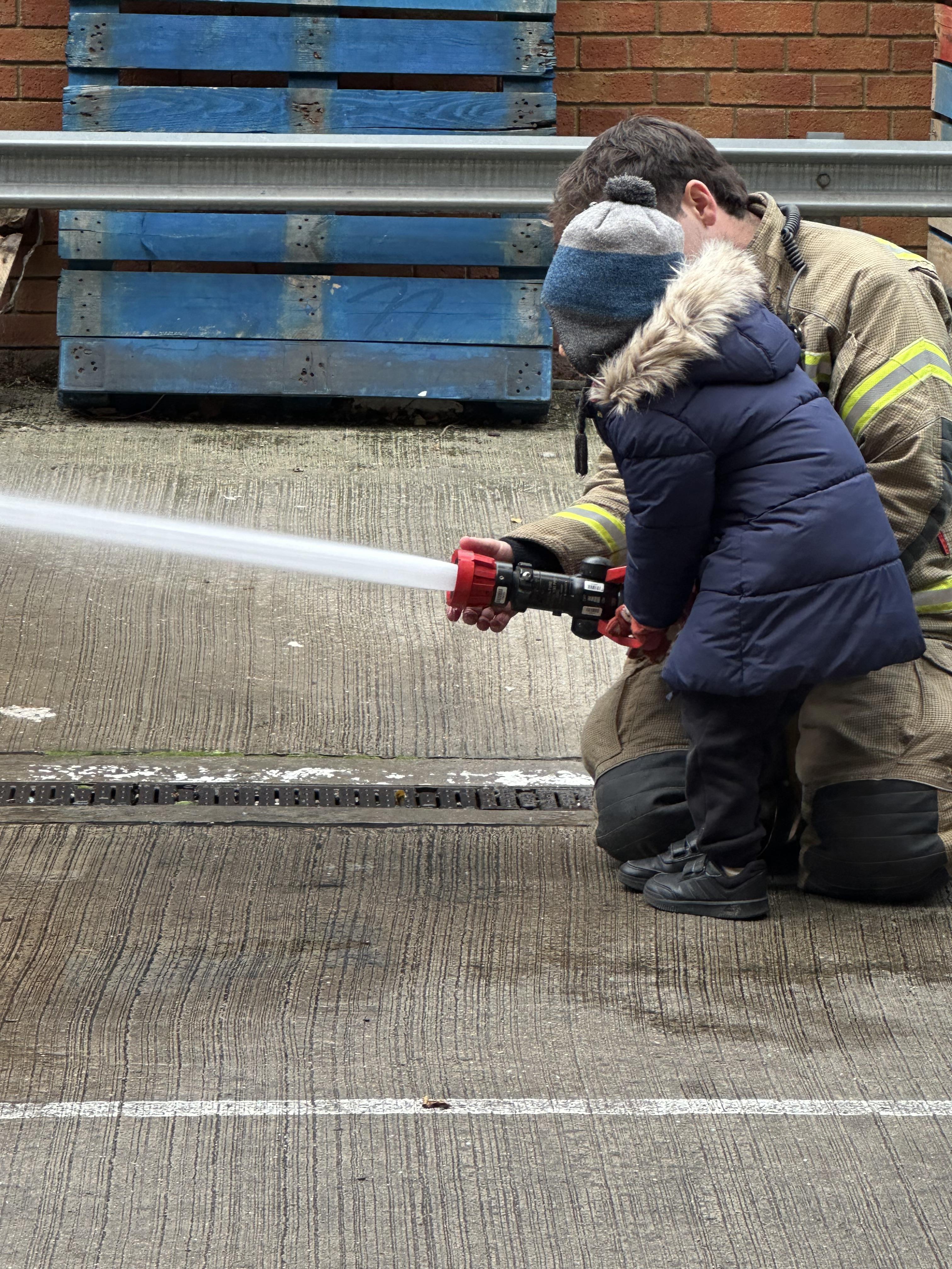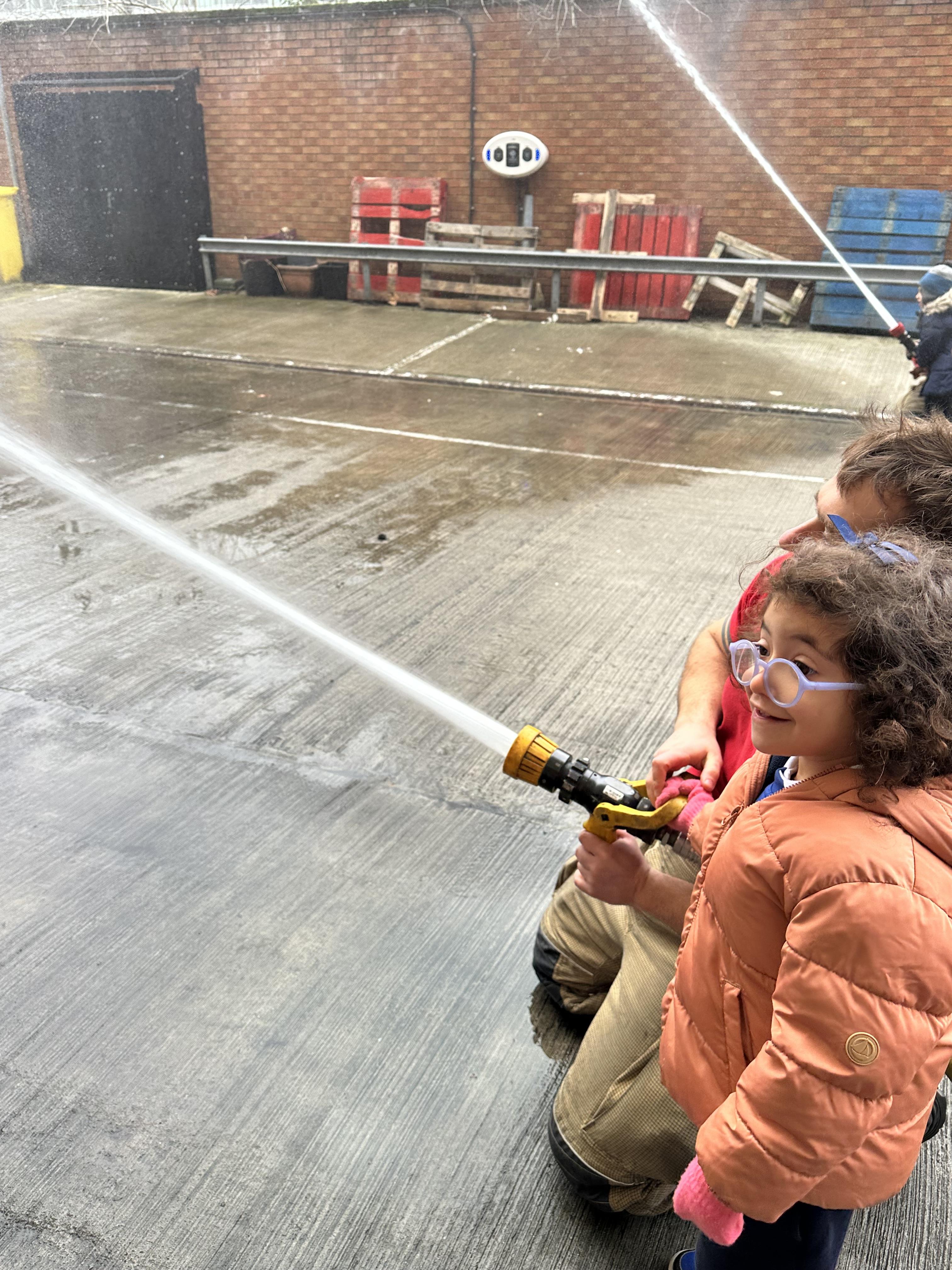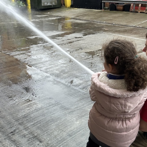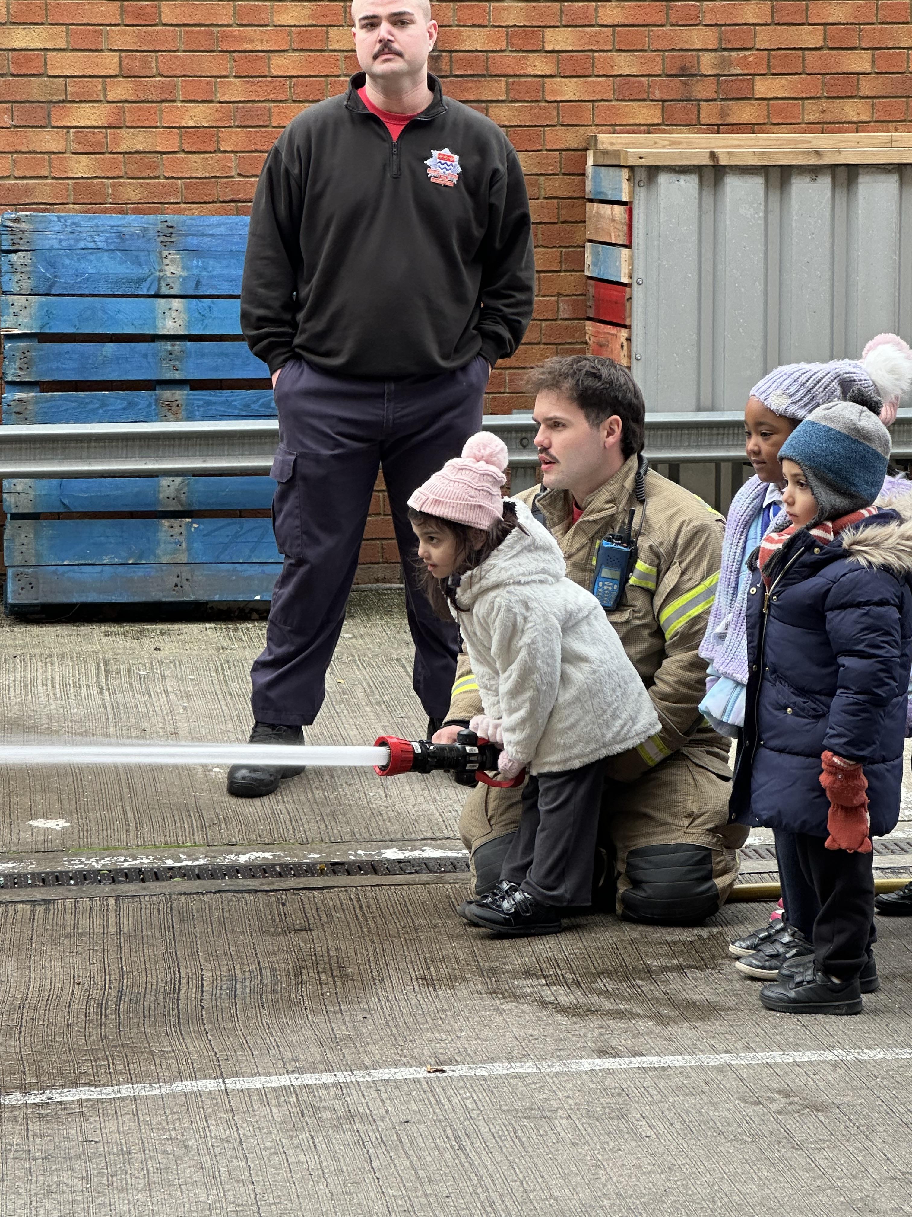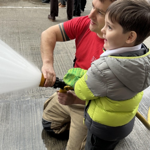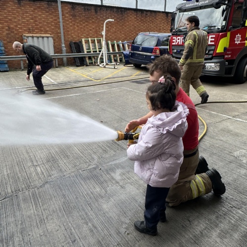 After our time in the park we walked to Hammersmith Fire Station where the firefighters gave us a very warm welcome. The children were delighted to climb onto the fire engine and explore the equipment. They even had the chance to hold the hose and put out a fake fire which was a highlight for many.