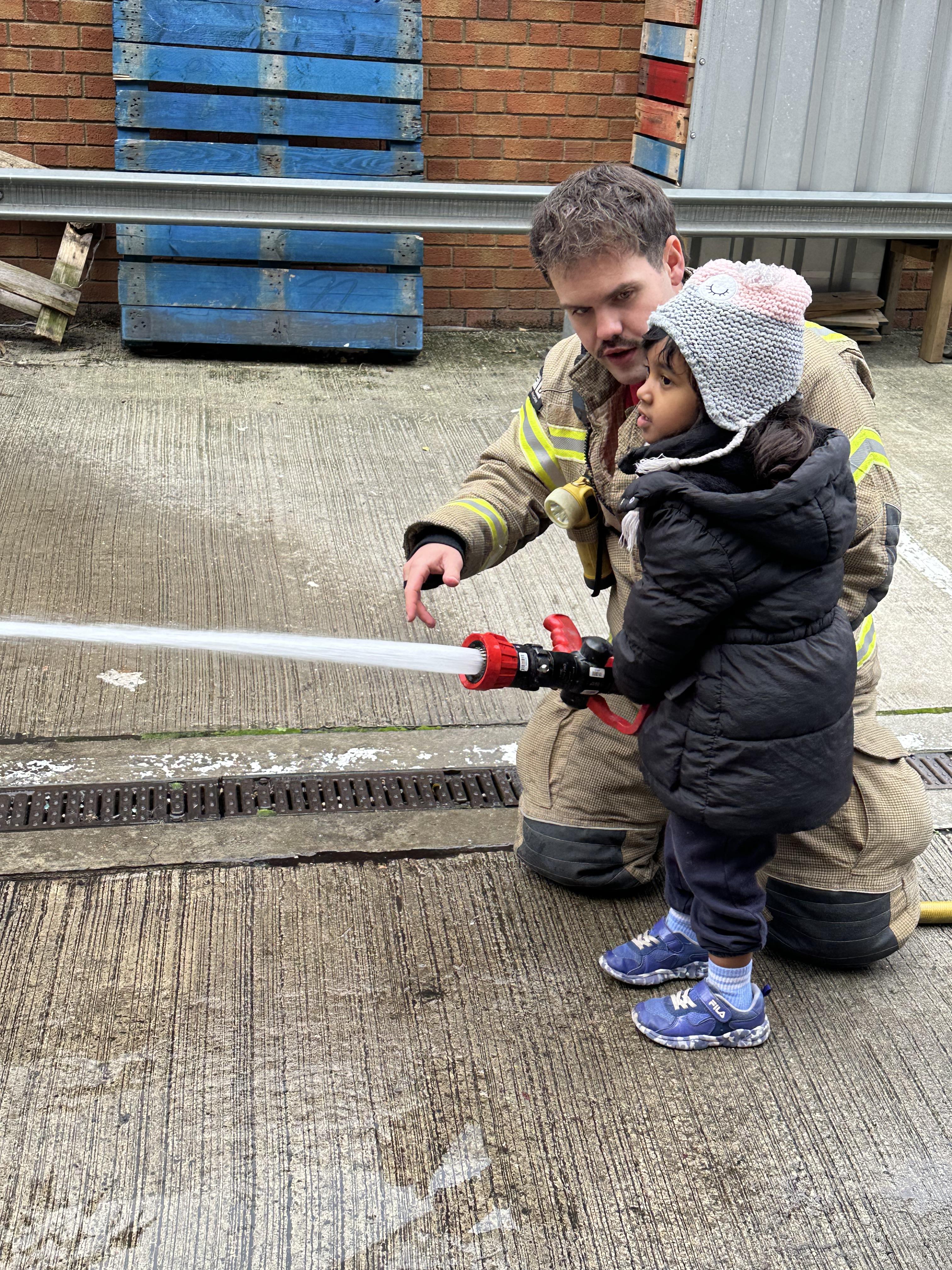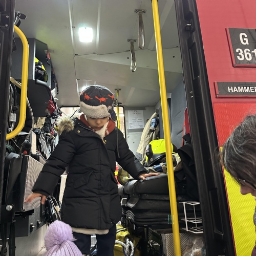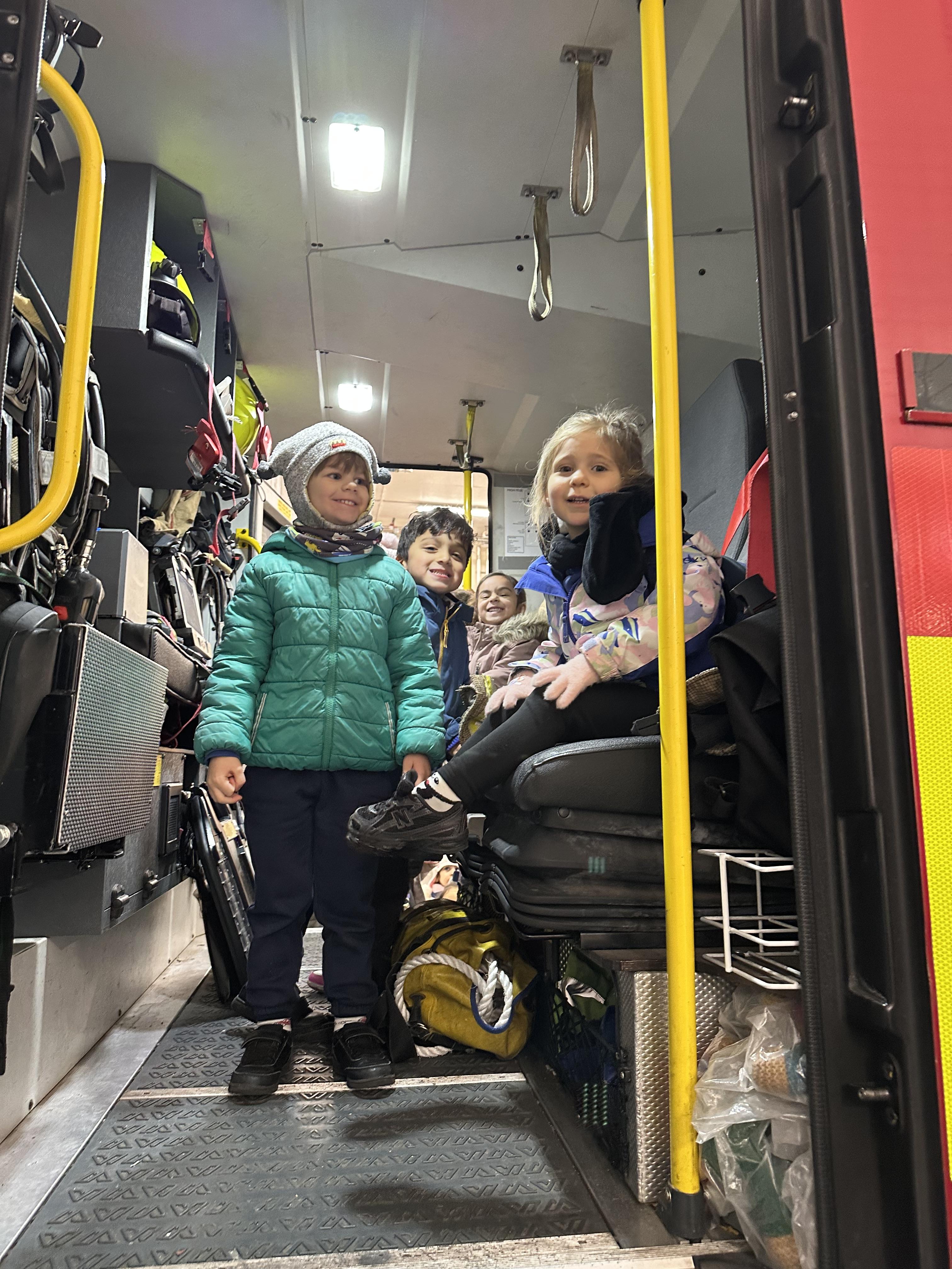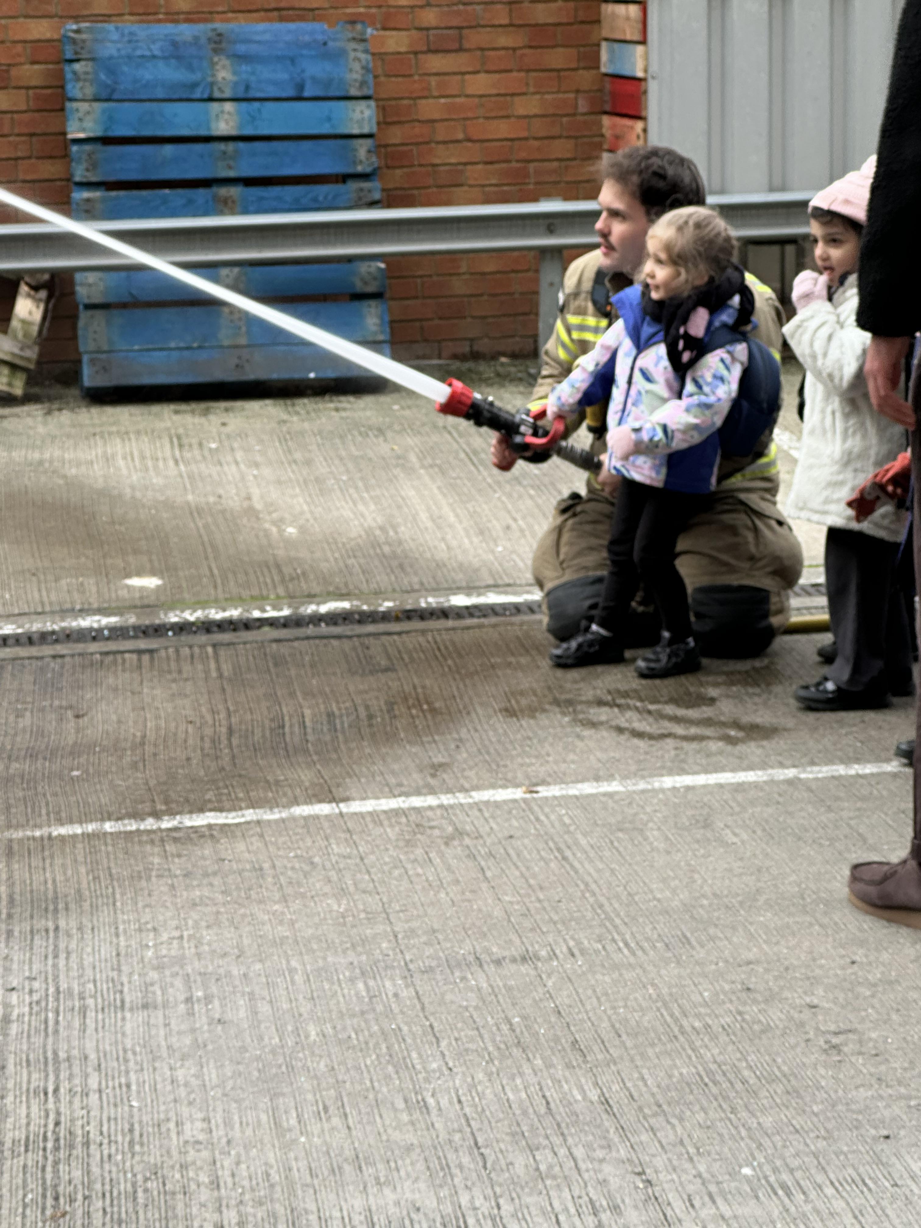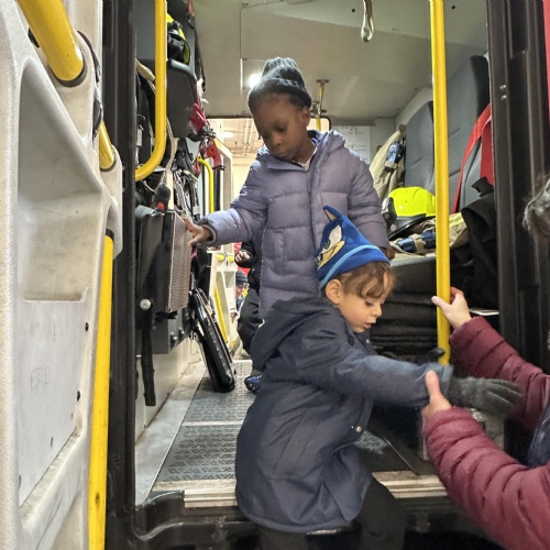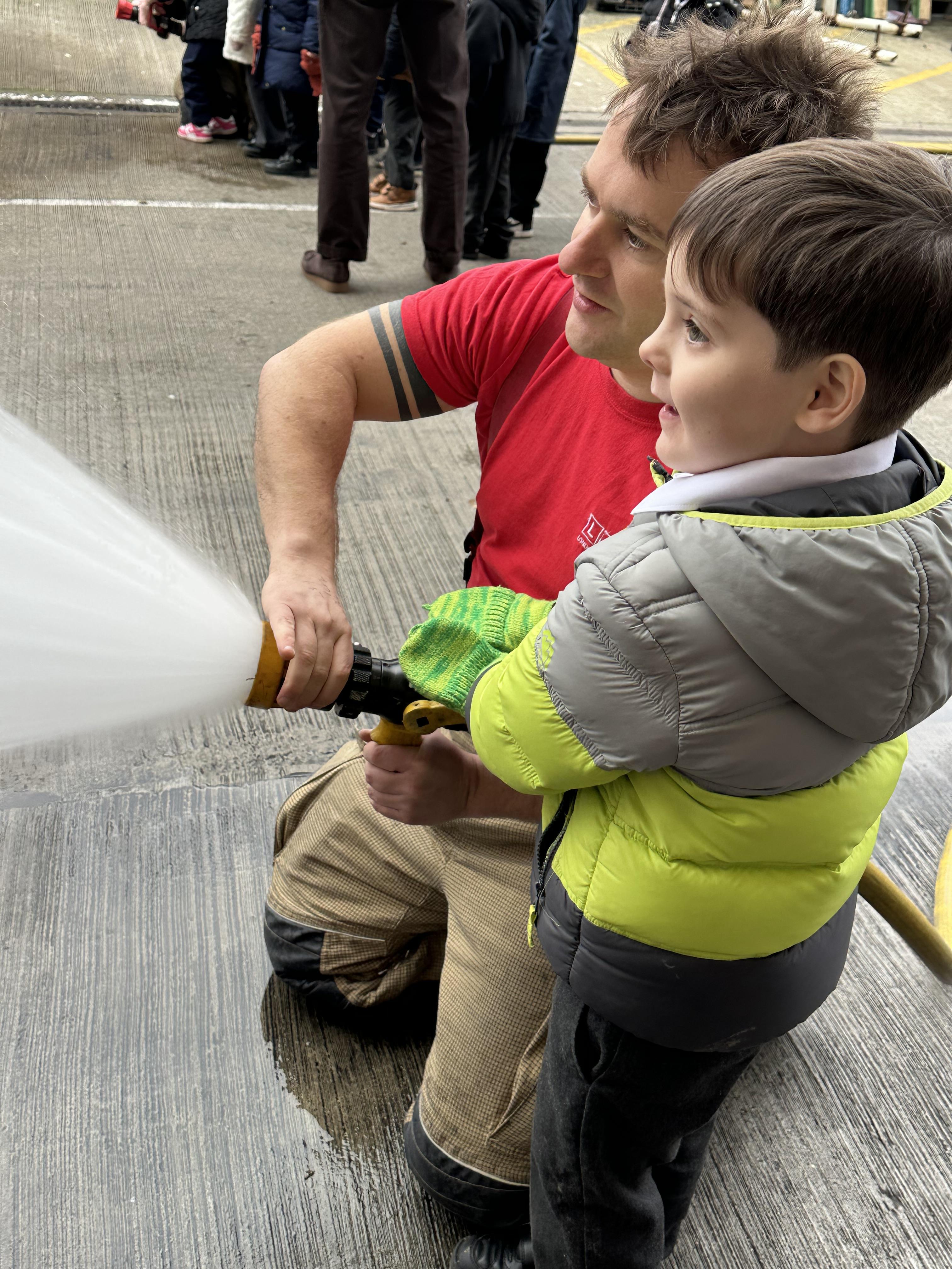 After our time in the park we walked to Hammersmith Fire Station where the firefighters gave us a very warm welcome. The children were delighted to climb onto the fire engine and explore the equipment. They even had the chance to hold the hose and put out a fake fire which was a highlight for many.