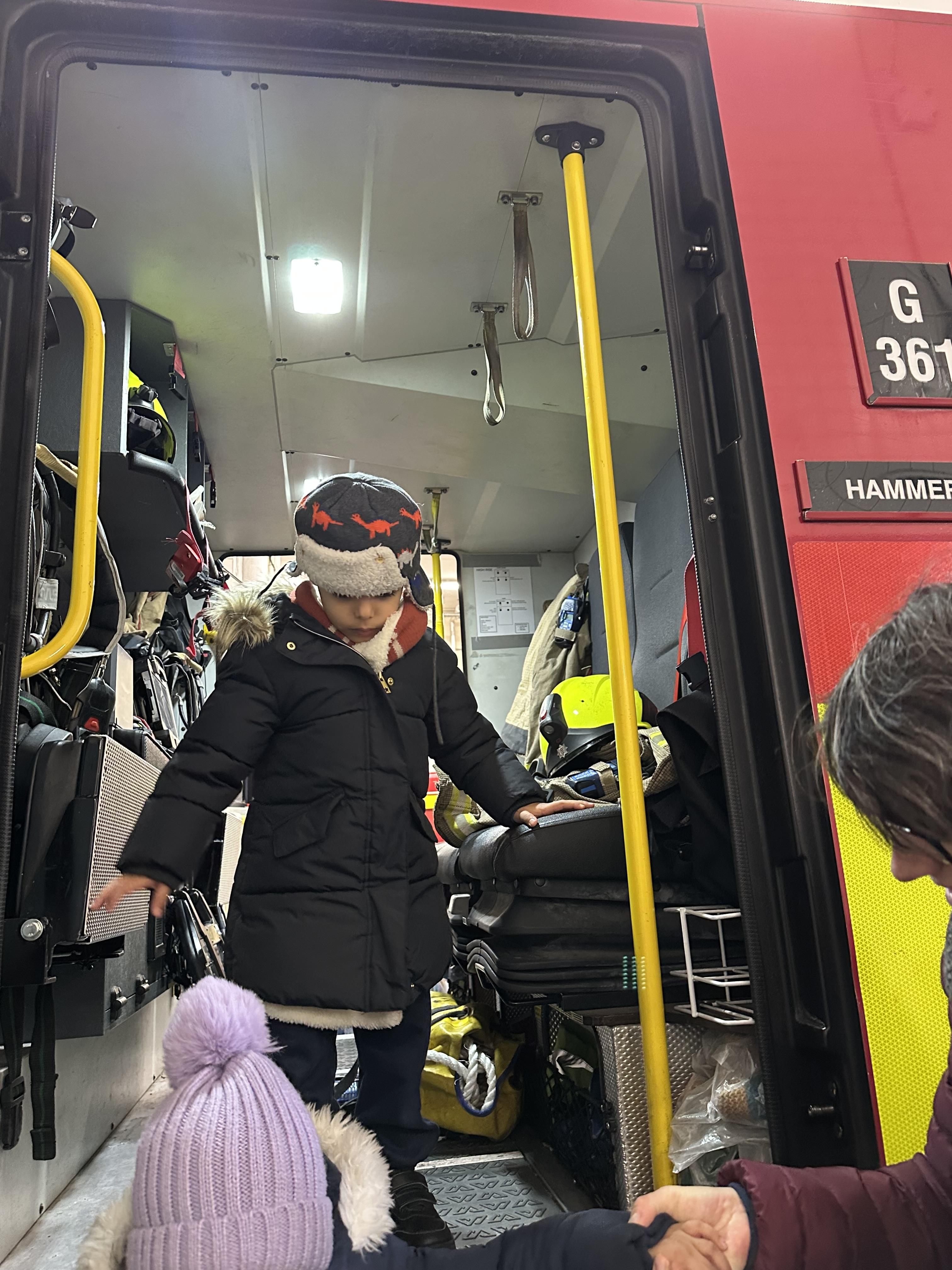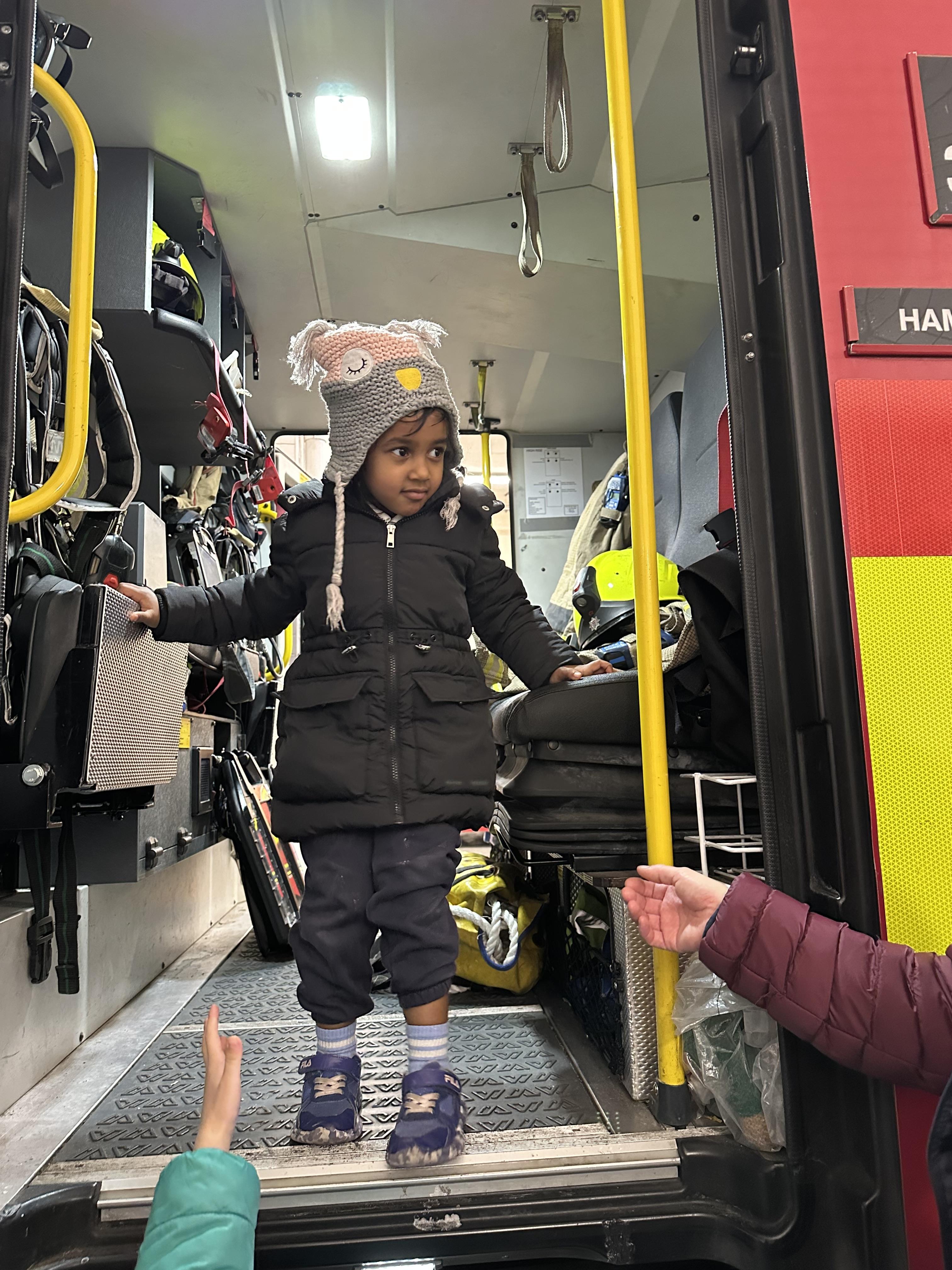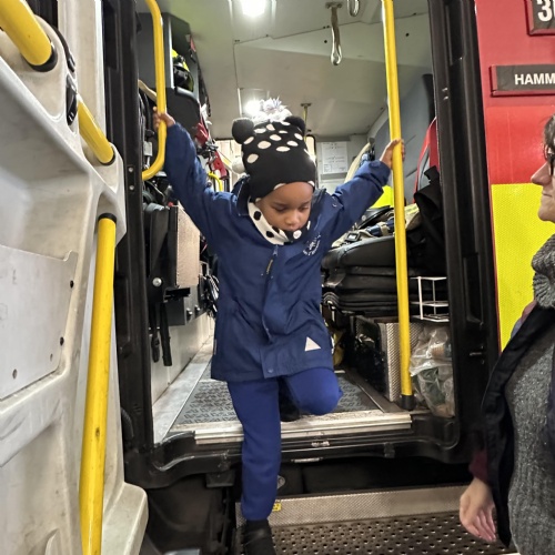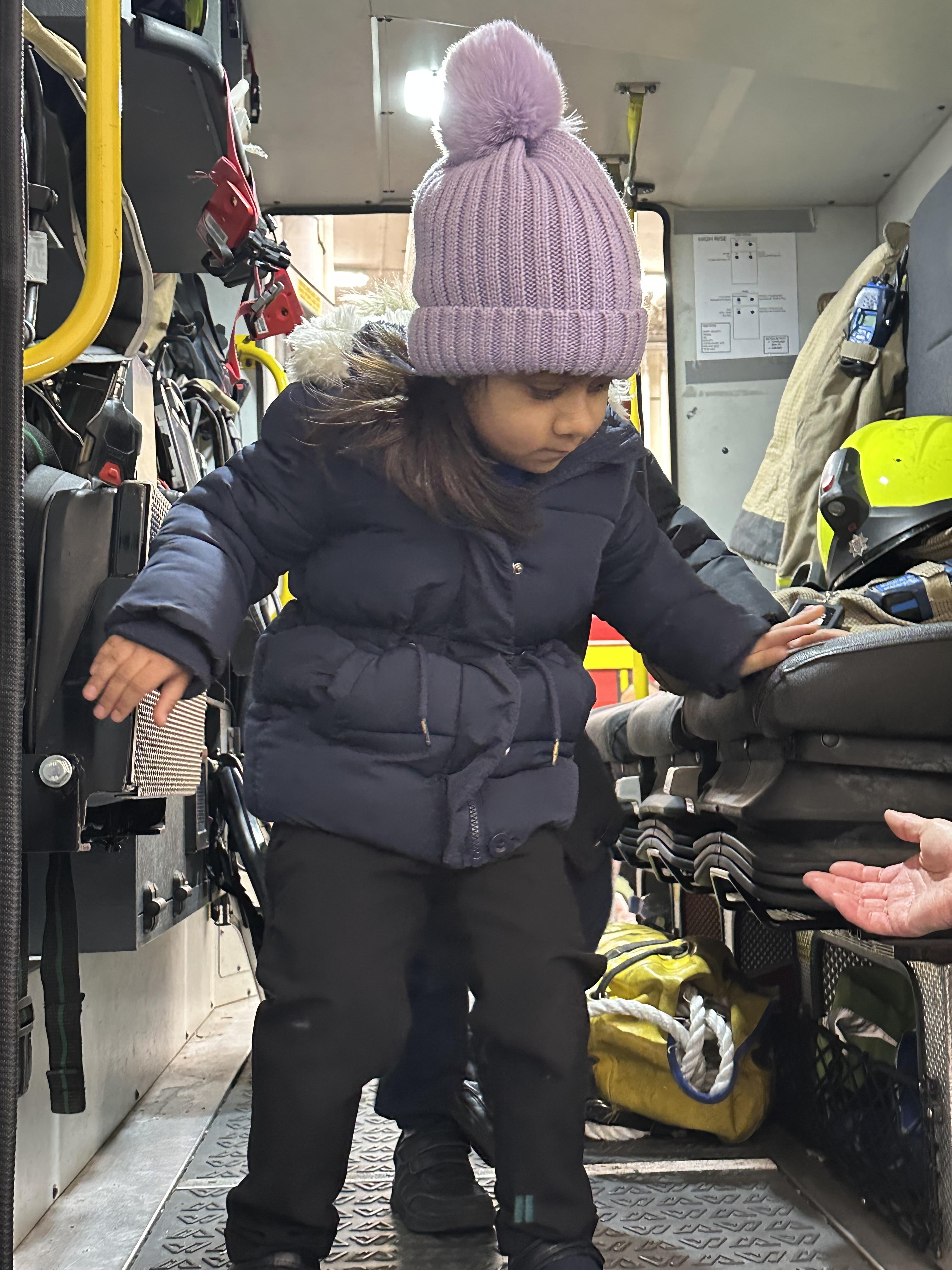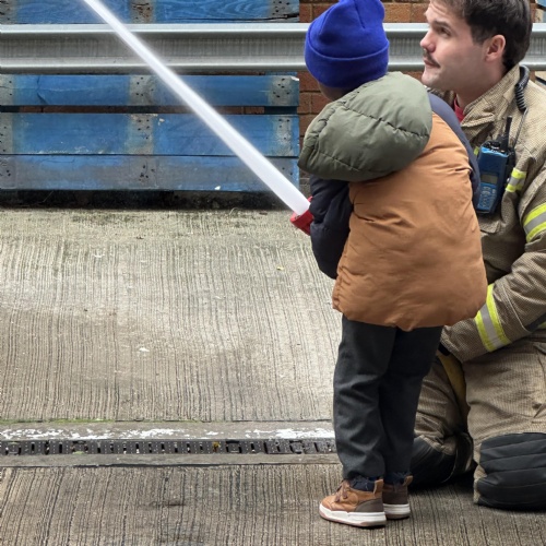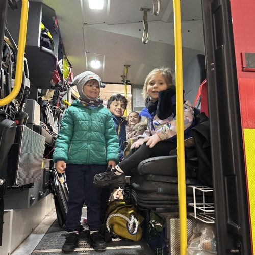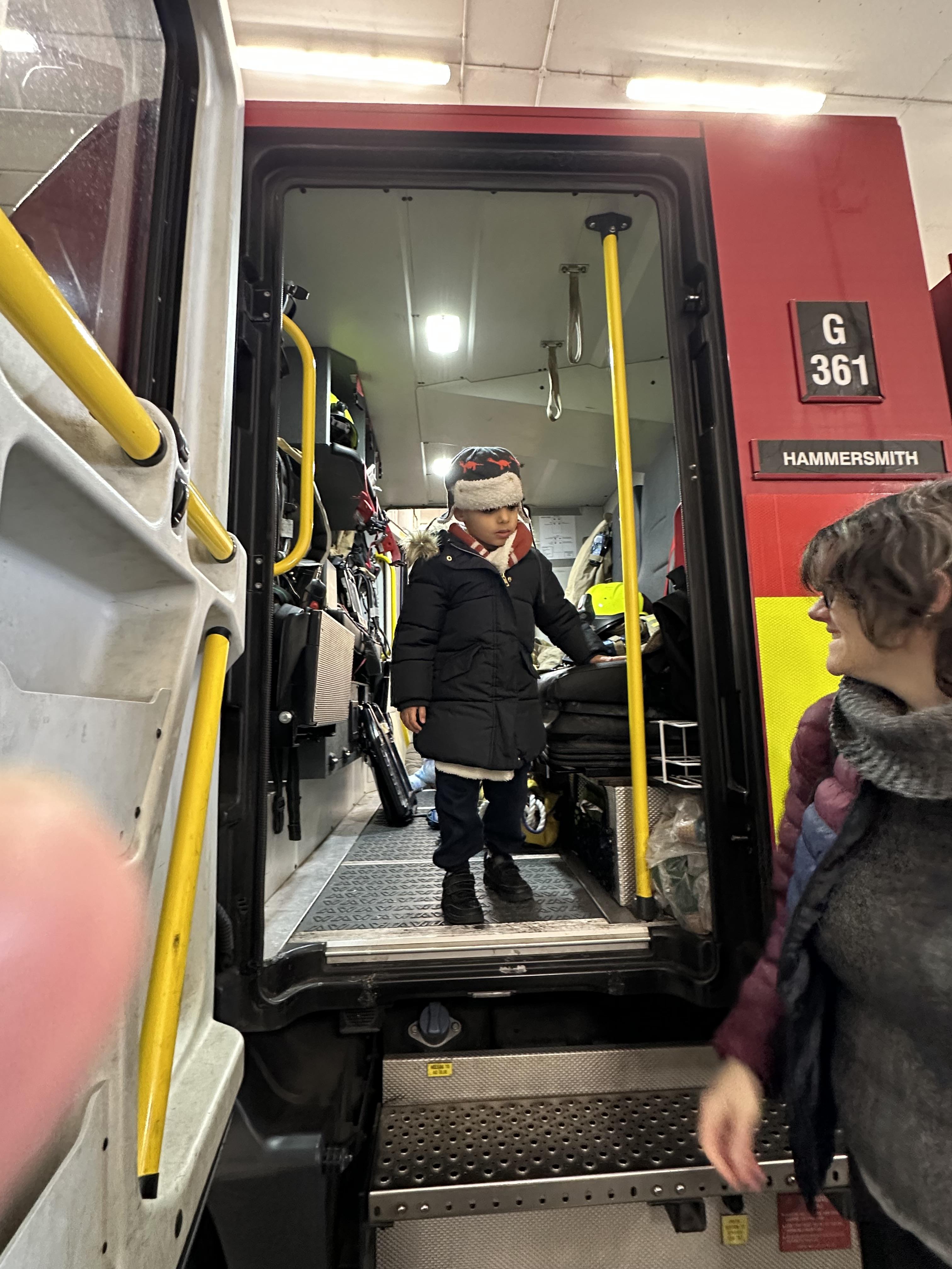 After our time in the park we walked to Hammersmith Fire Station where the firefighters gave us a very warm welcome. The children were delighted to climb onto the fire engine and explore the equipment. They even had the chance to hold the hose and put out a fake fire which was a highlight for many.