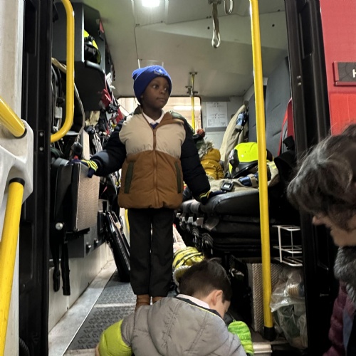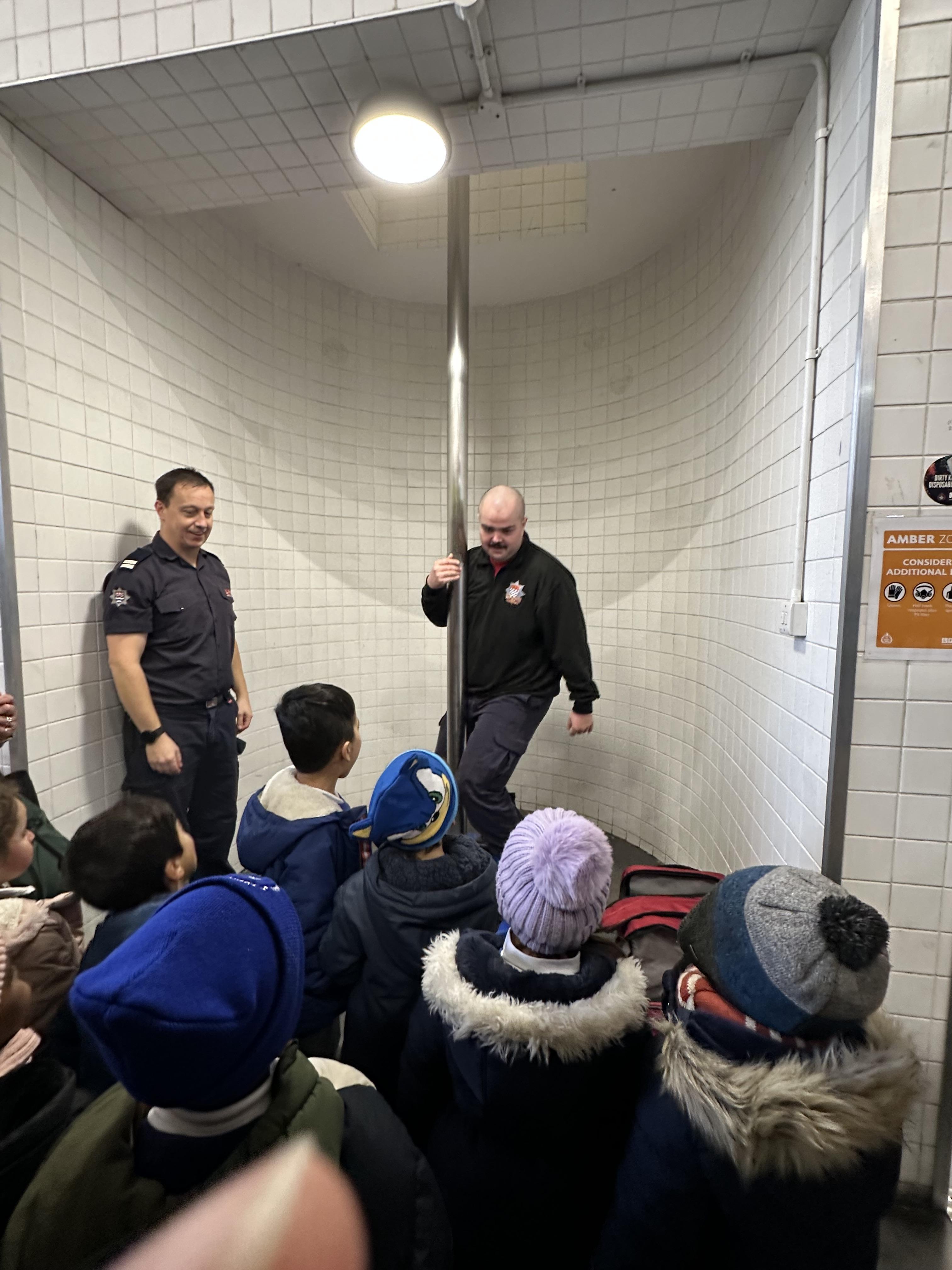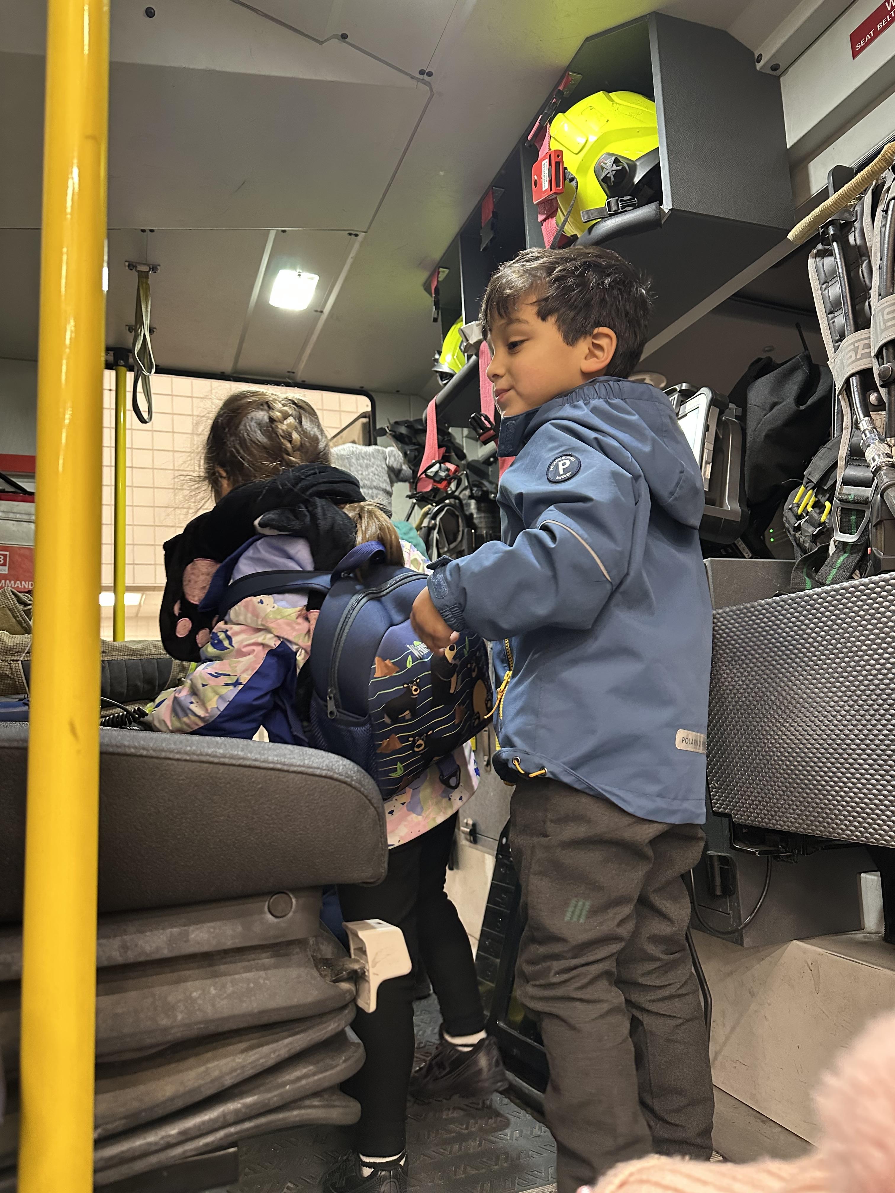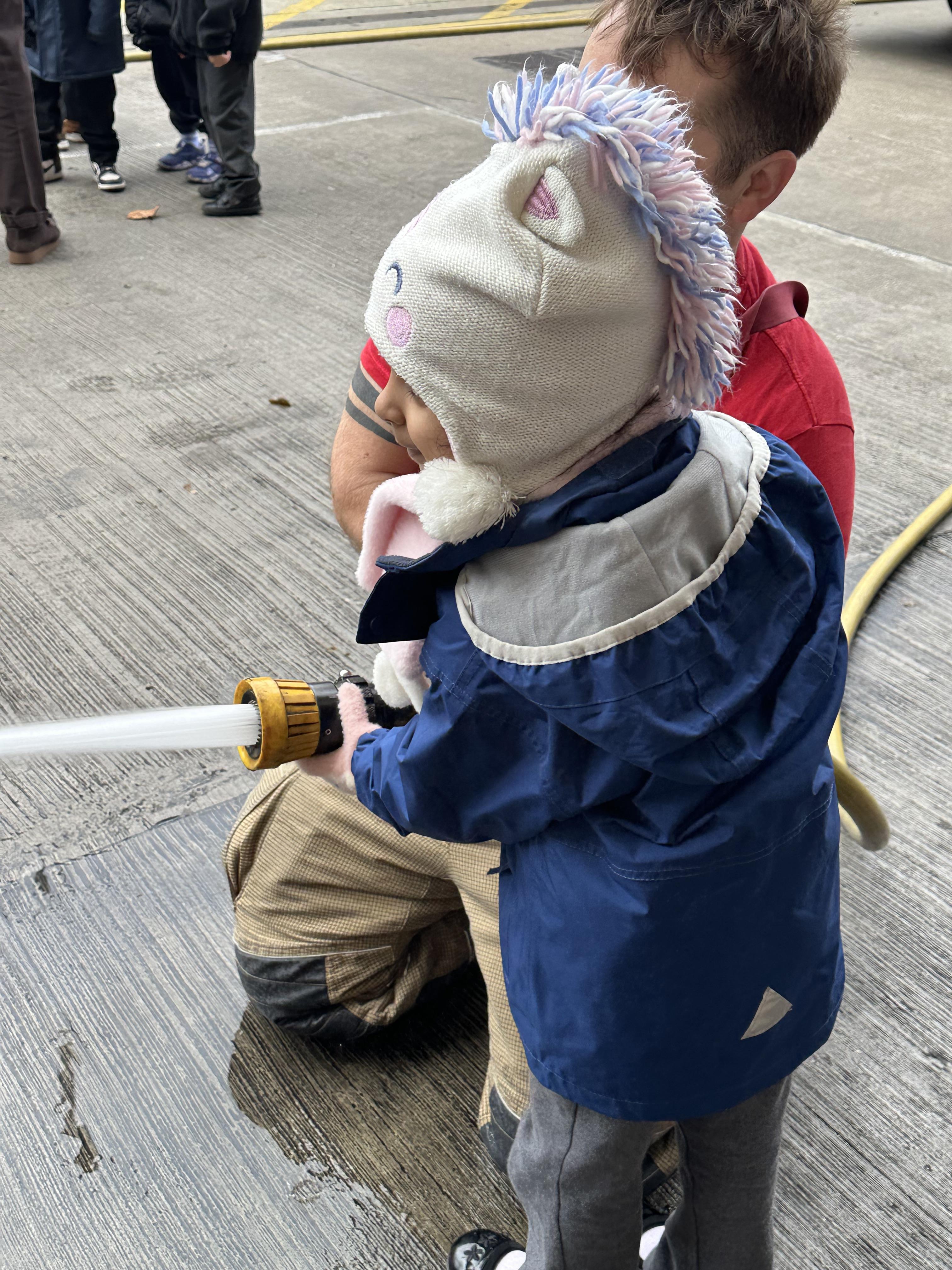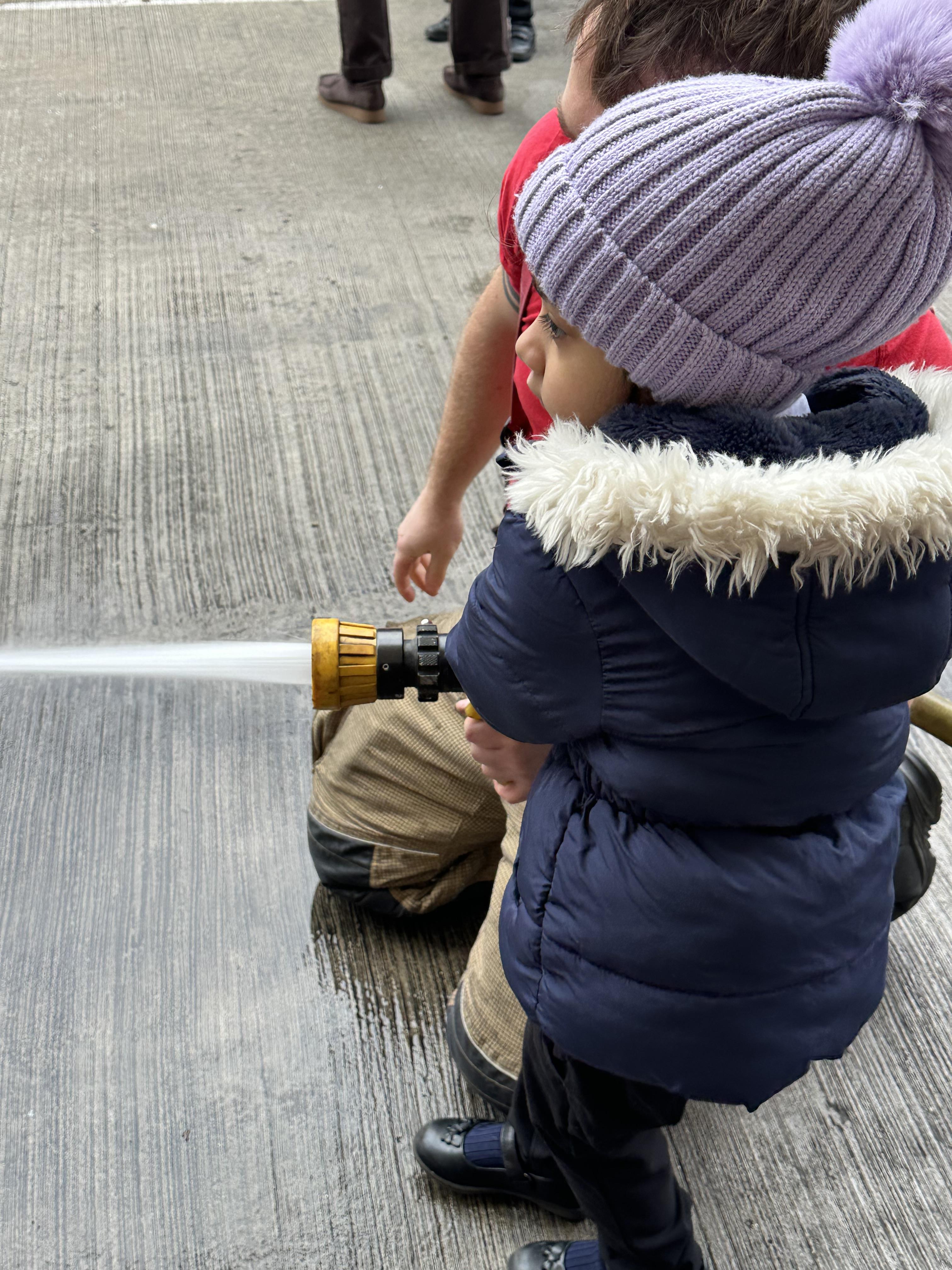 After our time in the park we walked to Hammersmith Fire Station where the firefighters gave us a very warm welcome. The children were delighted to climb onto the fire engine and explore the equipment. They even had the chance to hold the hose and put out a fake fire which was a highlight for many.