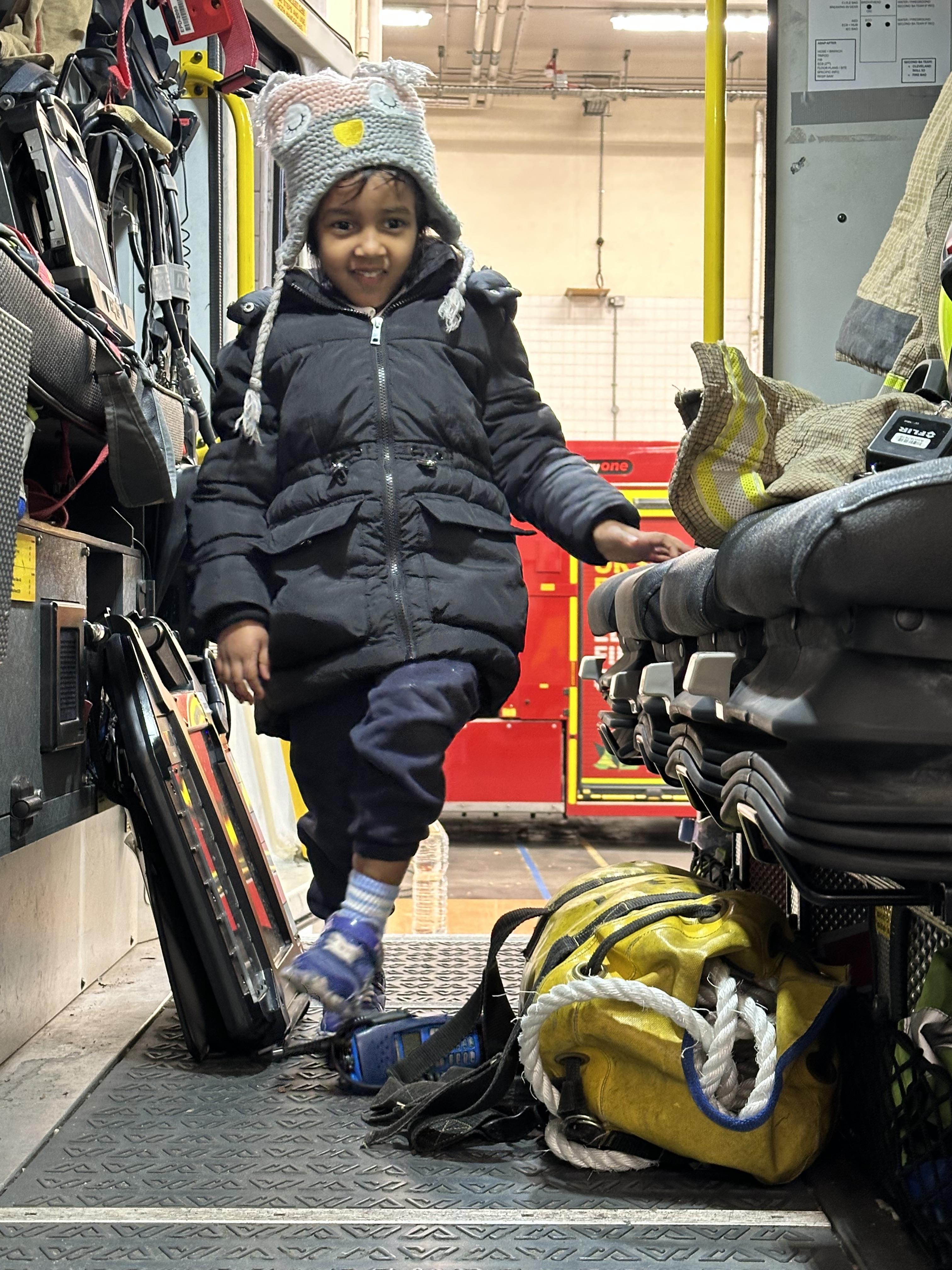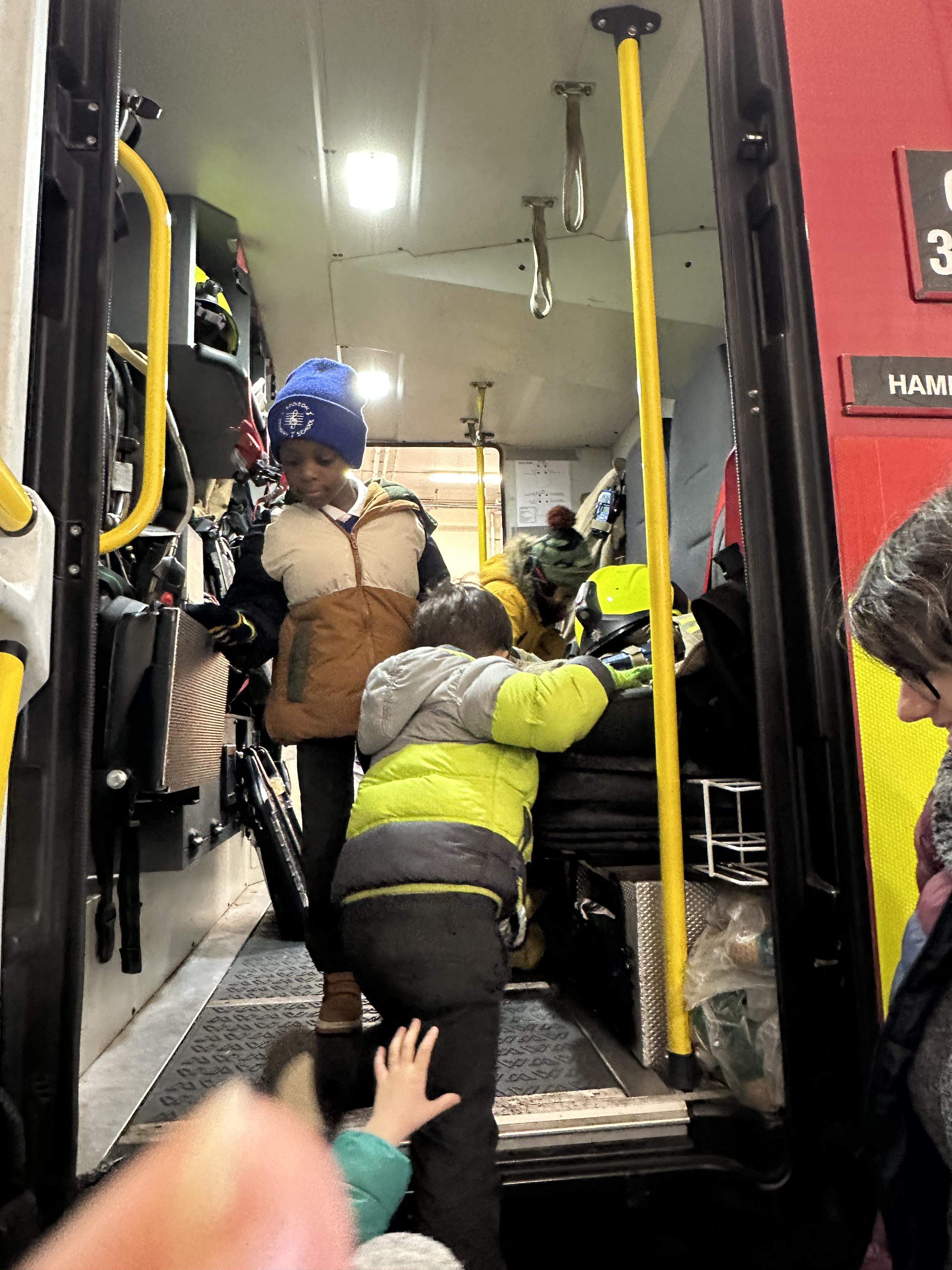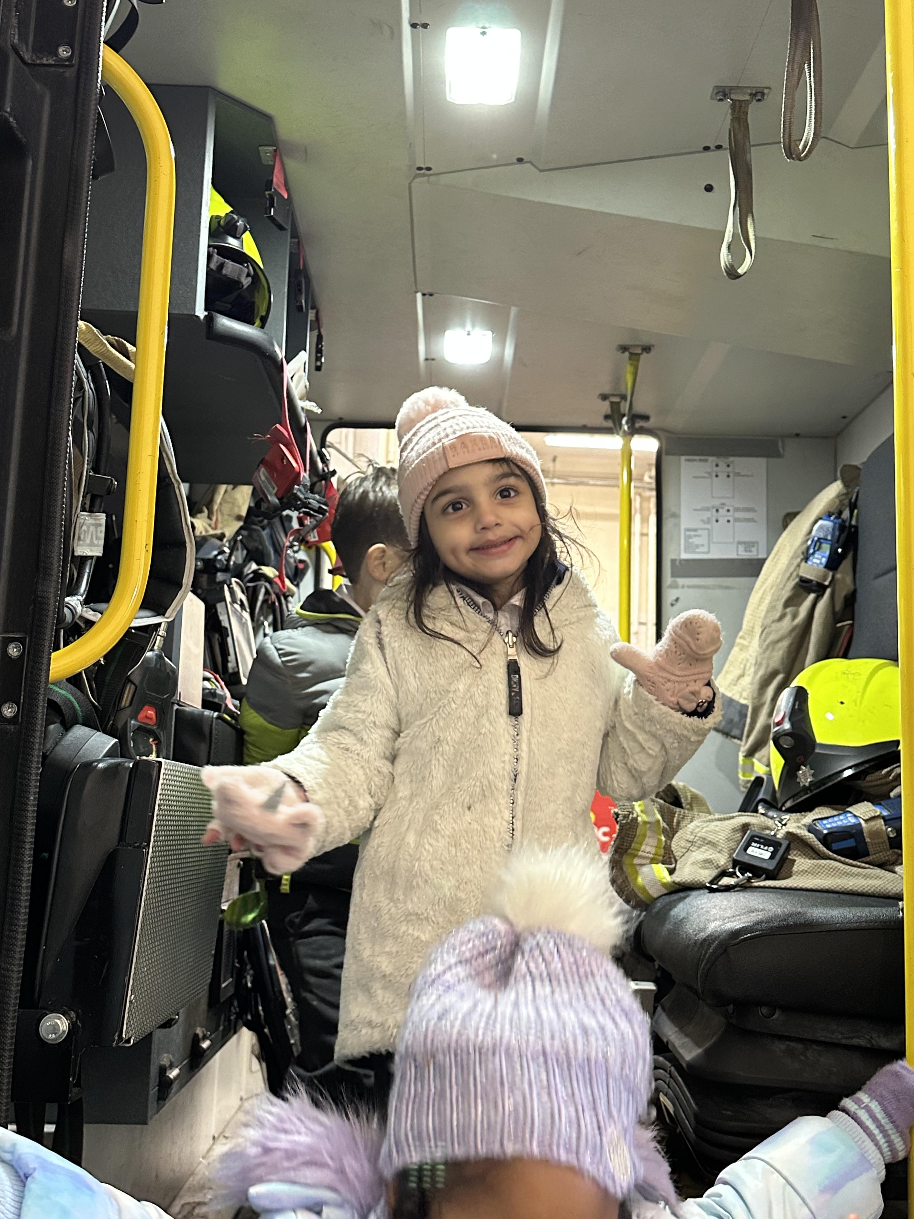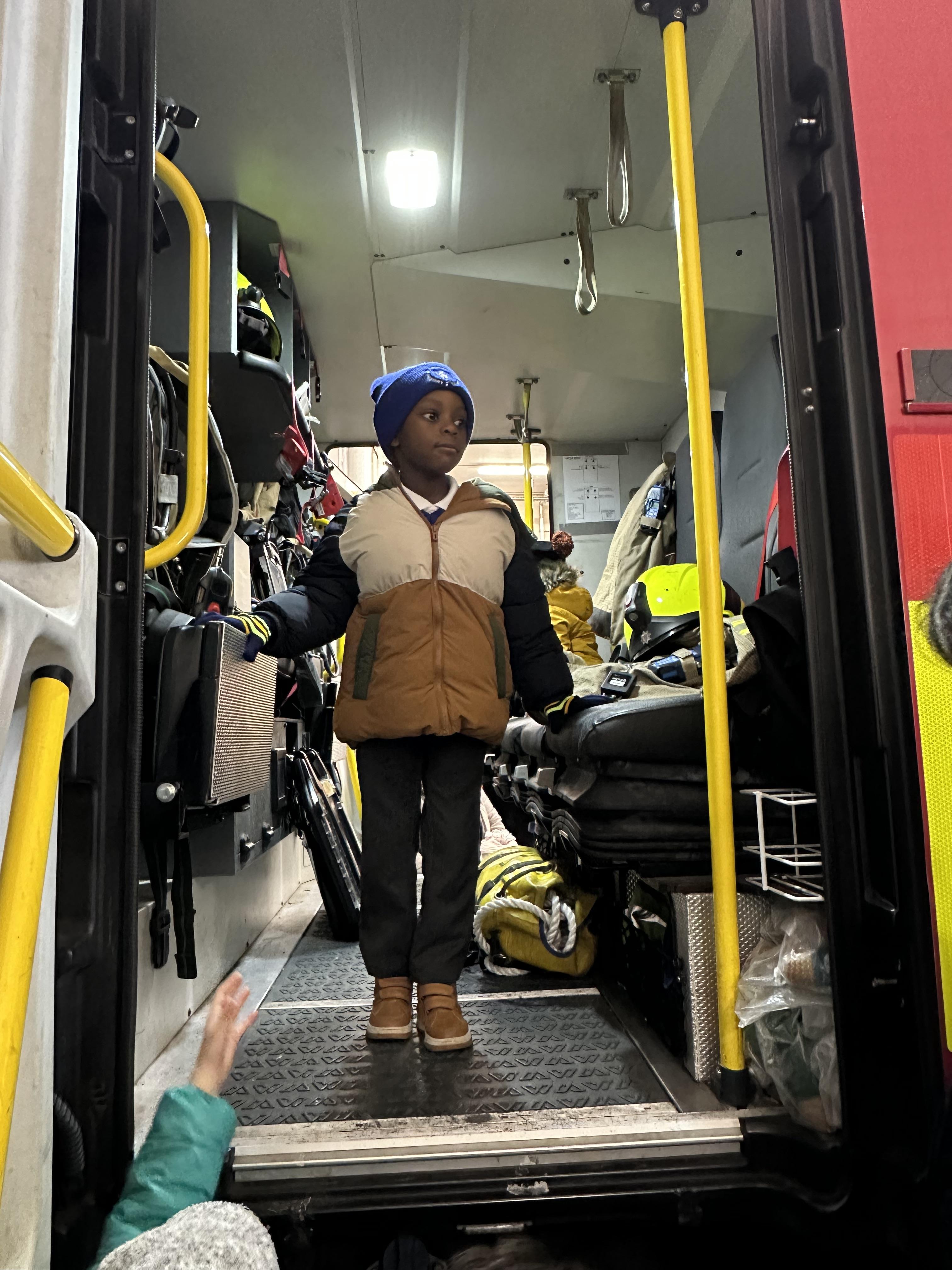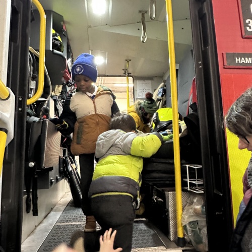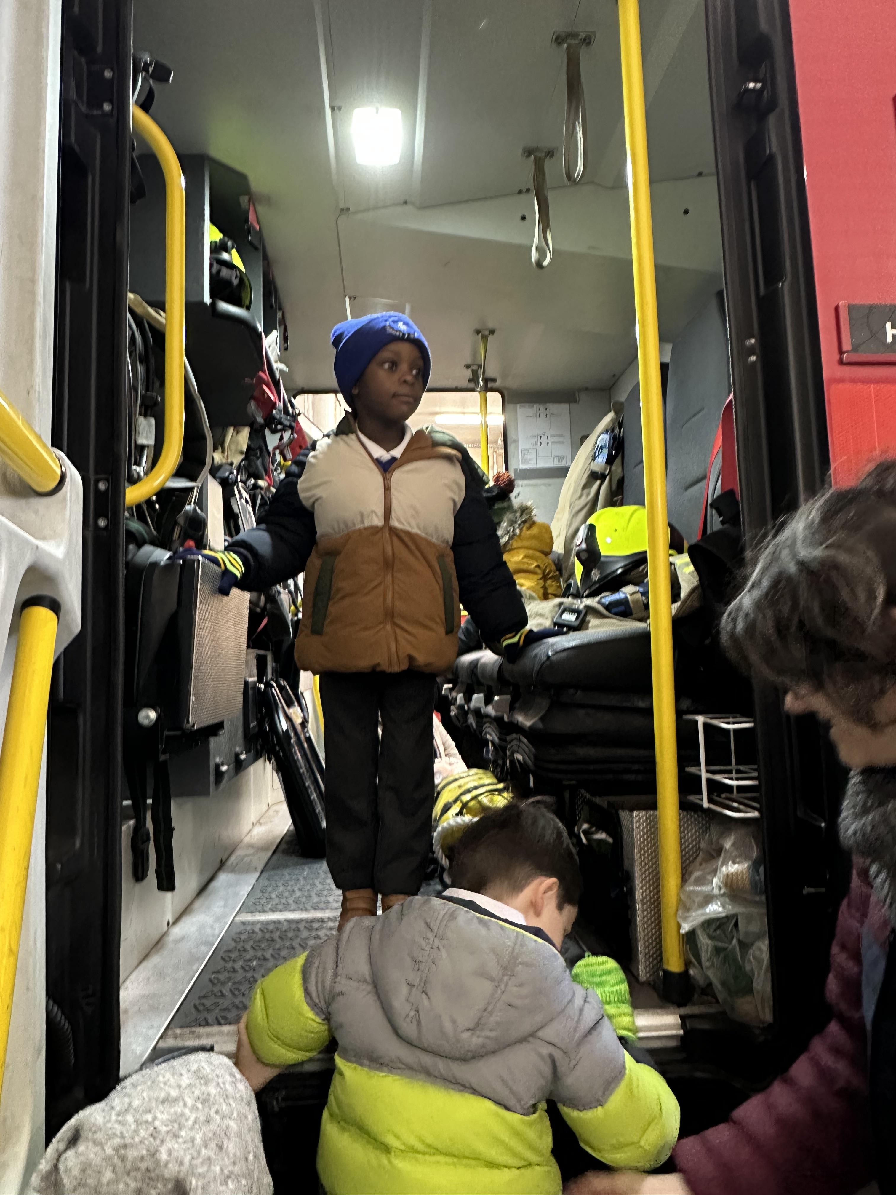 After our time in the park we walked to Hammersmith Fire Station where the firefighters gave us a very warm welcome. The children were delighted to climb onto the fire engine and explore the equipment. They even had the chance to hold the hose and put out a fake fire which was a highlight for many.