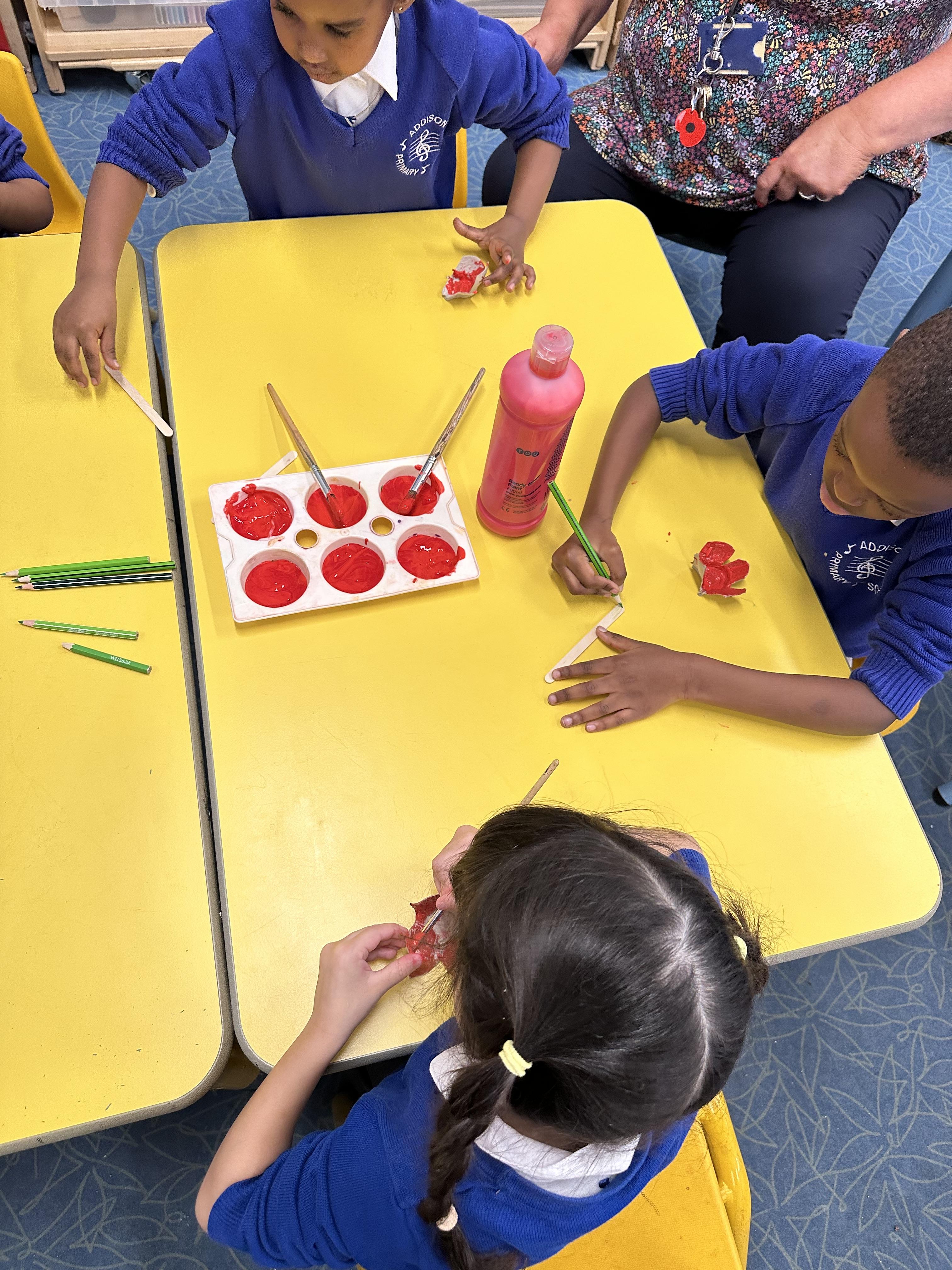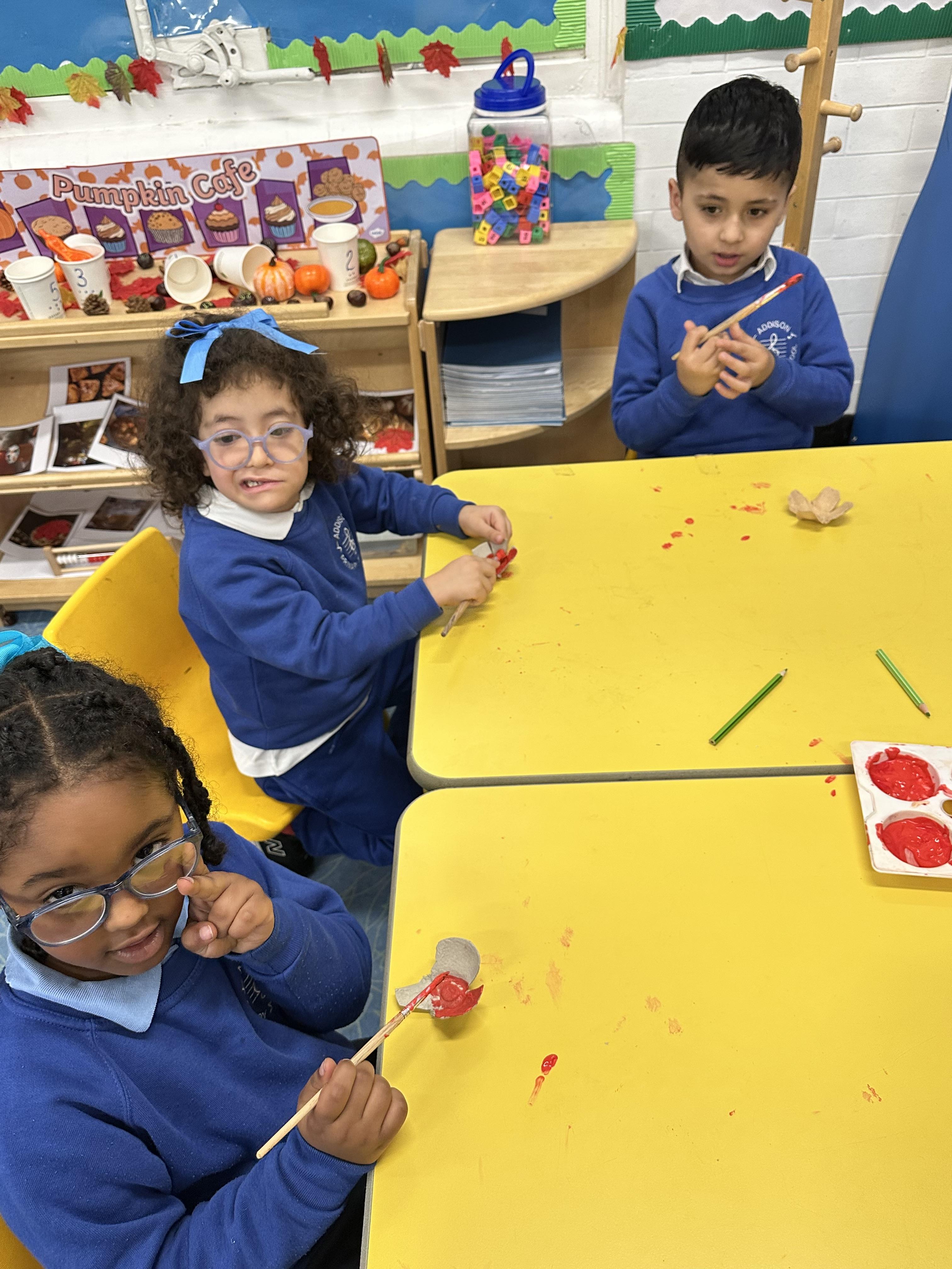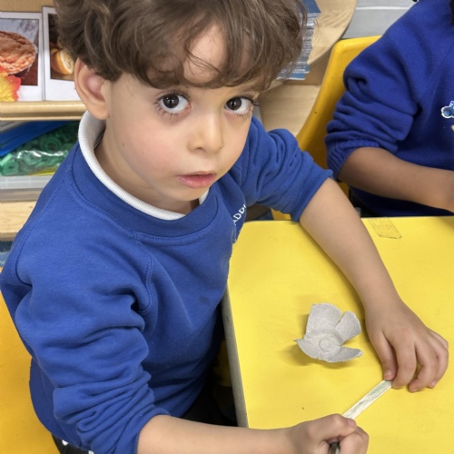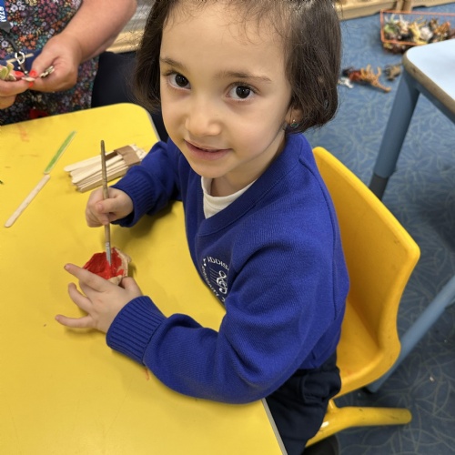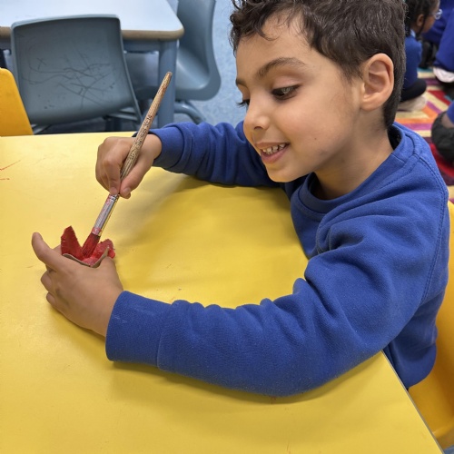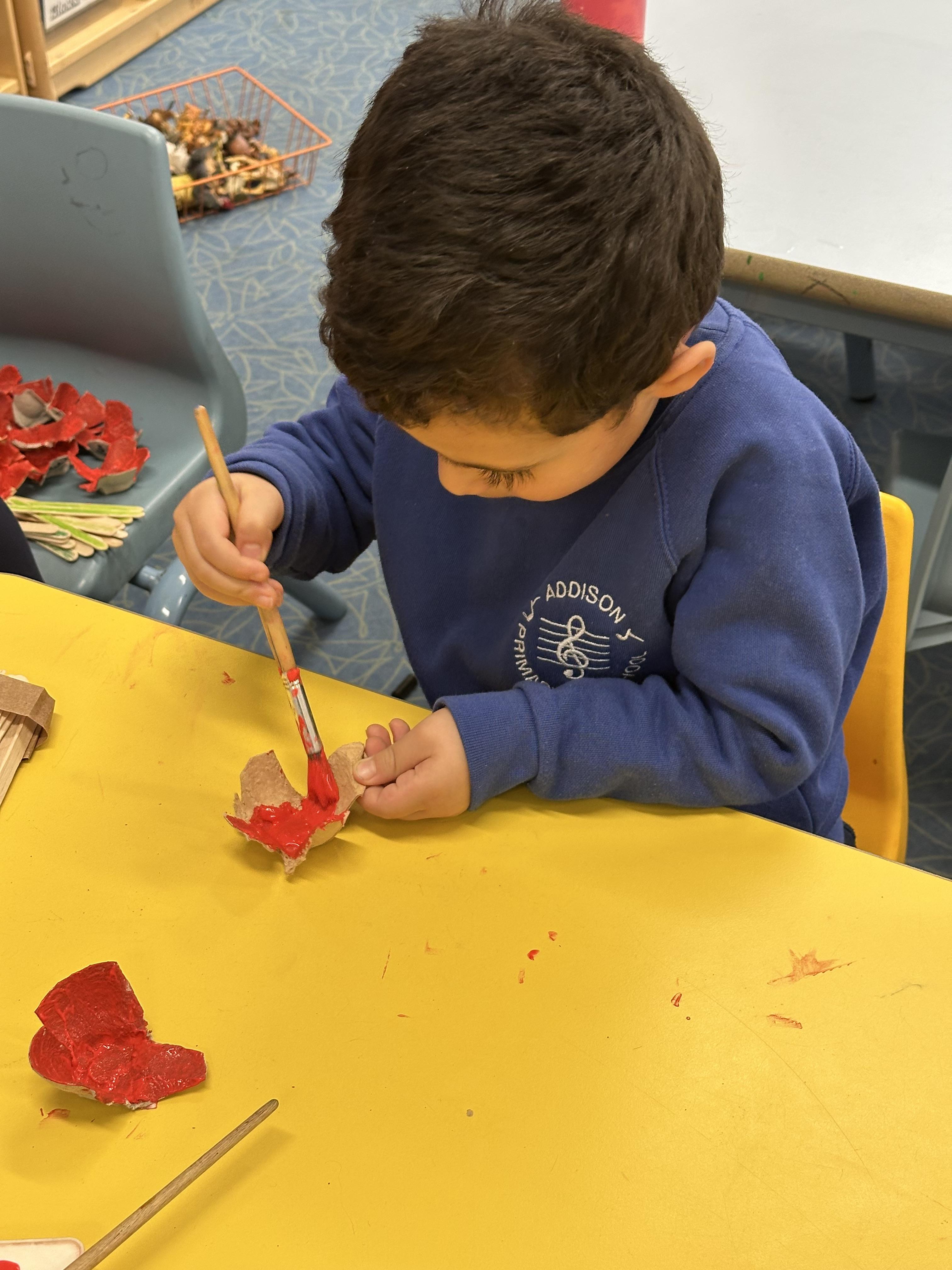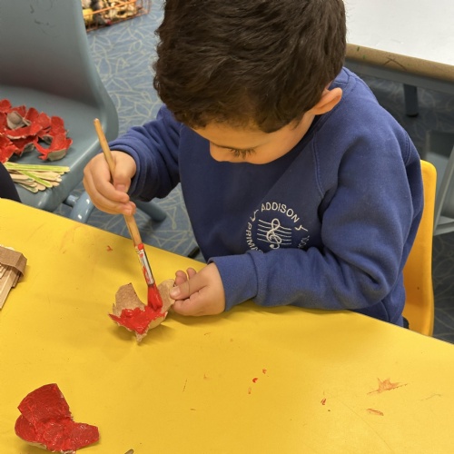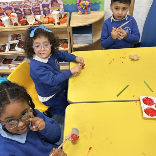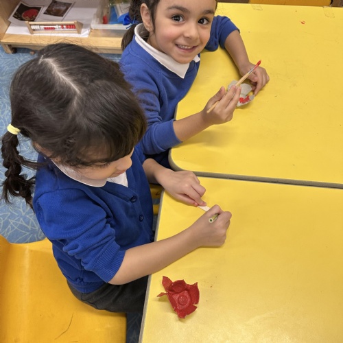 Reception created beautiful poppies for Remembrance Day using egg cartons, lolly sticks, and paint. Pupils enjoyed the Art activity while learning about what poppies symbolise and remembering the fallen soldiers.