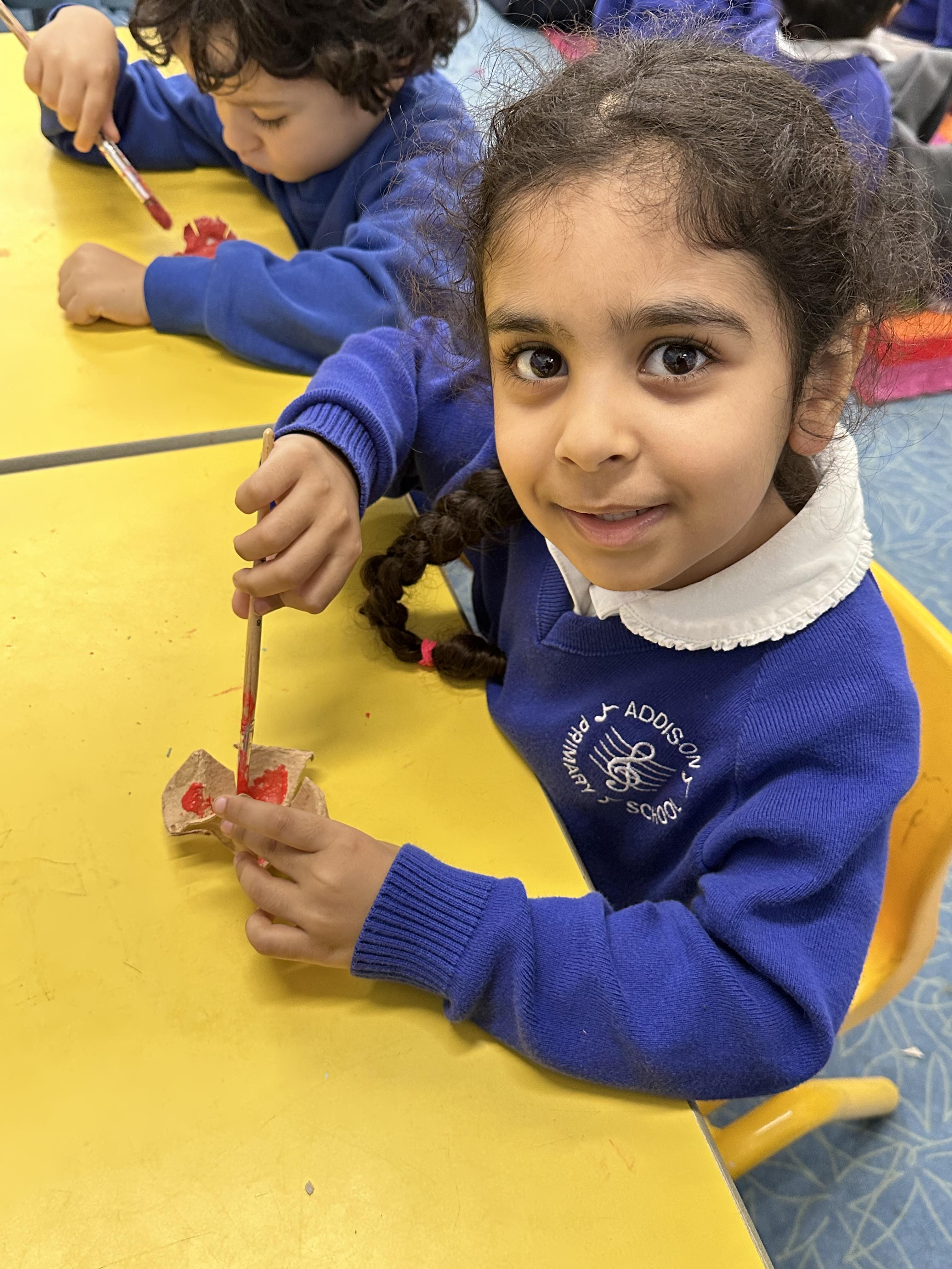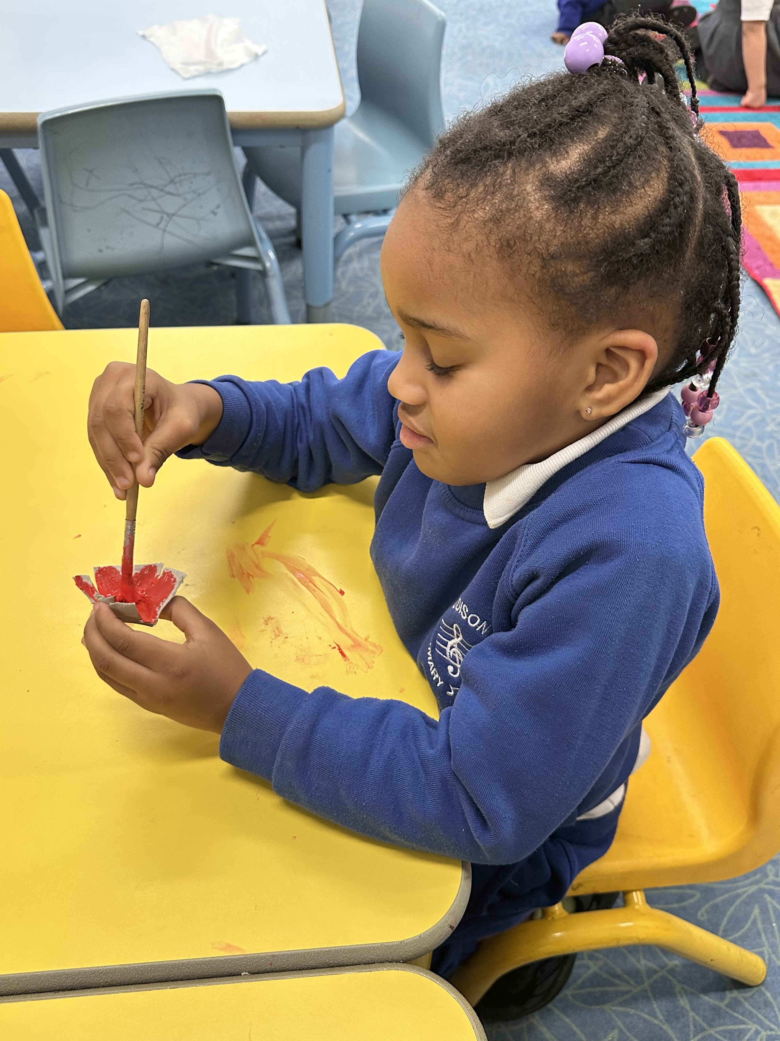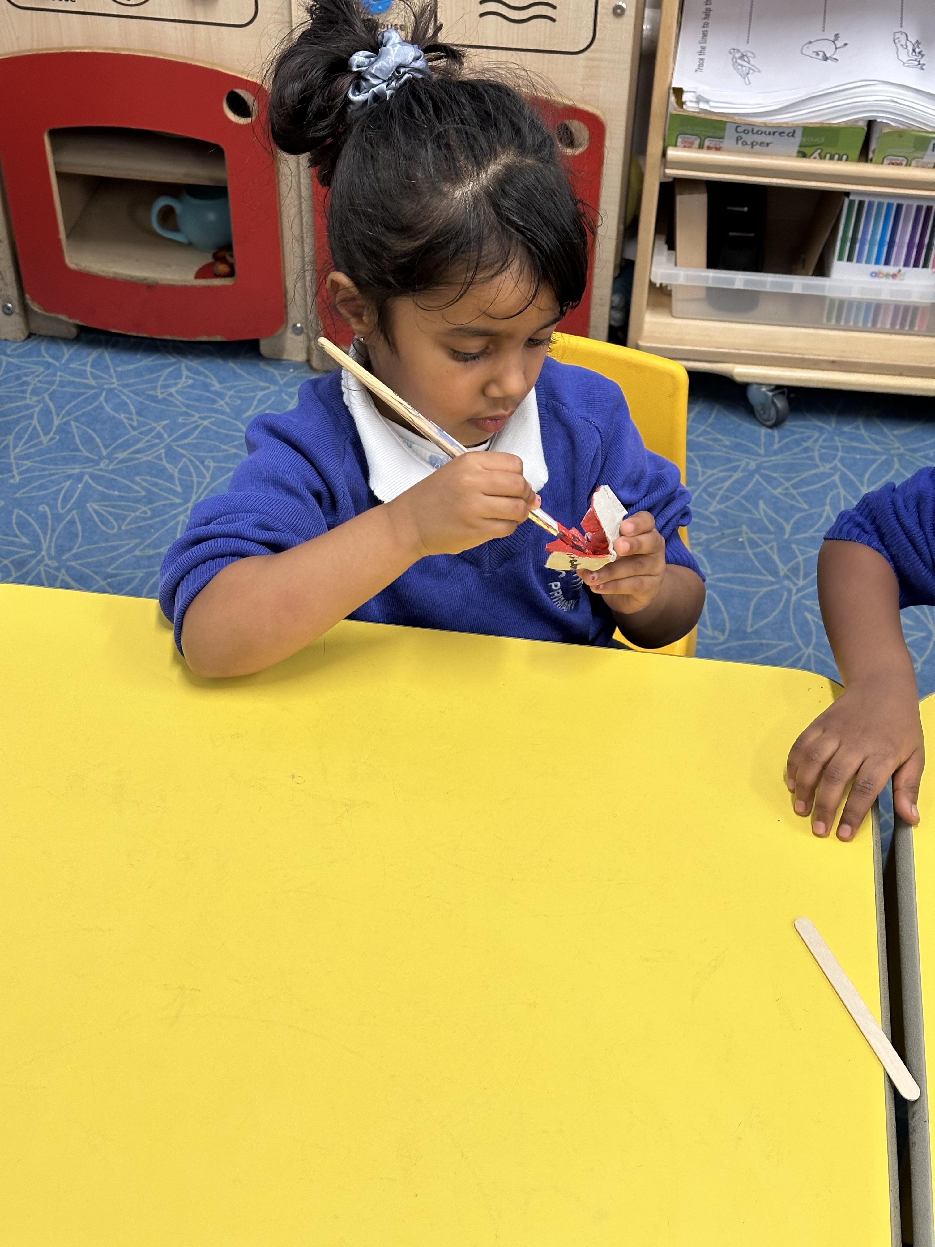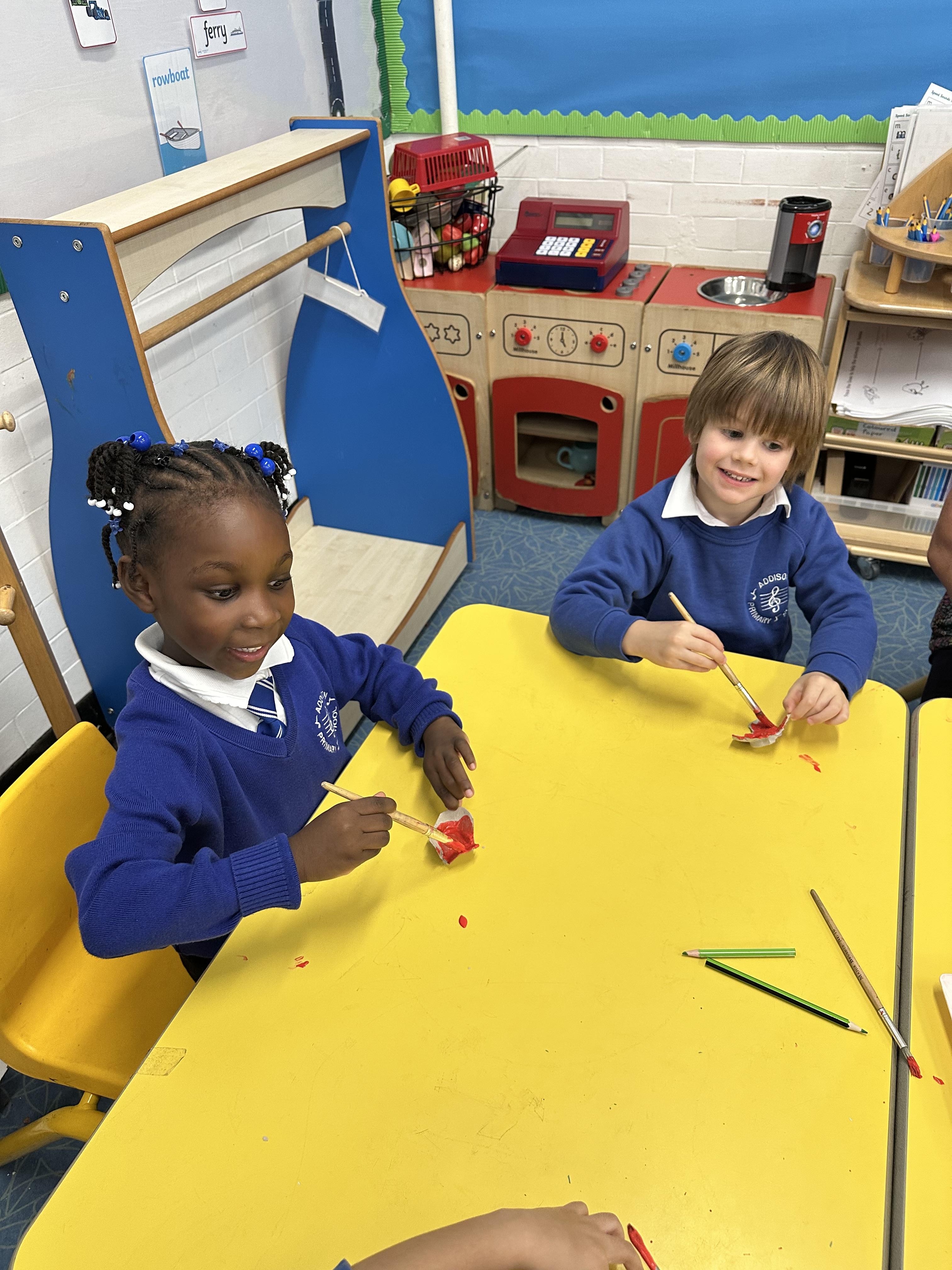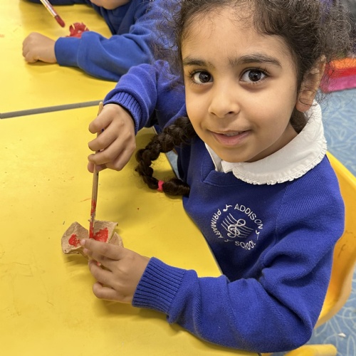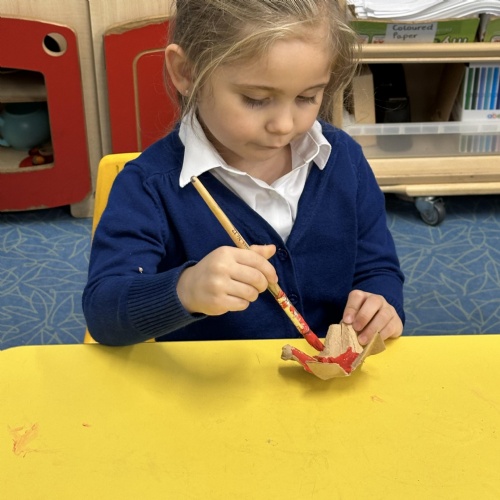 Reception created beautiful poppies for Remembrance Day using egg cartons, lolly sticks, and paint. Pupils enjoyed the Art activity while learning about what poppies symbolise and remembering the fallen soldiers.