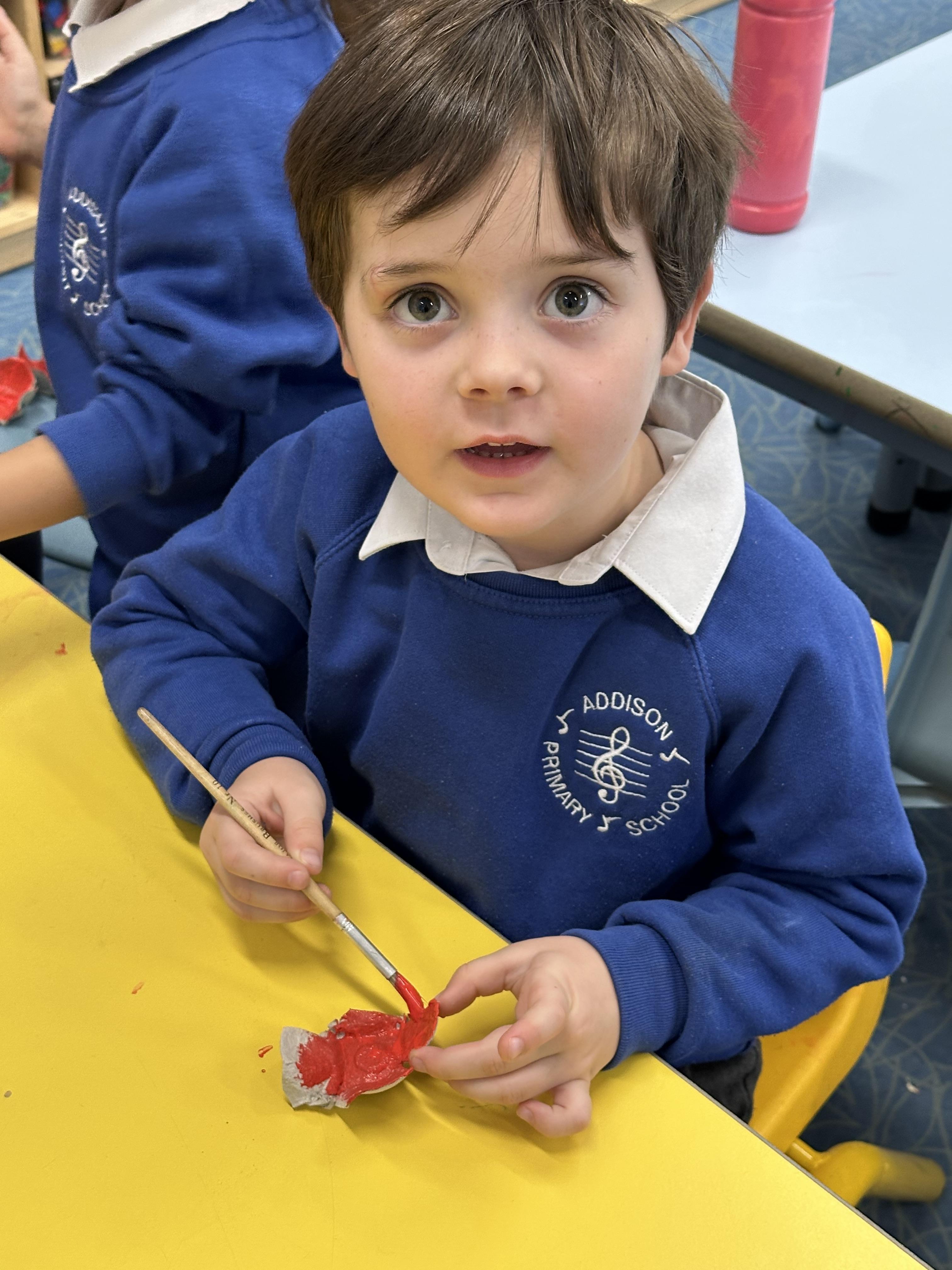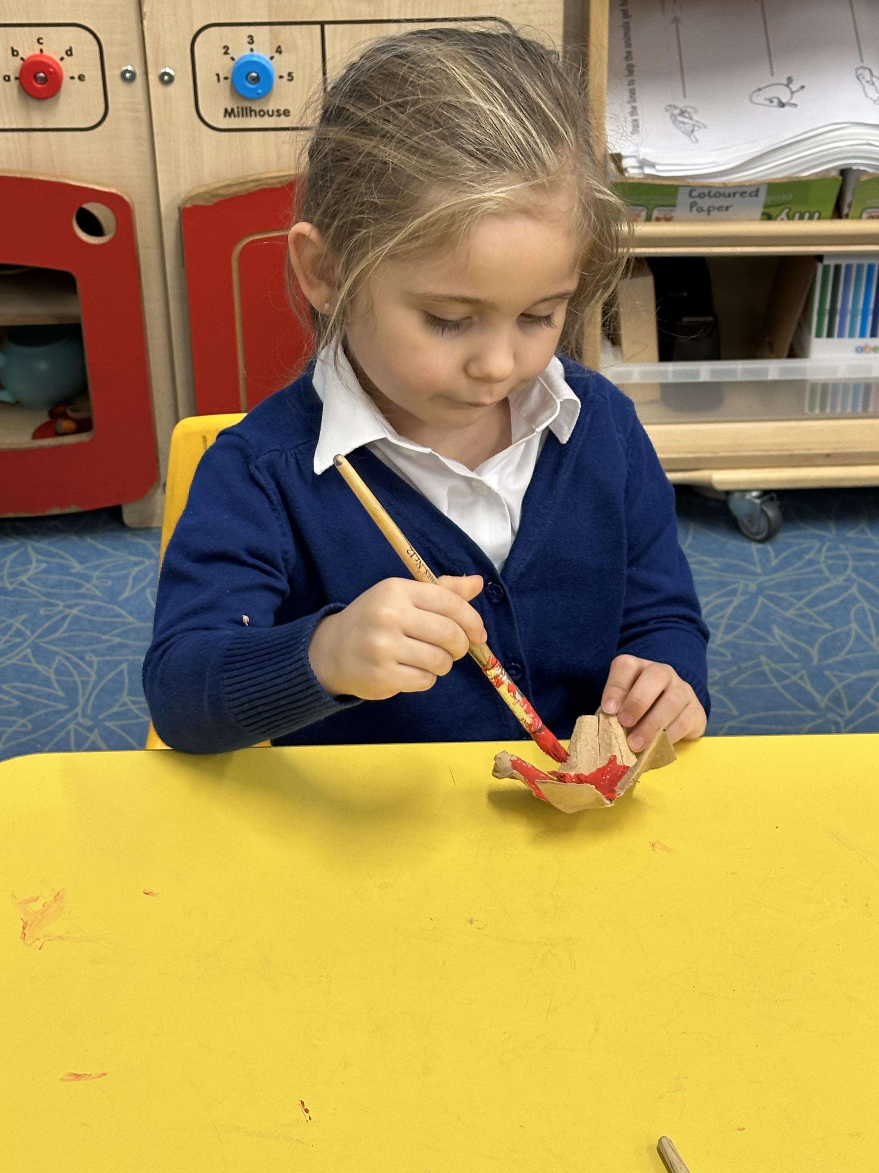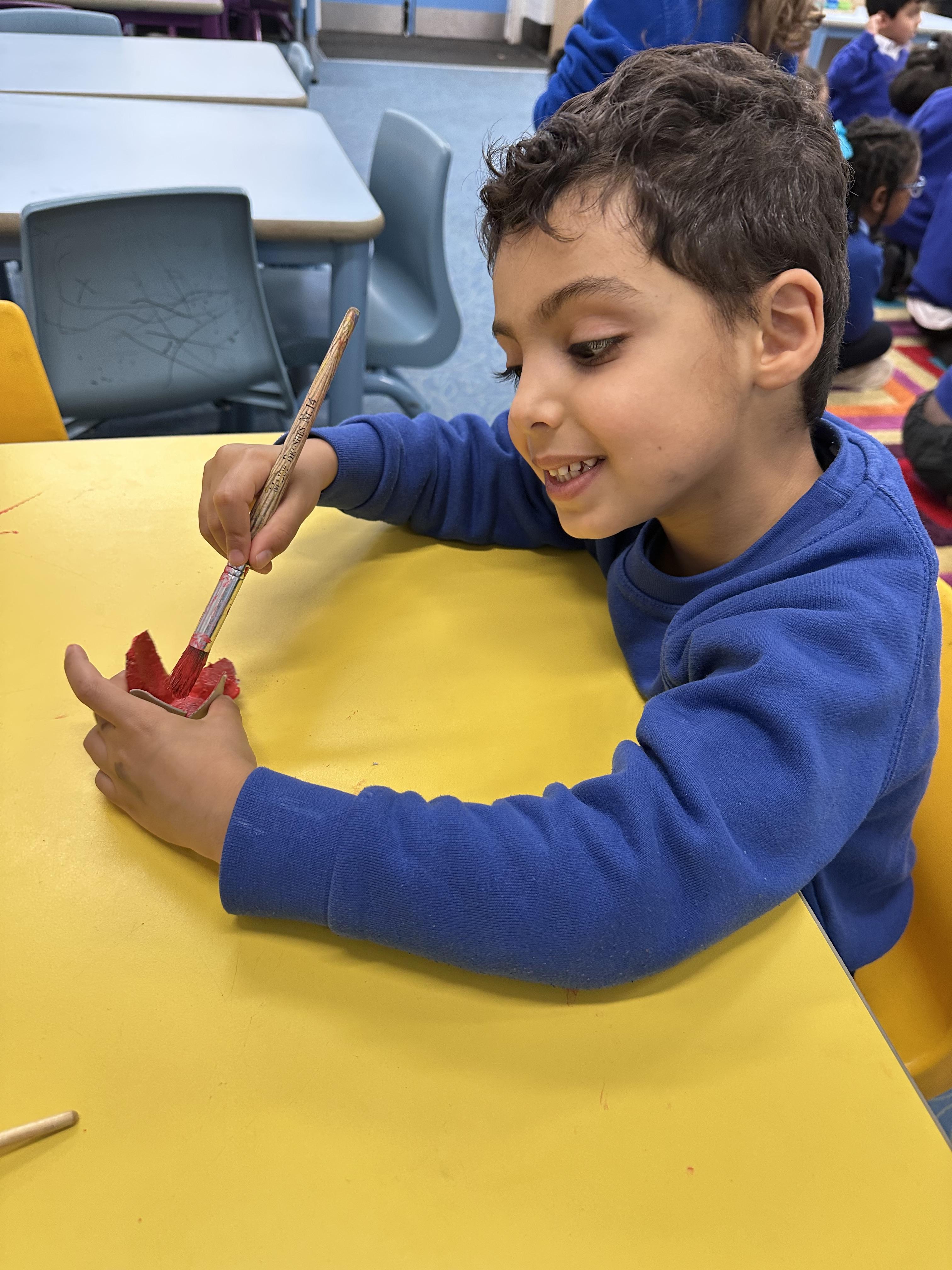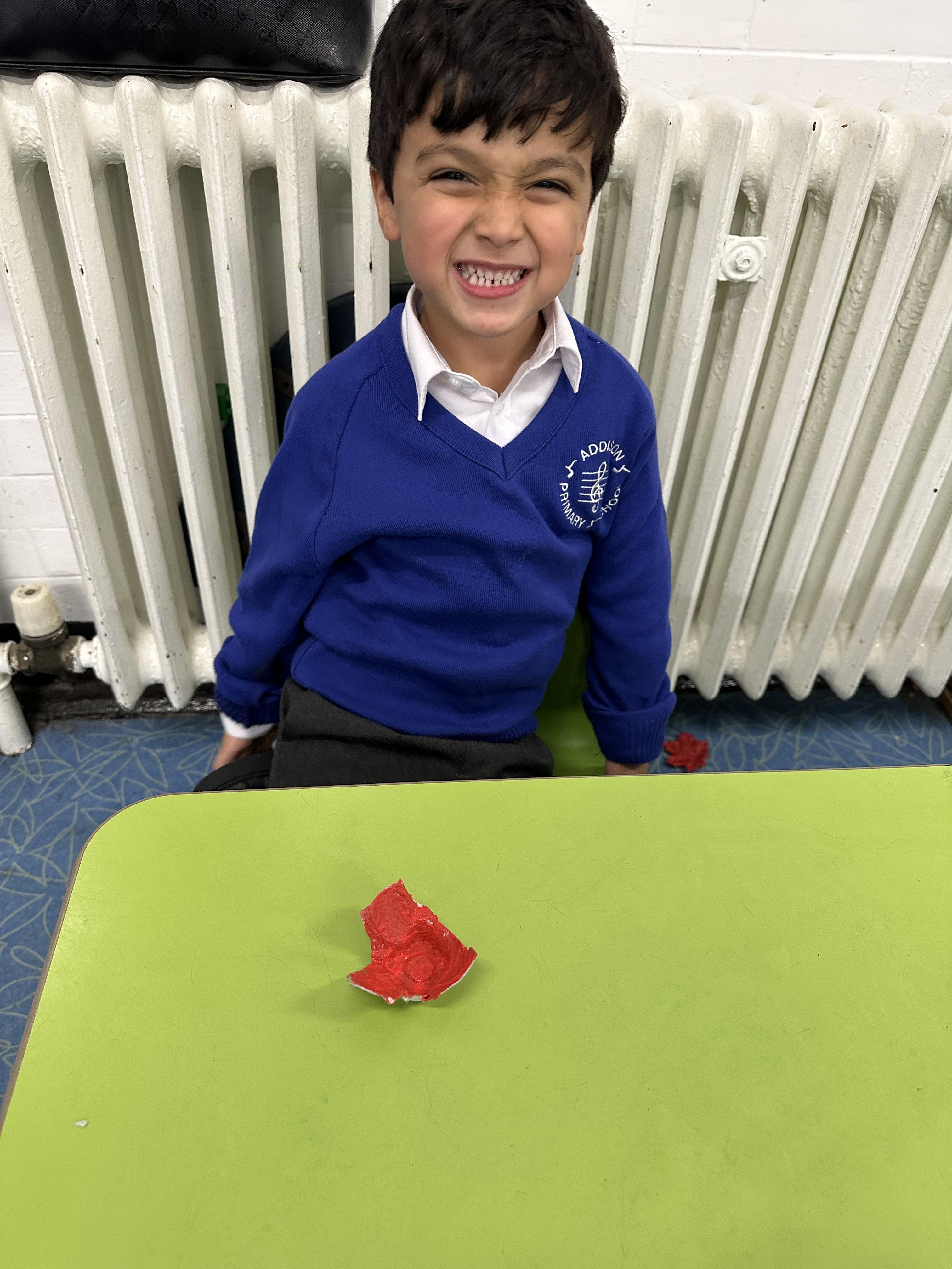 Reception created beautiful poppies for Remembrance Day using egg cartons, lolly sticks, and paint. Pupils enjoyed the Art activity while learning about what poppies symbolise and remembering the fallen soldiers.