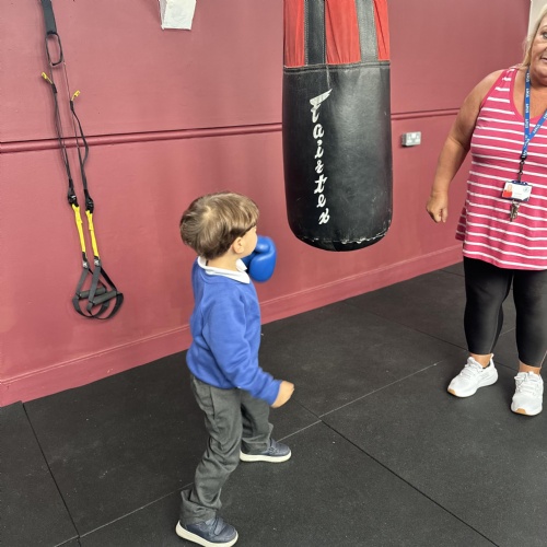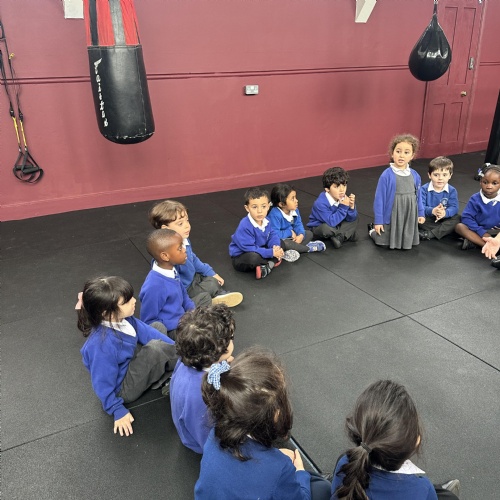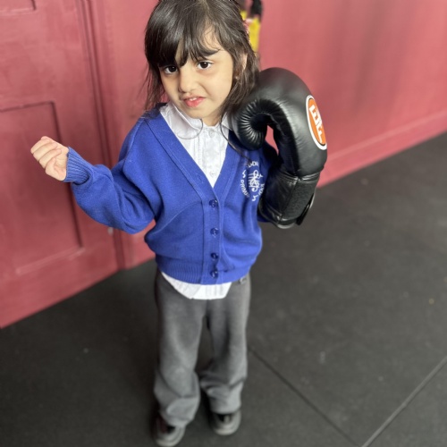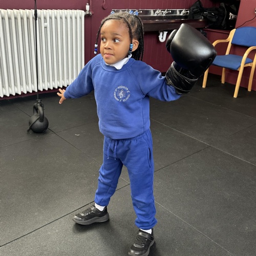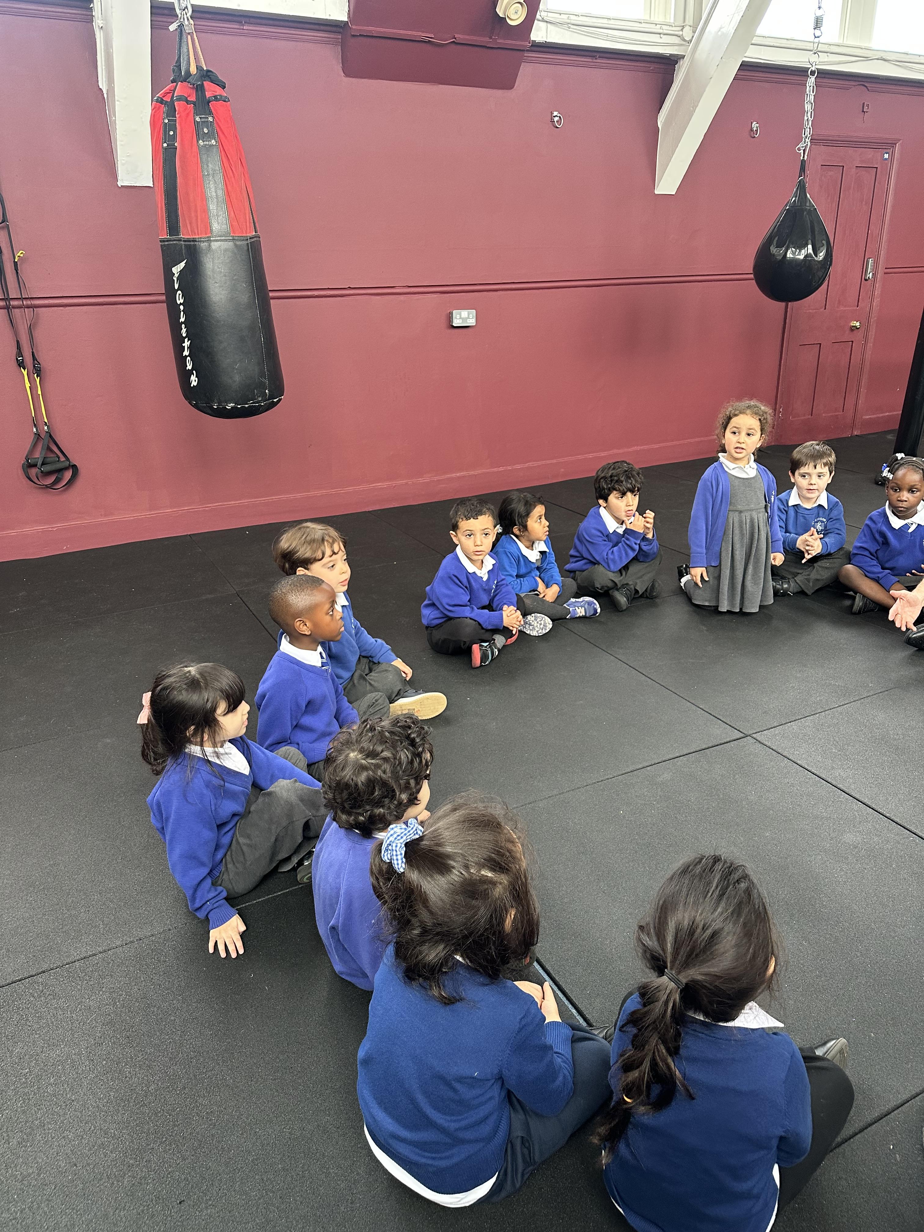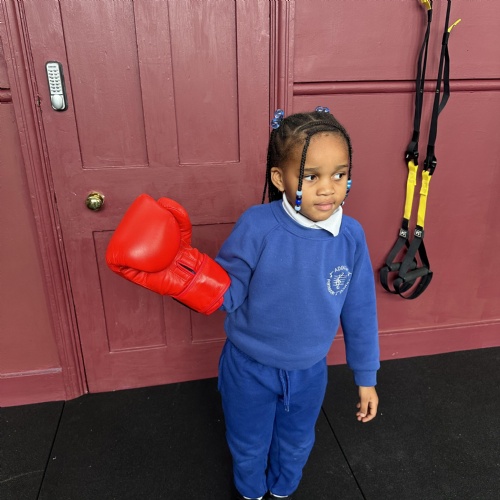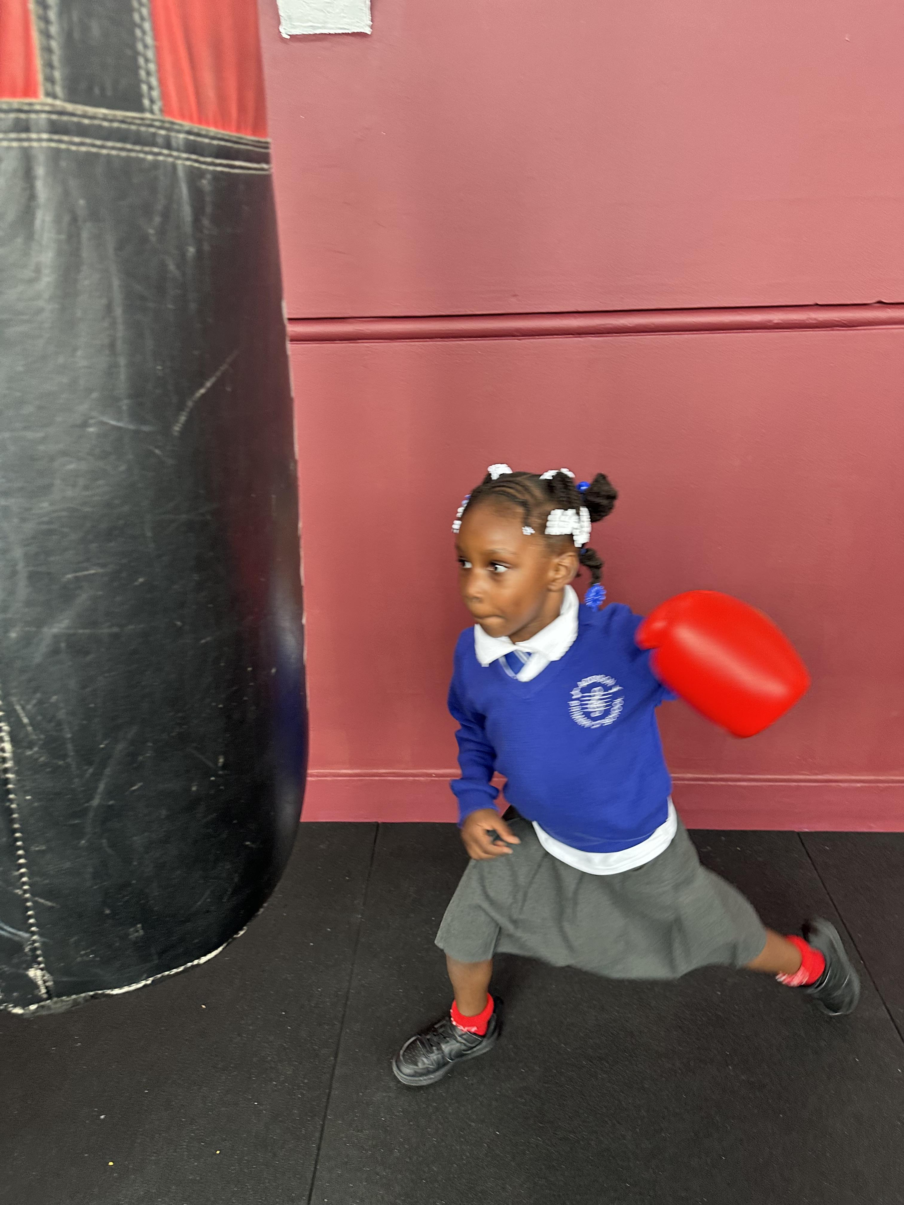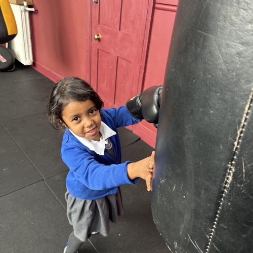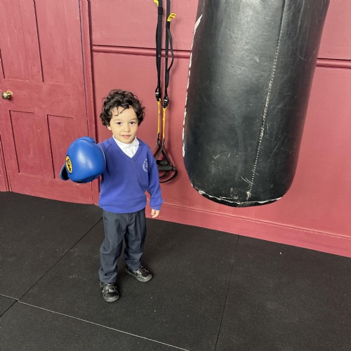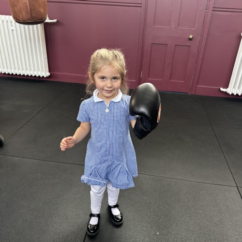 Reception had a very exciting experience visiting the ‘secret room’ right at the top of Addison. We climbed, climbed some more, climbed some more, climbed some more until there were no more steps left to take. Once inside, the children had the opportunity to put on gloves and try out the punch bags. This opportunity was linked to their PE learning, where pupils had been developing their warm-up skills by practising controlled boxing movements.