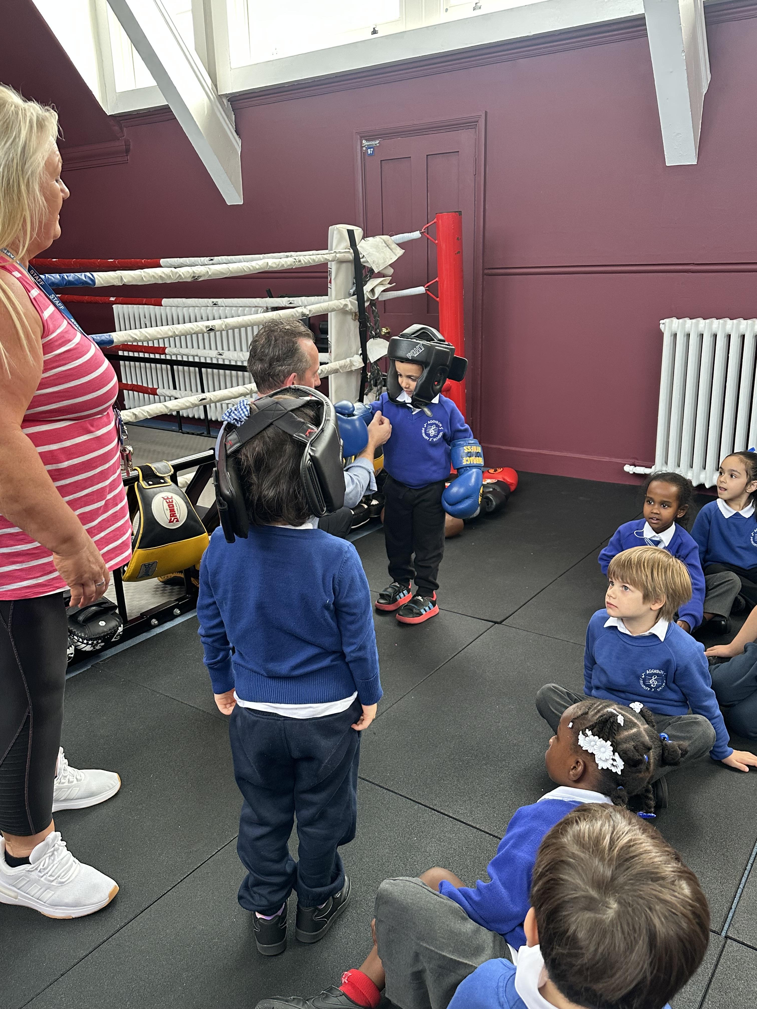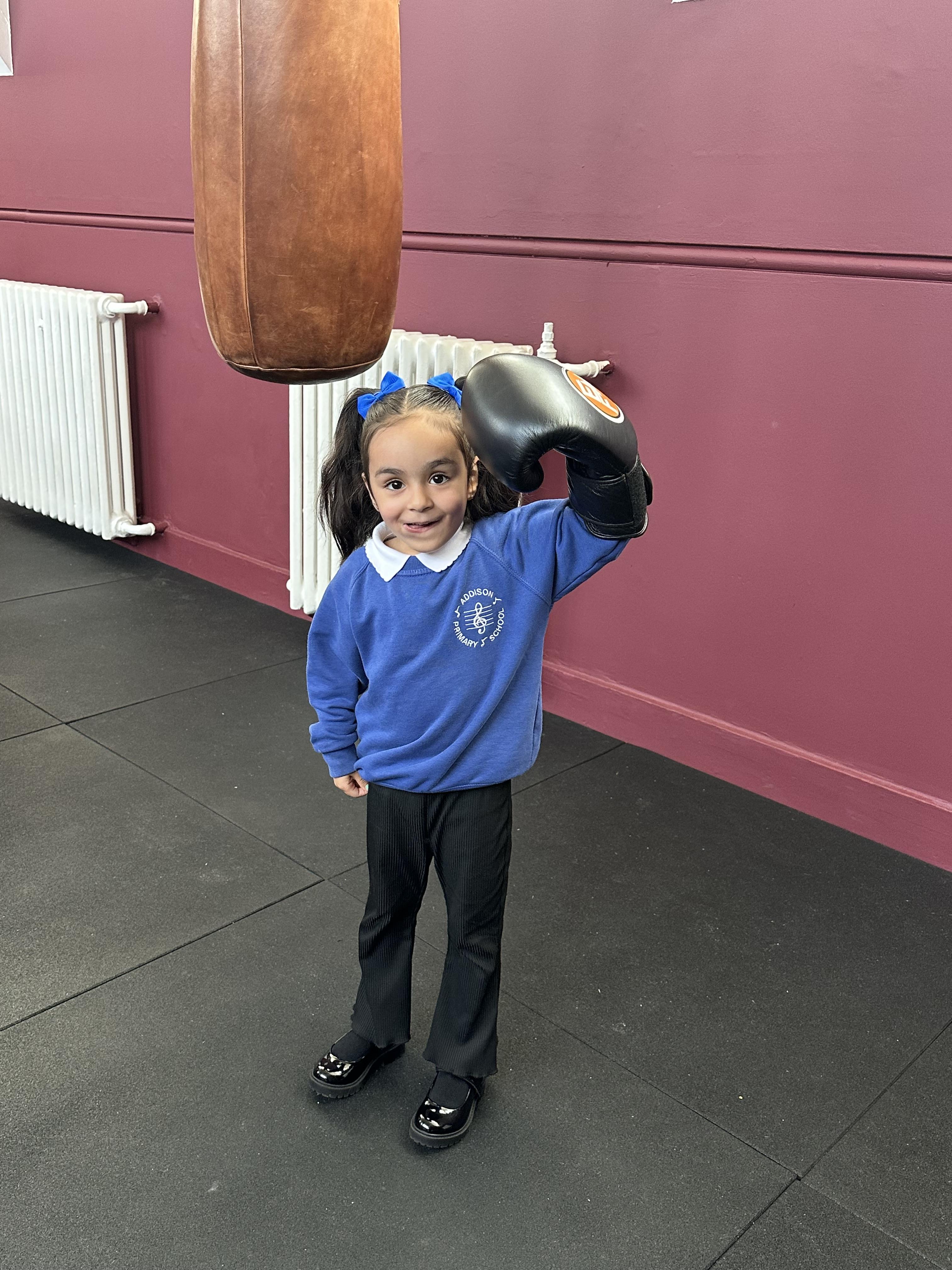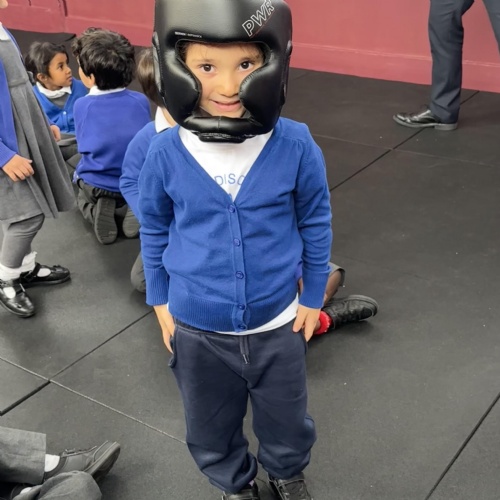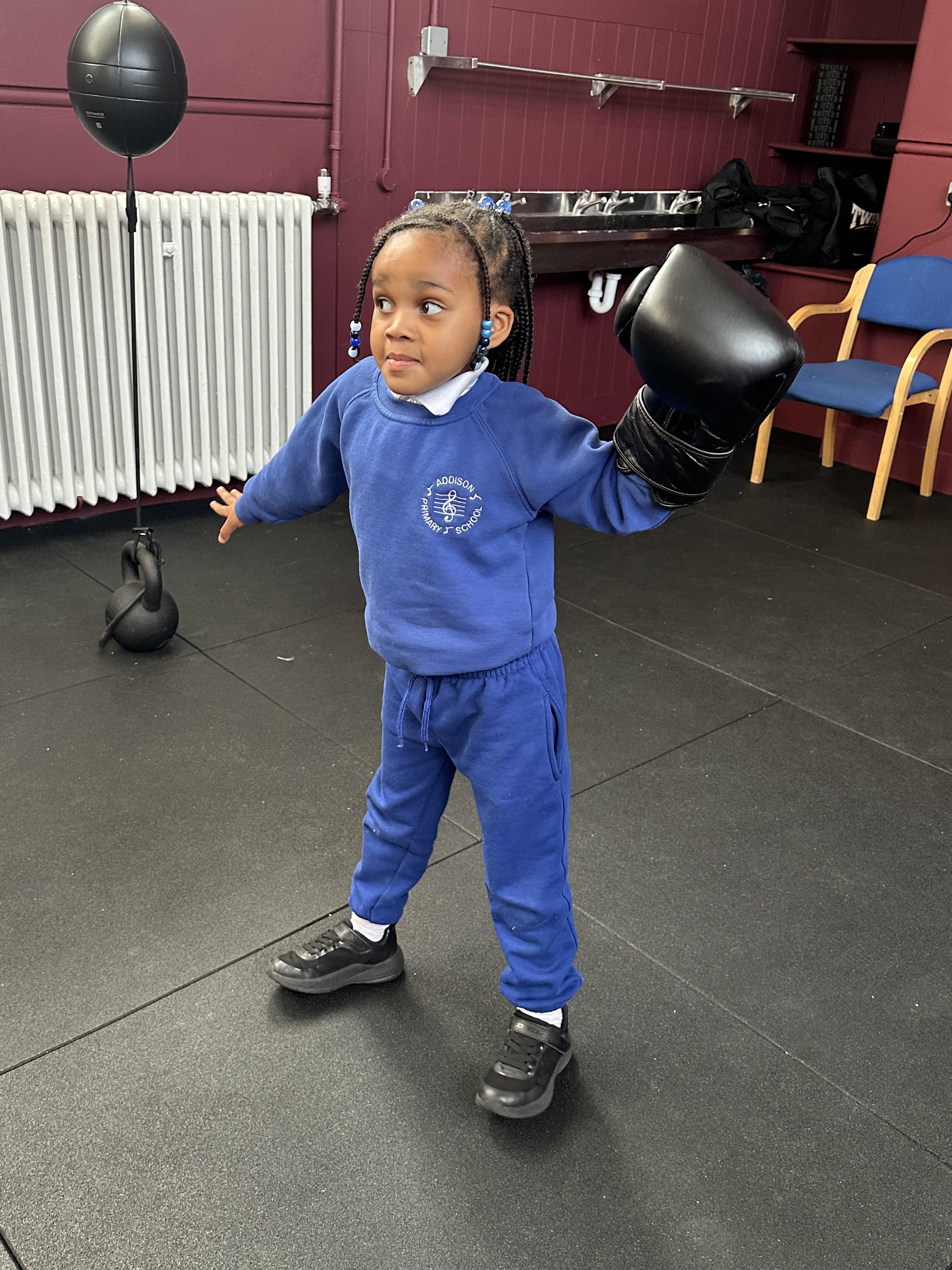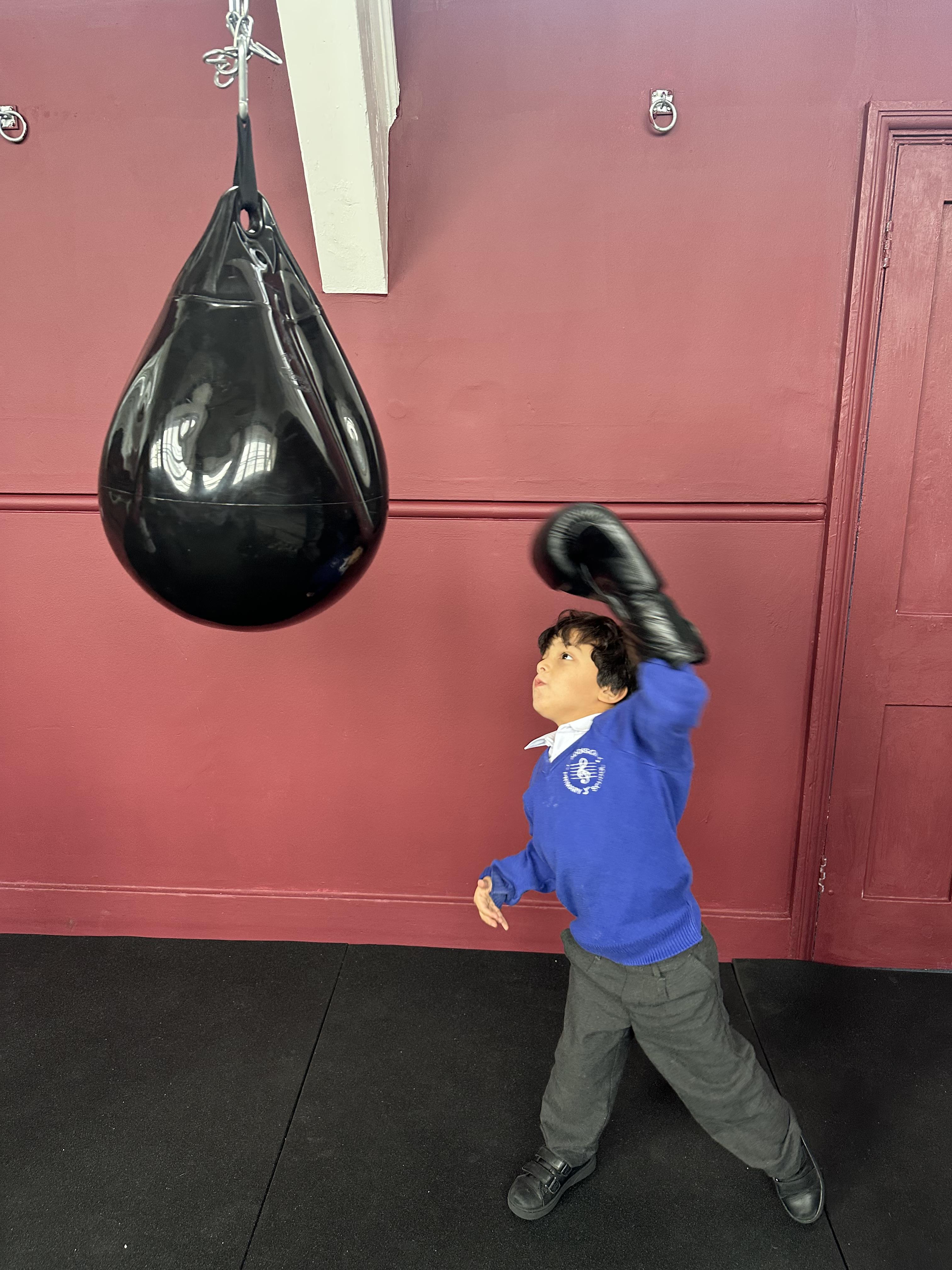 Reception had a very exciting experience visiting the ‘secret room’ right at the top of Addison. We climbed, climbed some more, climbed some more, climbed some more until there were no more steps left to take. Once inside, the children had the opportunity to put on gloves and try out the punch bags. This opportunity was linked to their PE learning, where pupils had been developing their warm-up skills by practising controlled boxing movements.