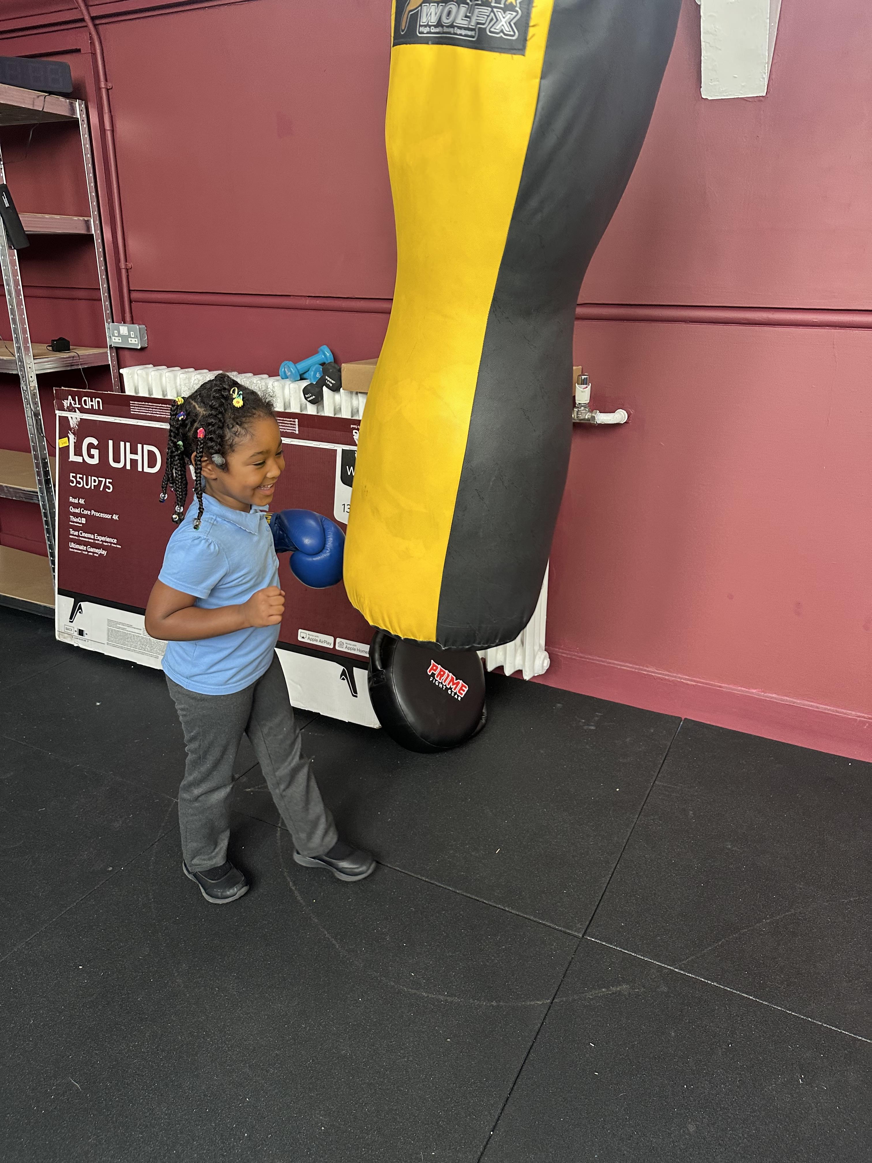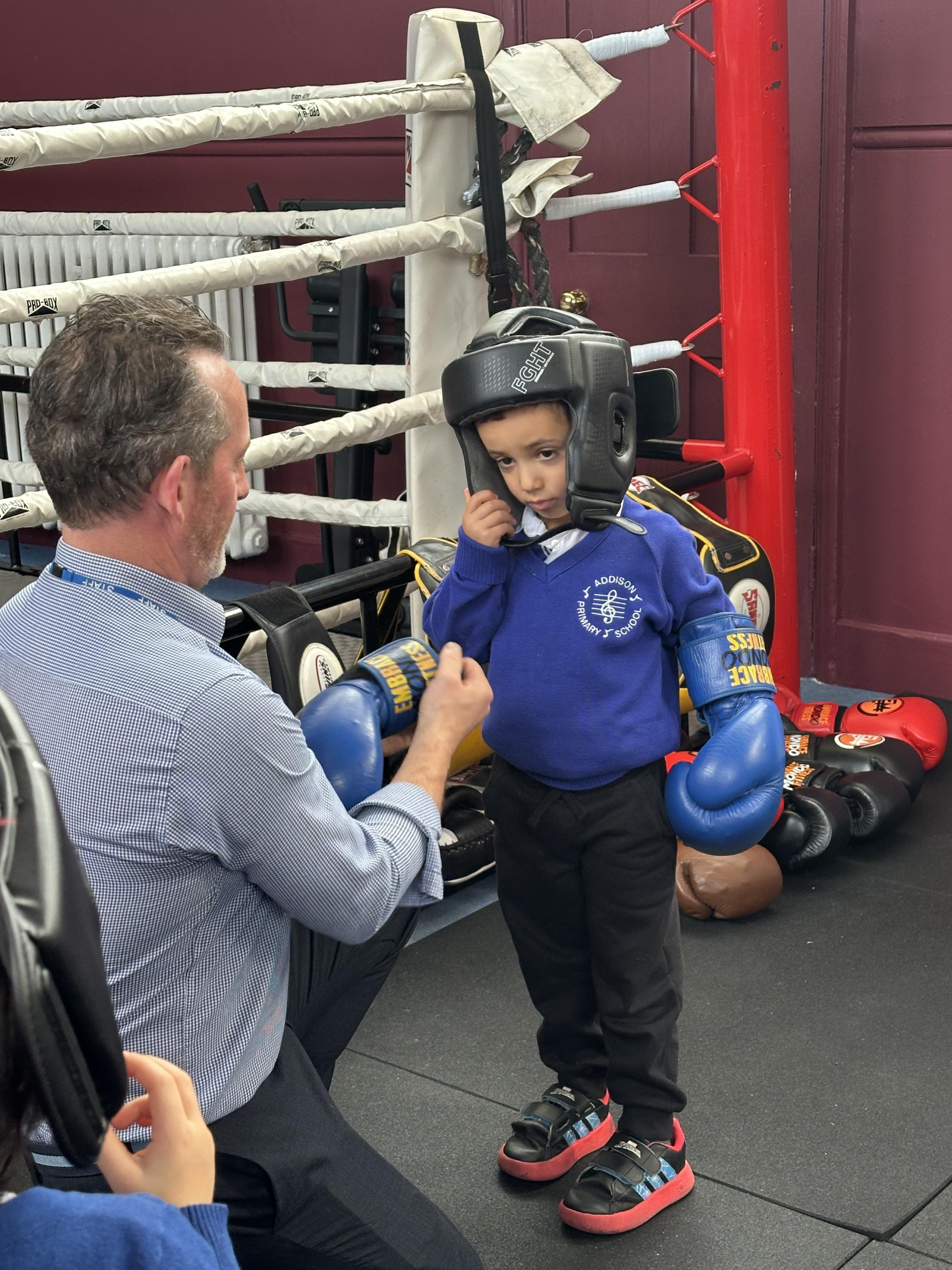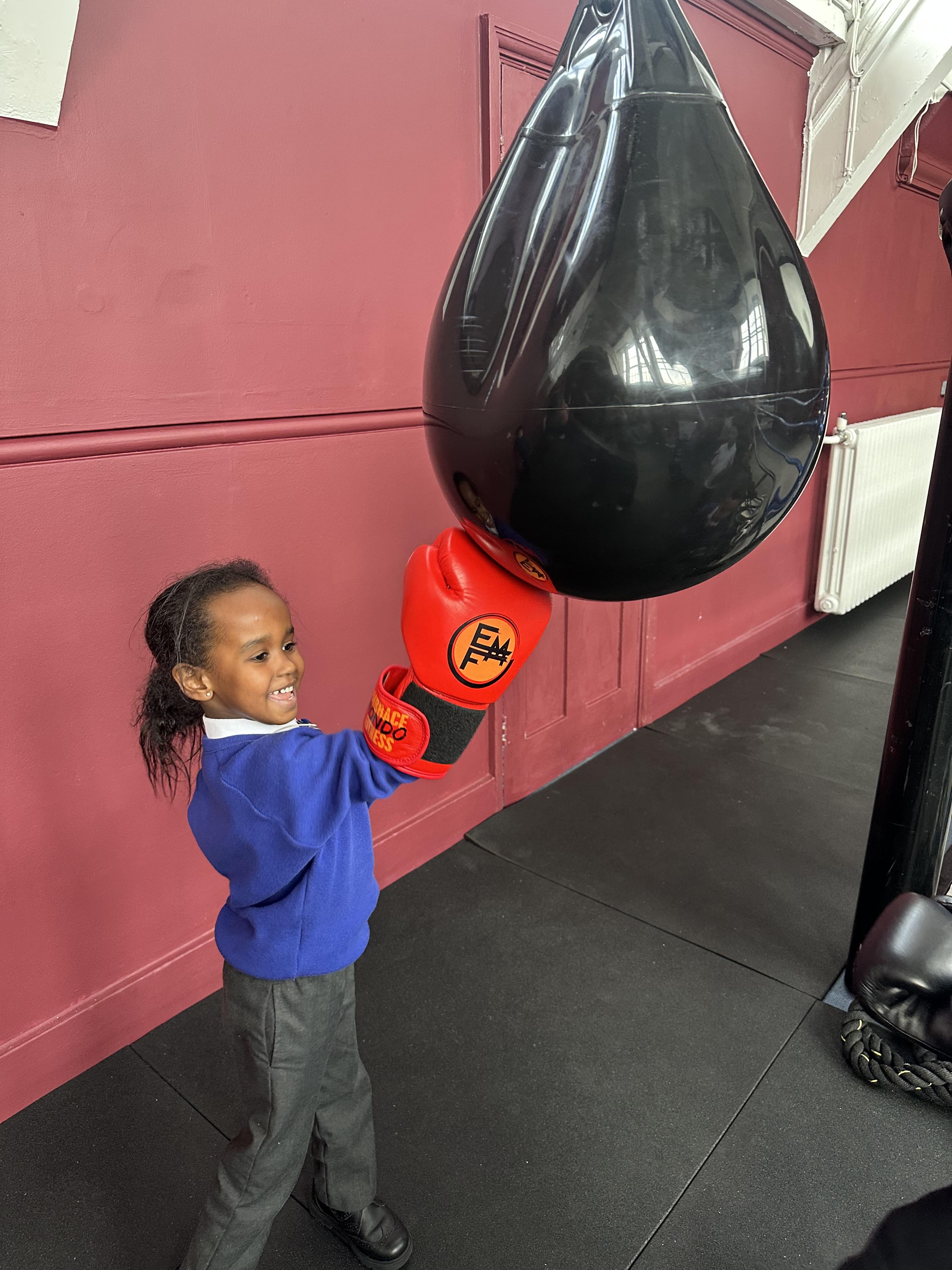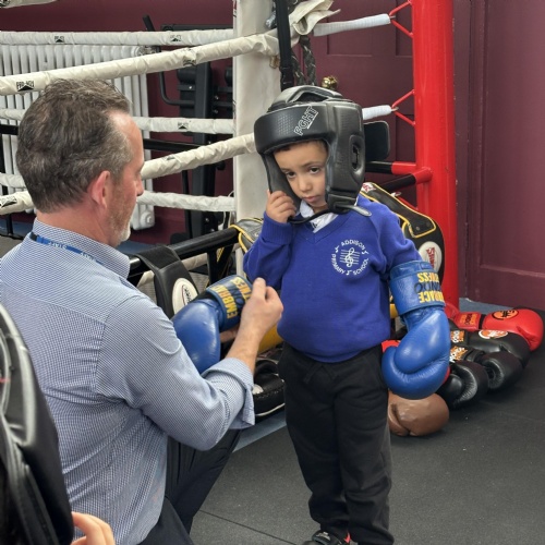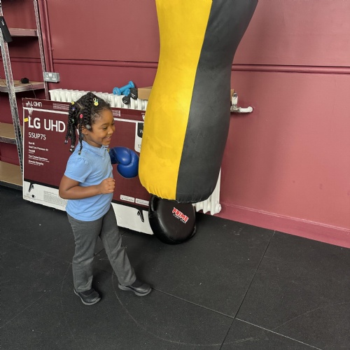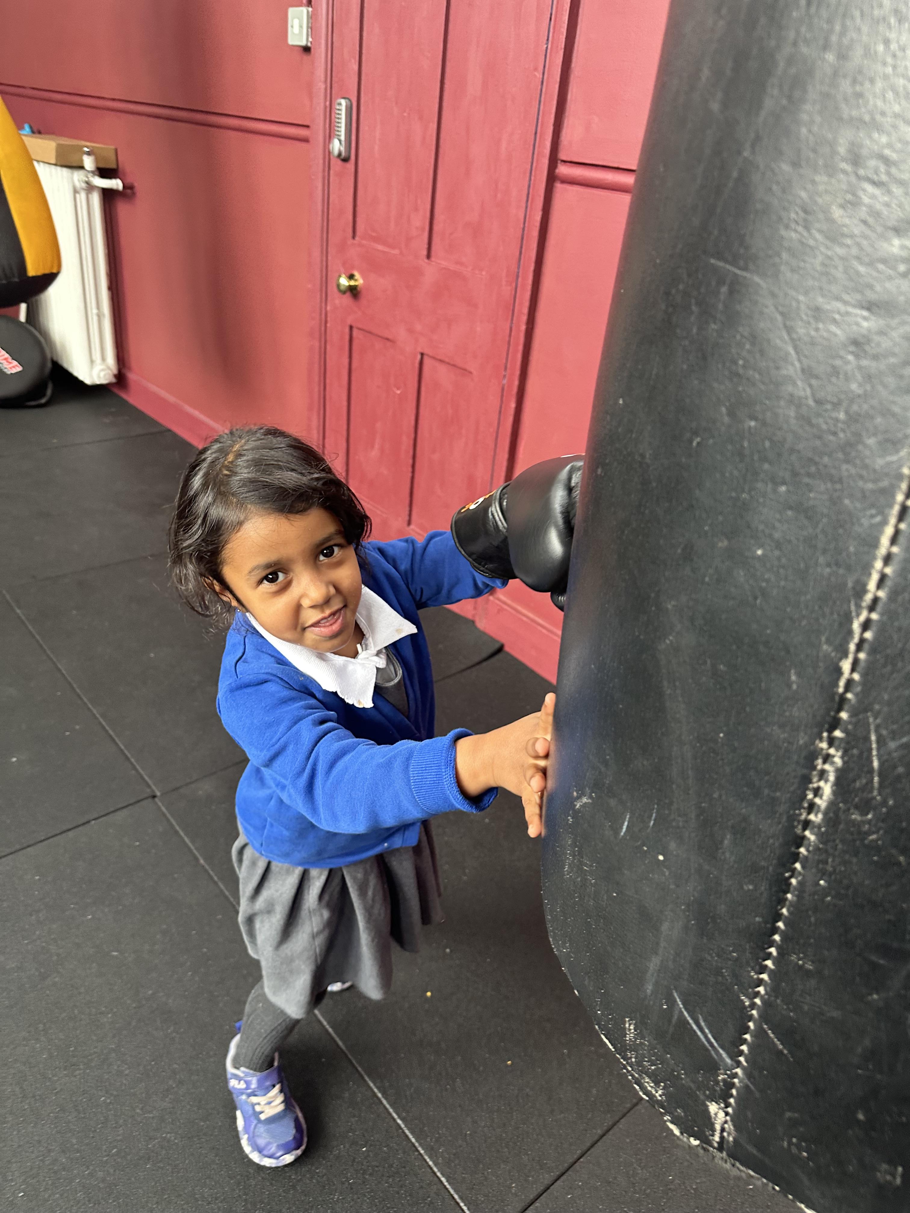 Reception had a very exciting experience visiting the ‘secret room’ right at the top of Addison. We climbed, climbed some more, climbed some more, climbed some more until there were no more steps left to take. Once inside, the children had the opportunity to put on gloves and try out the punch bags. This opportunity was linked to their PE learning, where pupils had been developing their warm-up skills by practising controlled boxing movements.