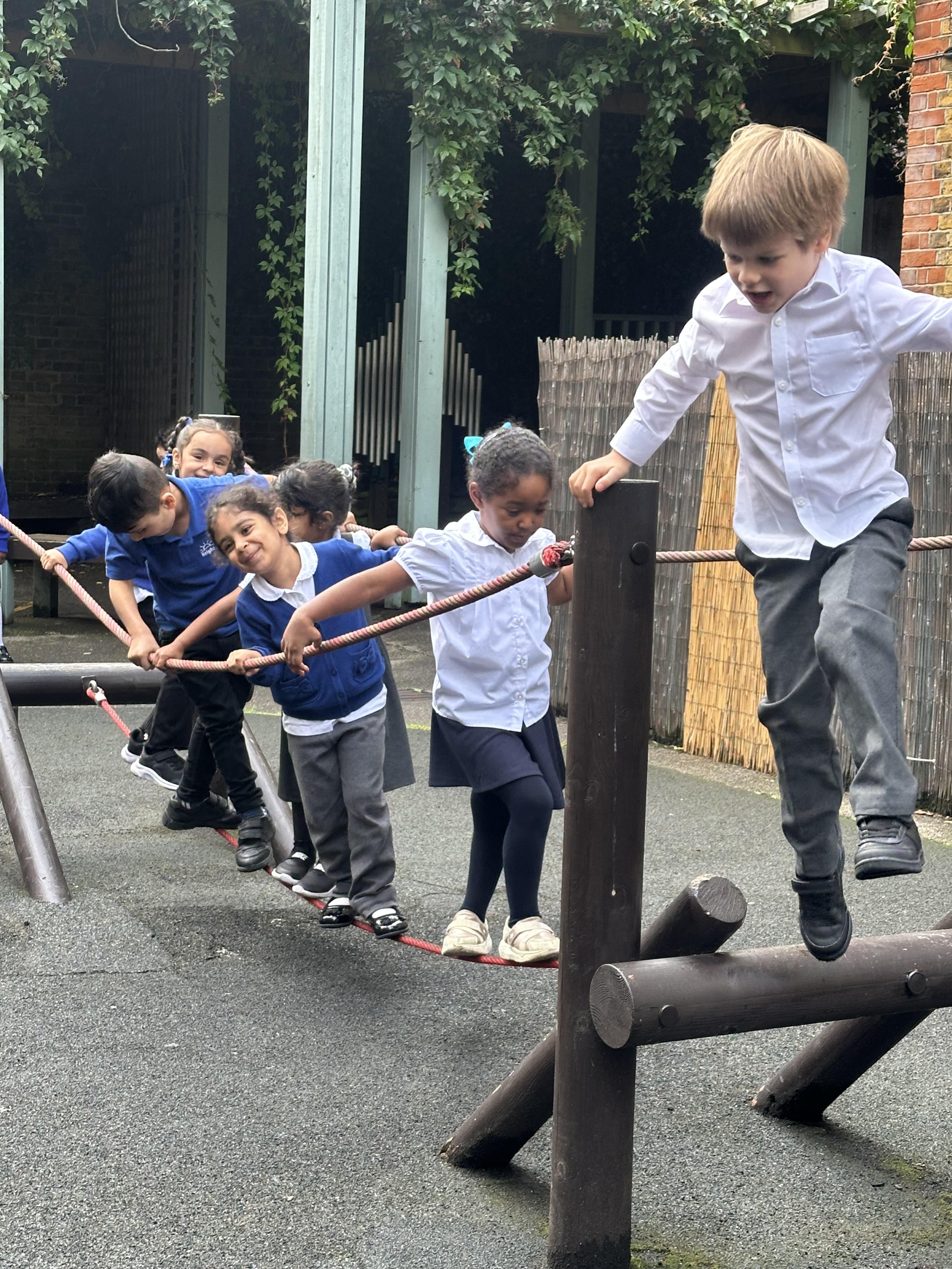 The children in Reception have had a fantastic start to the school year! They have been incredibly brave, showing great confidence as they settled into their new environment and adapted to new routines with ease. One of the highlights of their day is exploring the Trim Trail, which they absolutely love; it's been wonderful to see their enthusiasm and energy shine through!