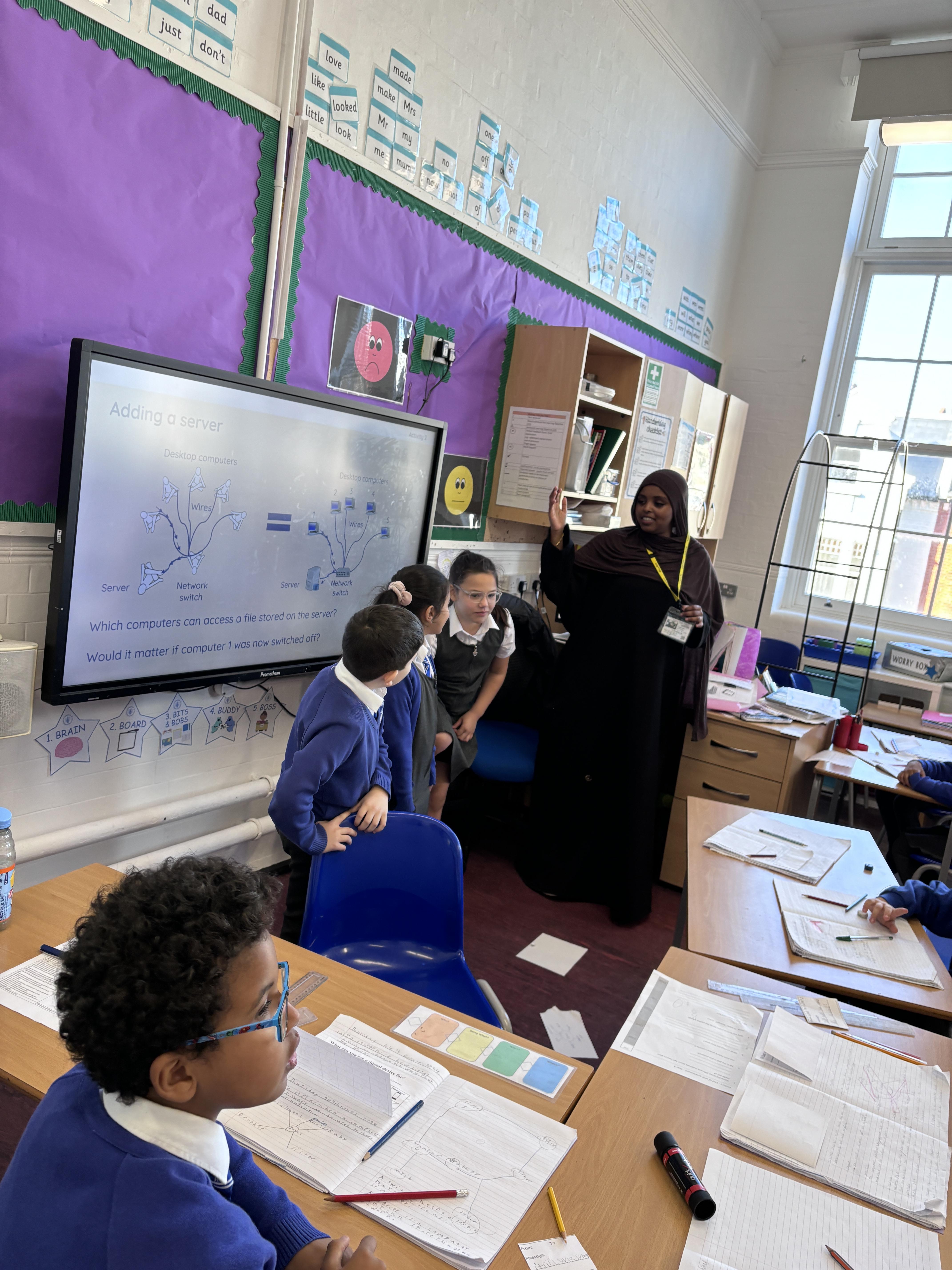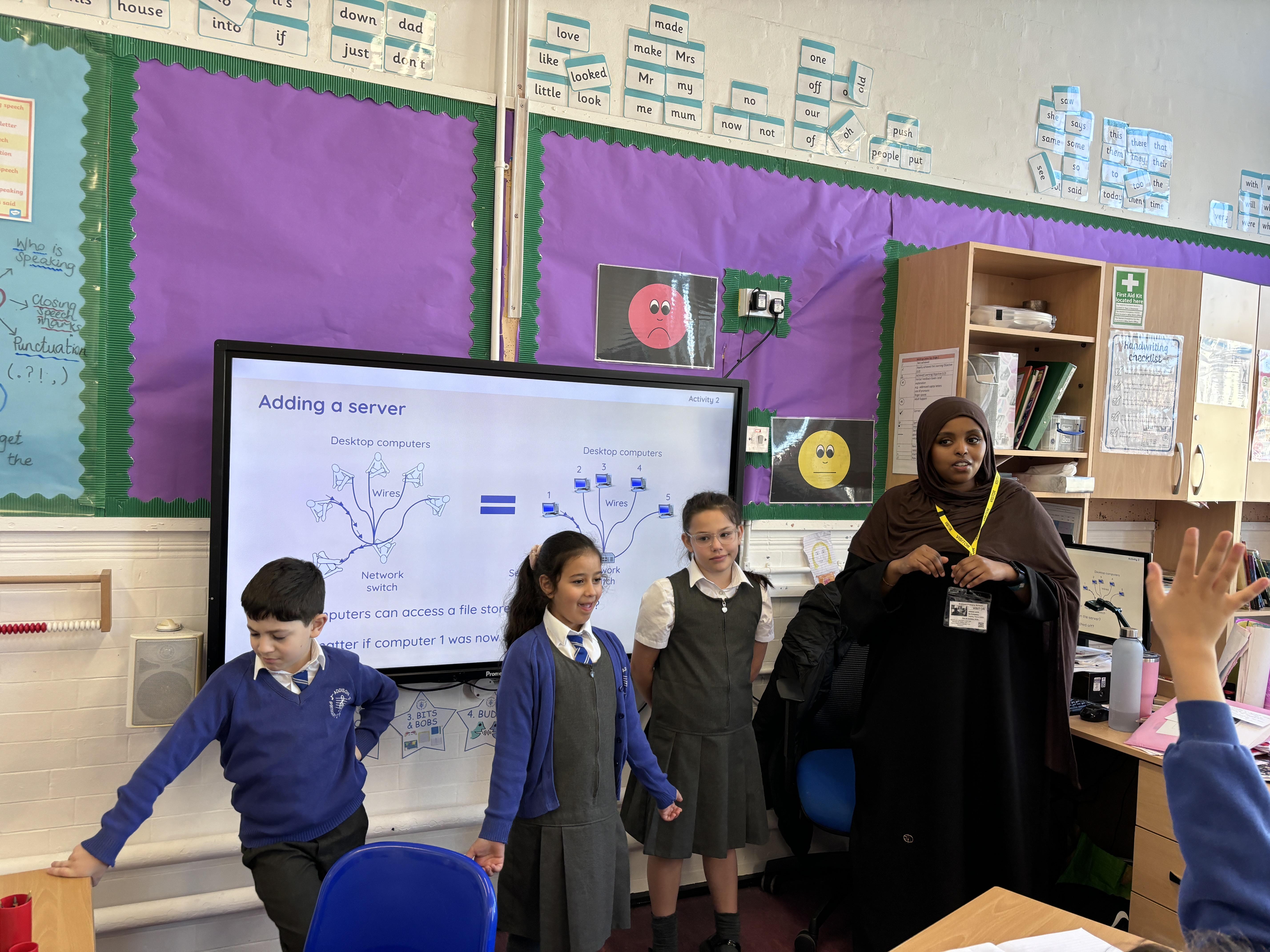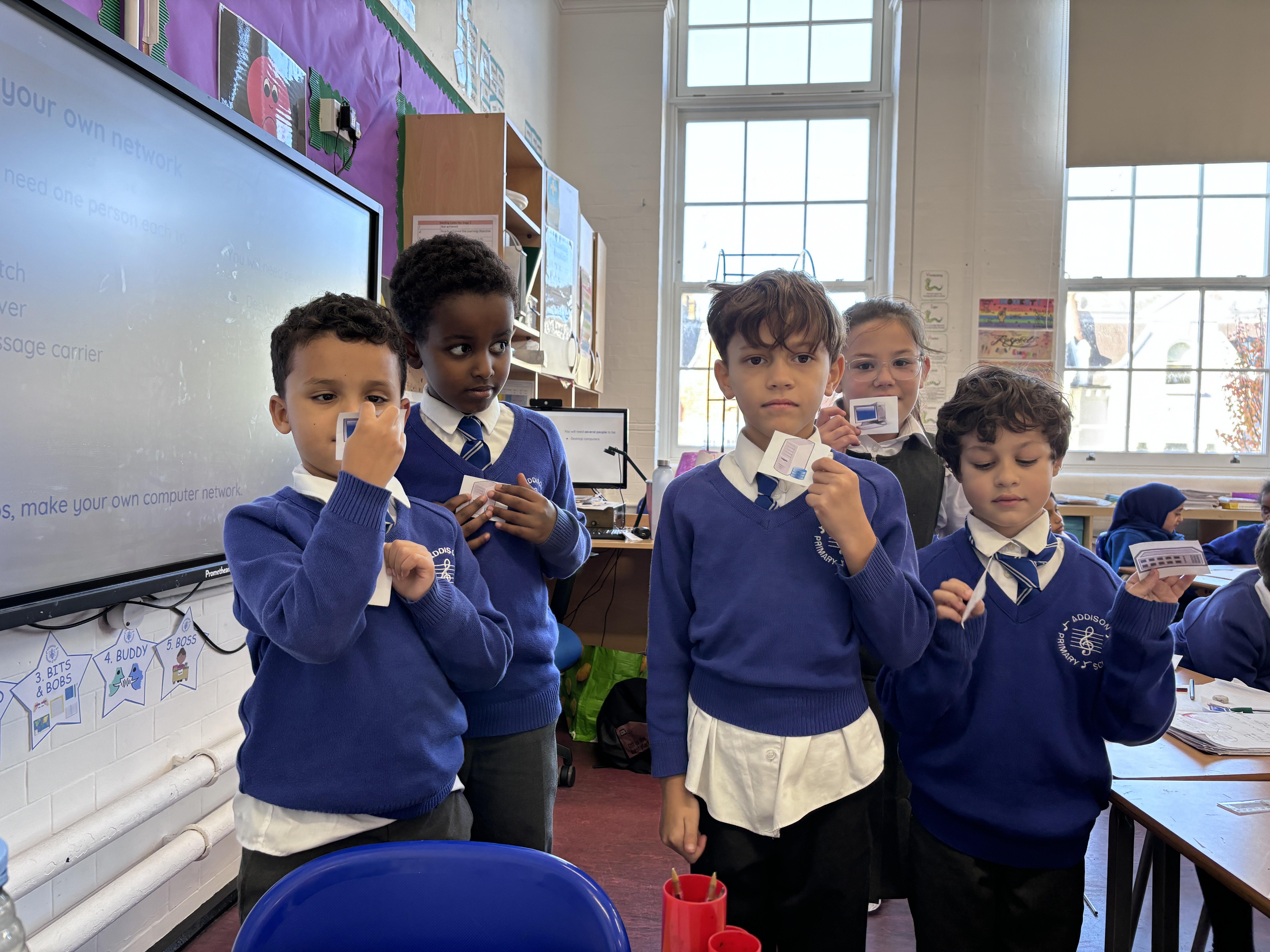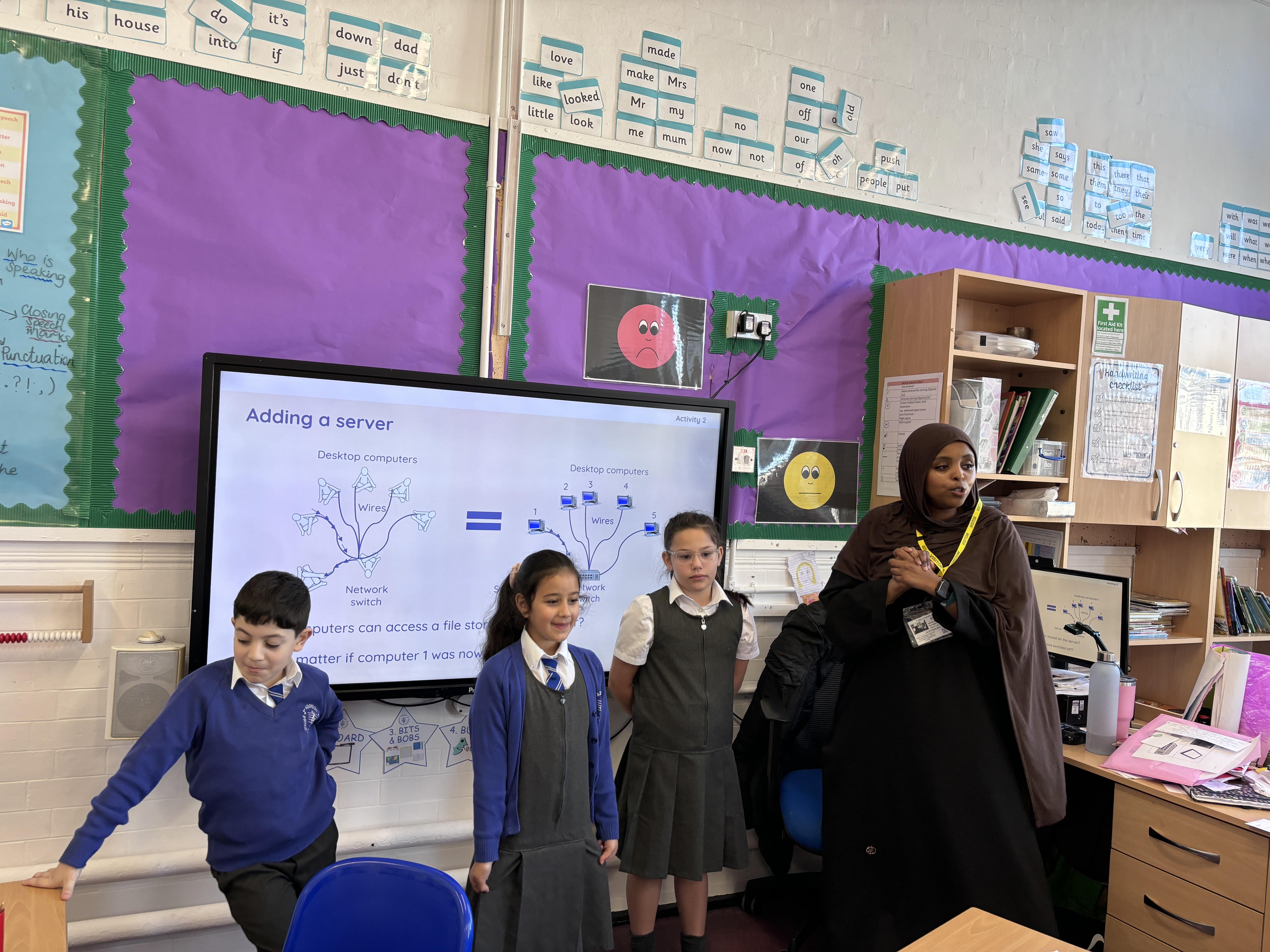 Computing Day-We had a computing day where we learnt about different networks and servers and how they connect. We used Chinese whispers to show how information can travel and created our own network of people.
