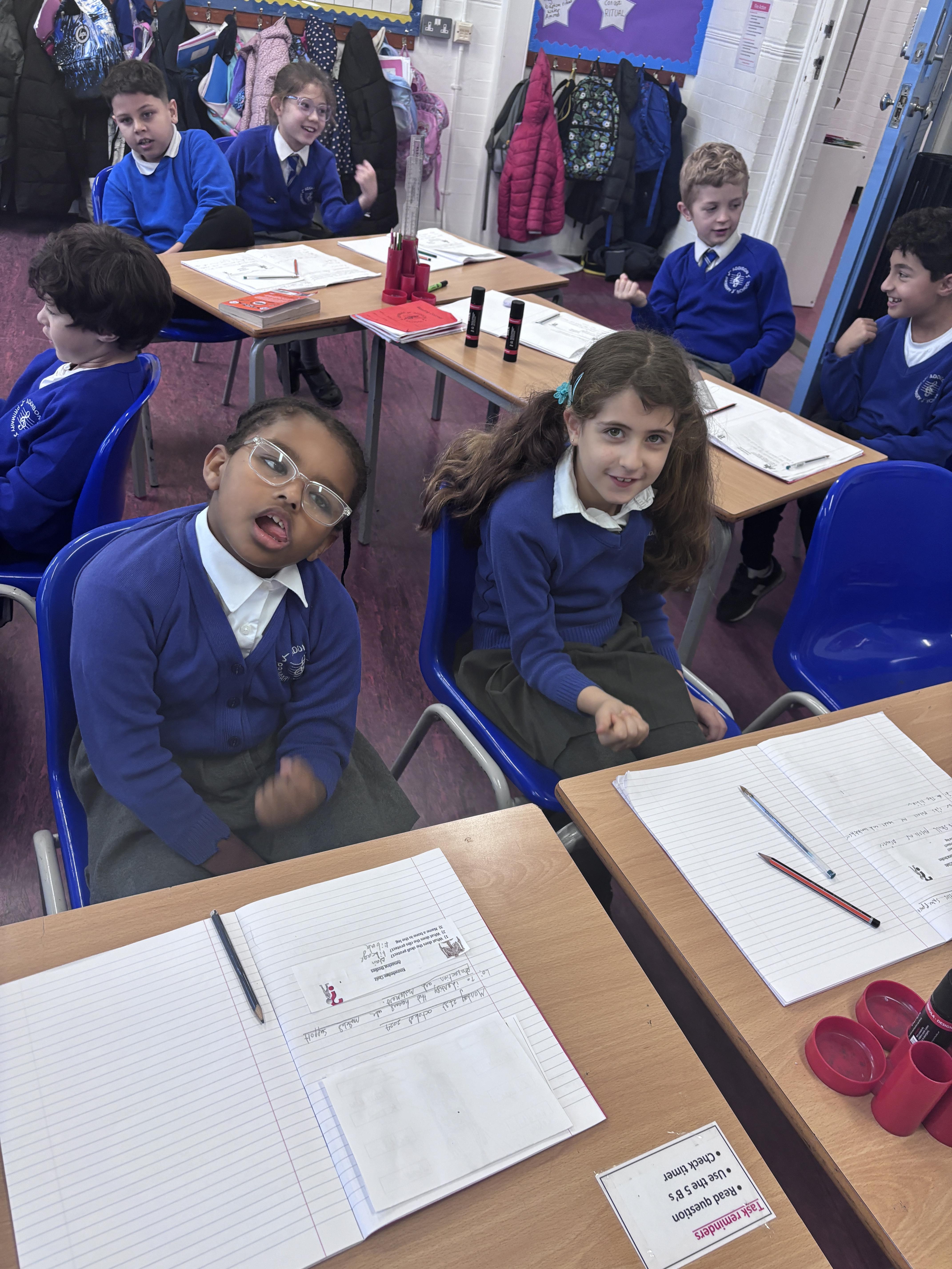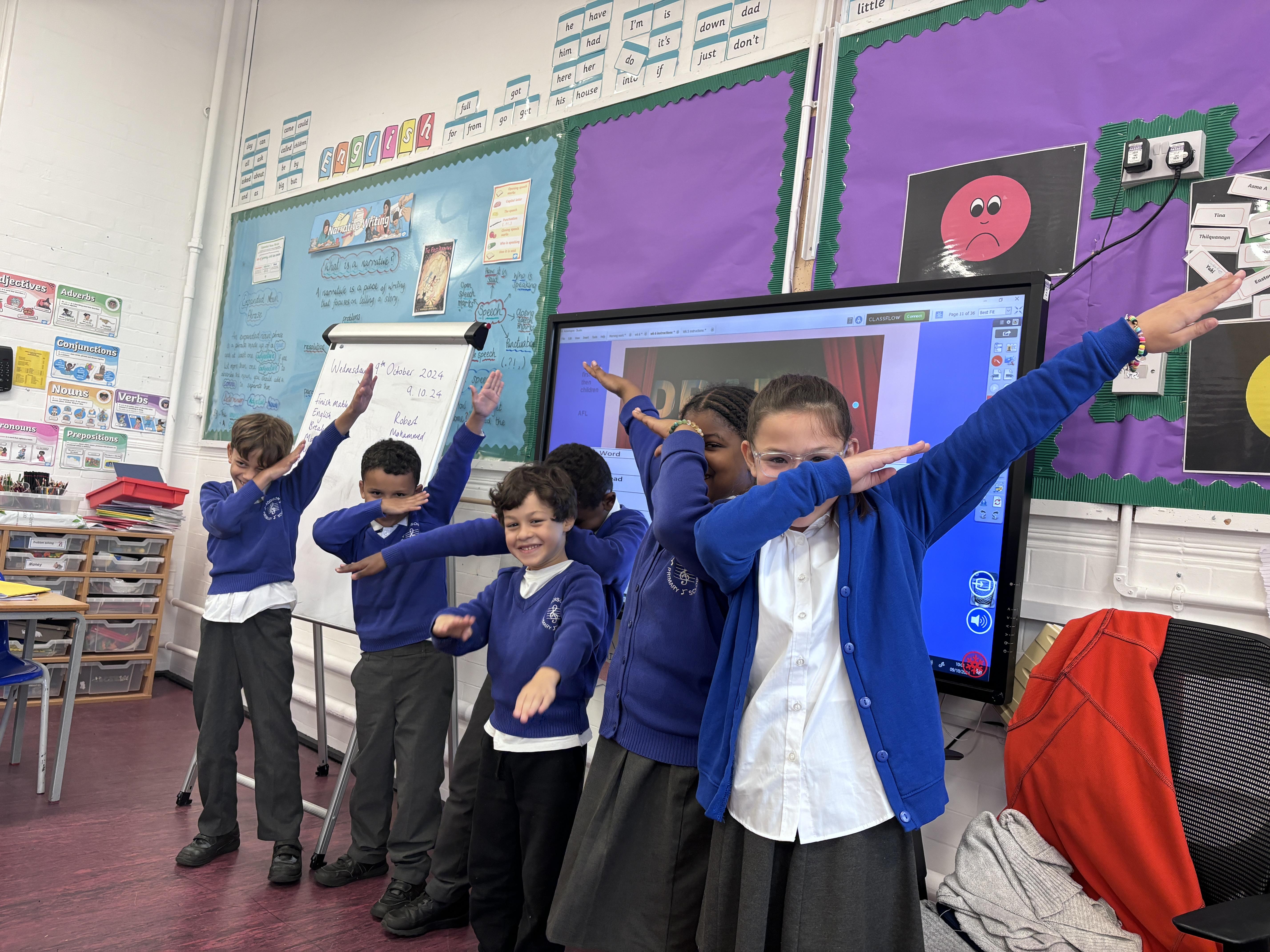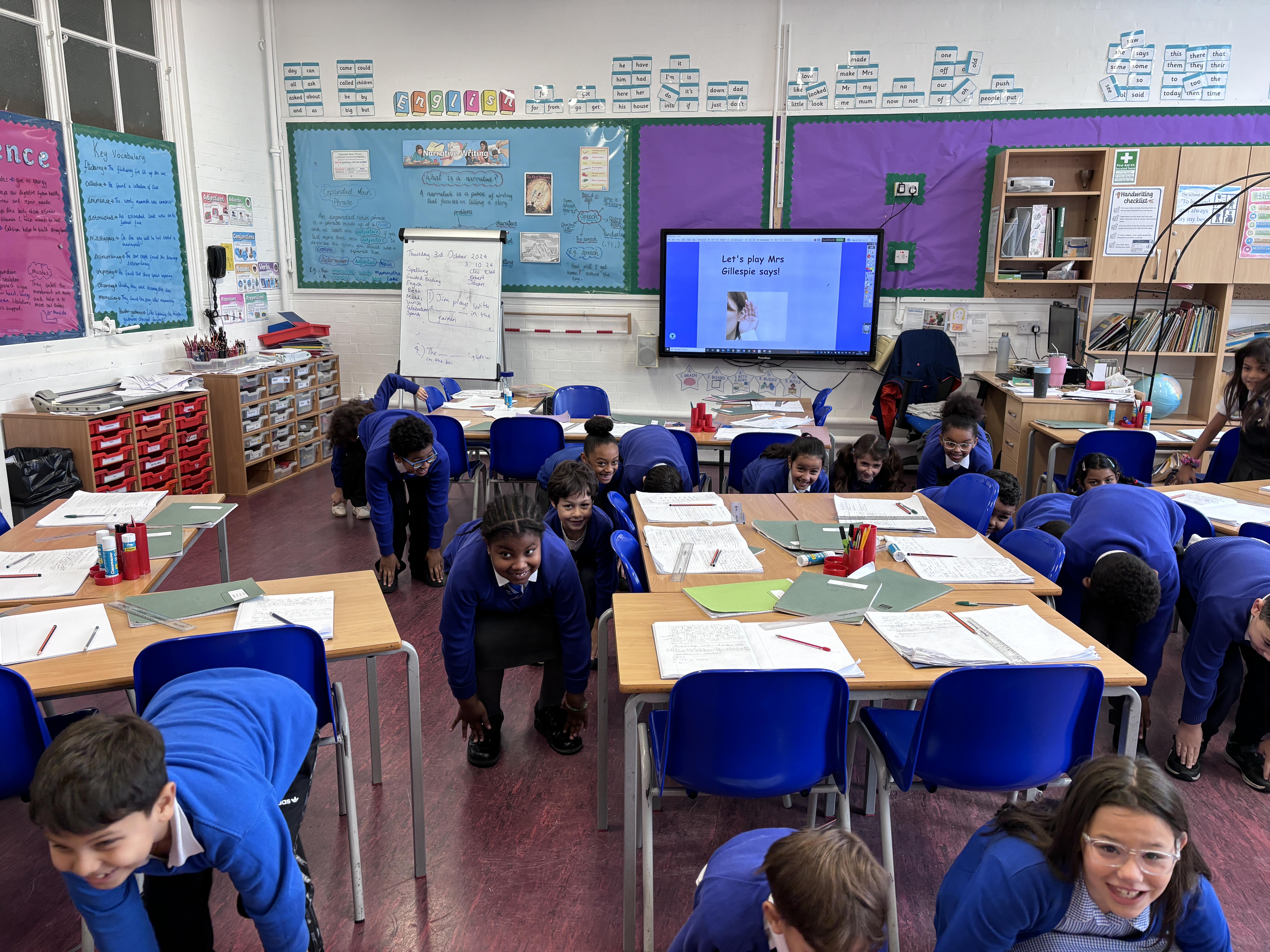 English-We have been learning about instructions, we played a game of 'Mrs Gillespie Says' to practise listening to different commands.