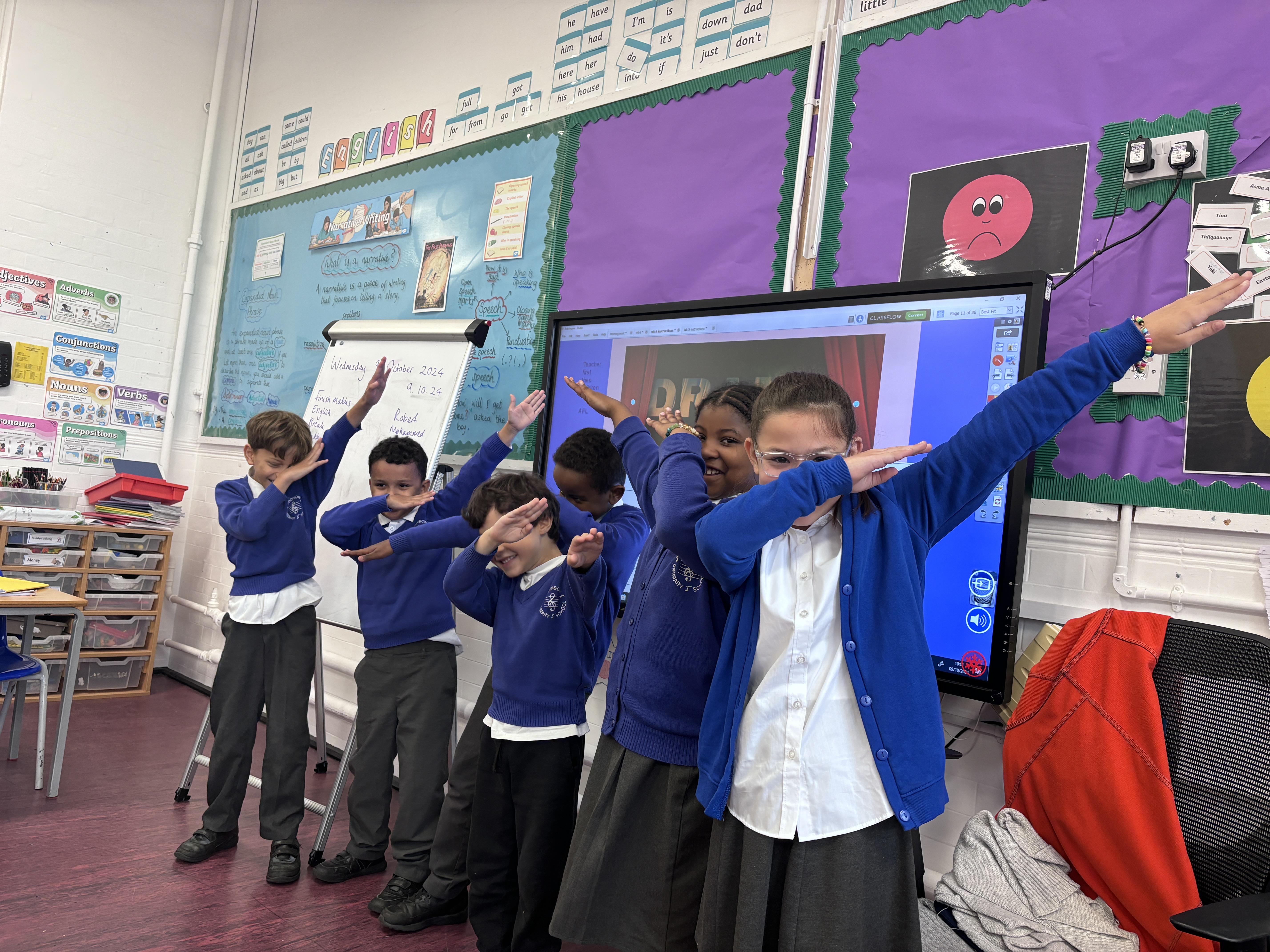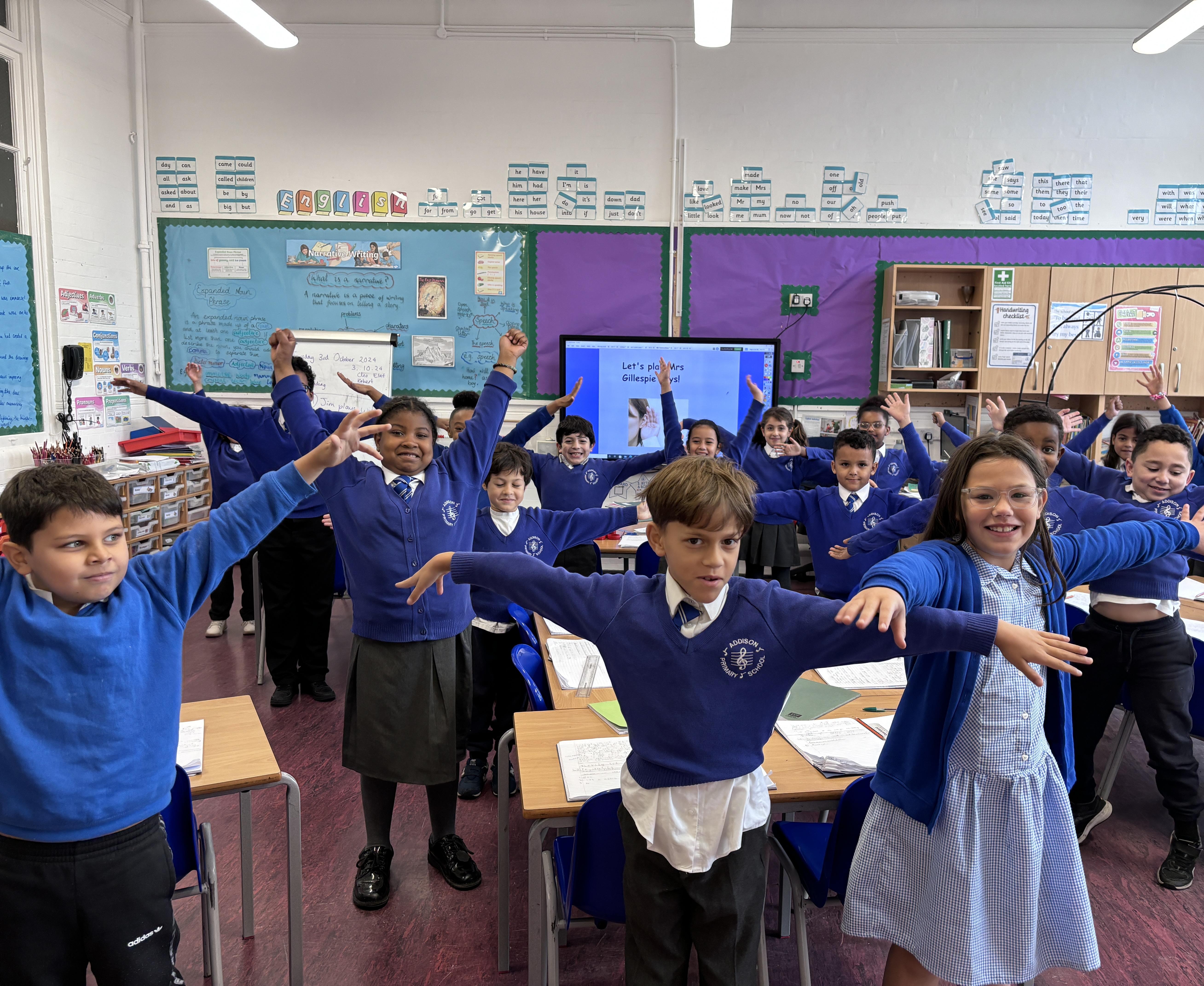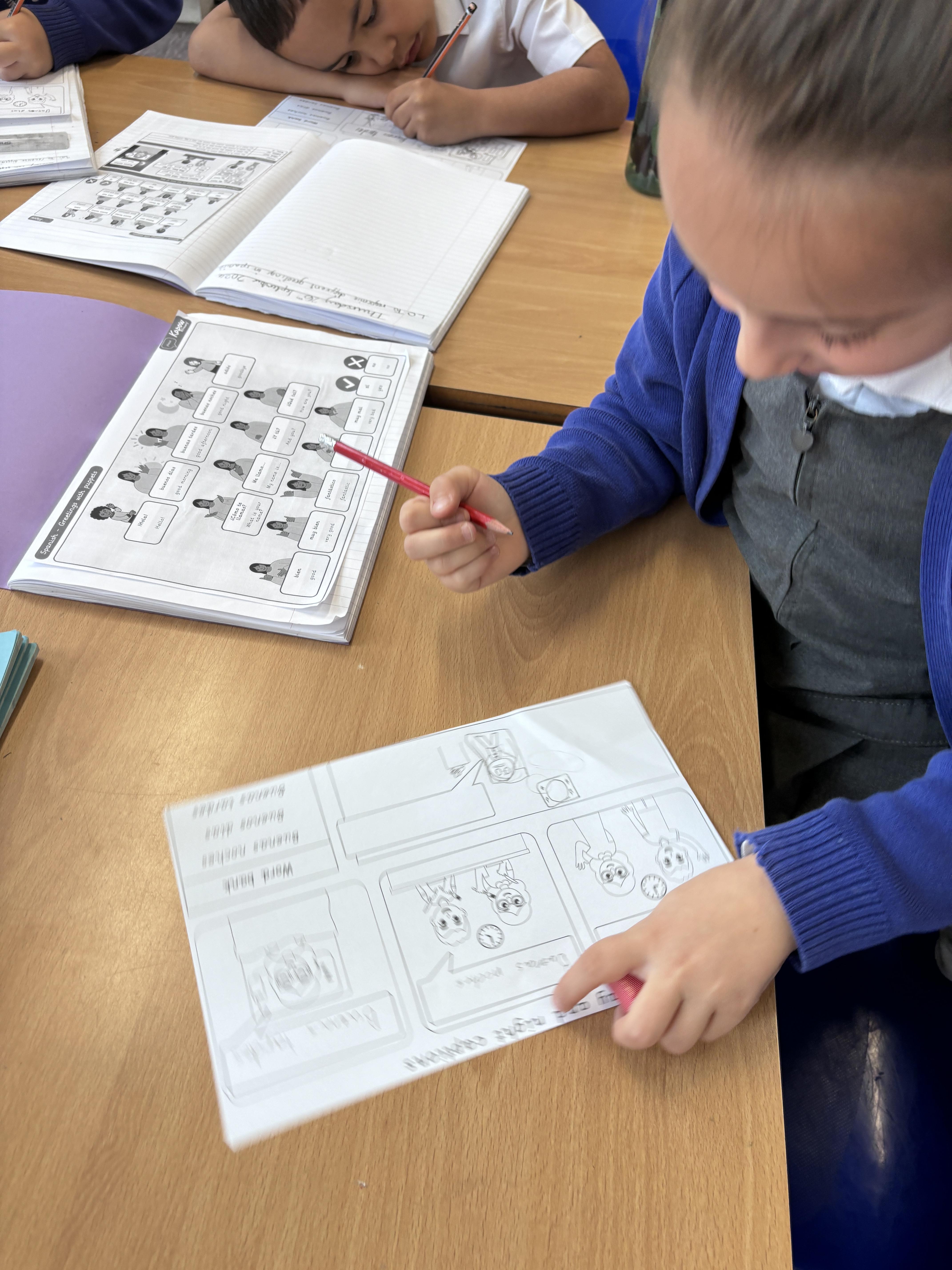 English-We have been learning about instructions, we played a game of 'Mrs Gillespie Says' to practise listening to different commands.