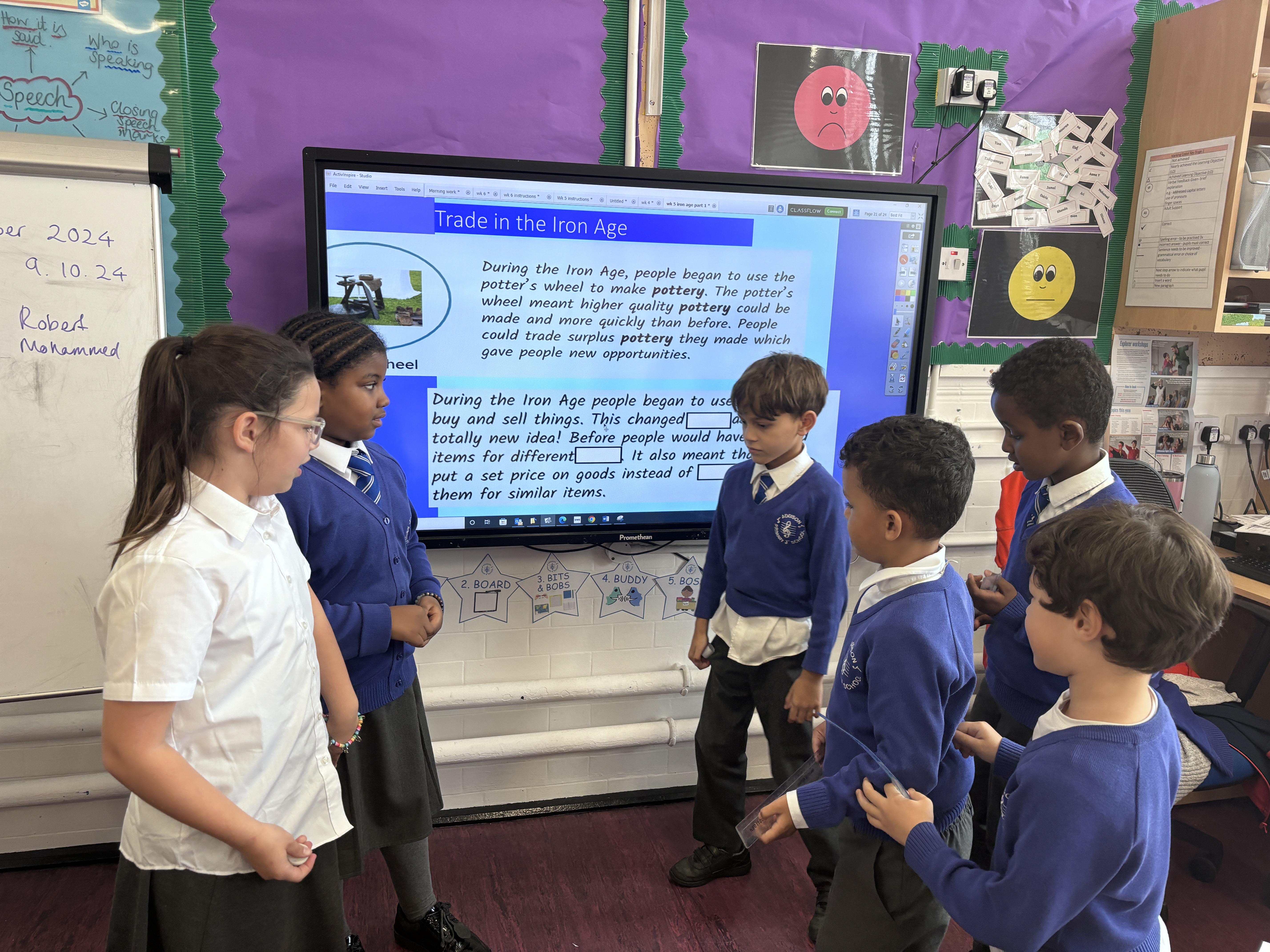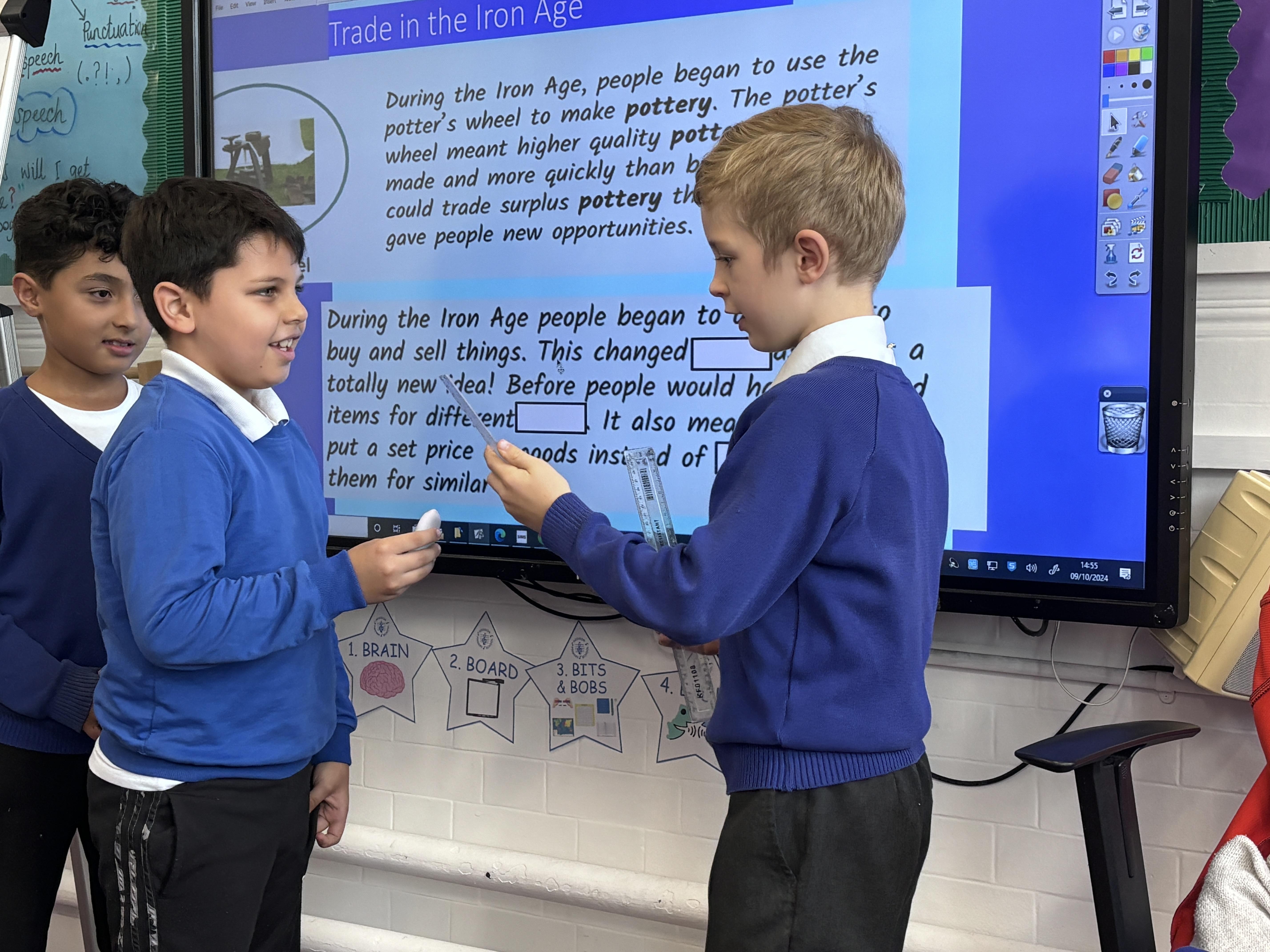 History-In History, we have been learning about the Iron age and the importance of trade. We acted out how trade was used and how people would barter for goods.