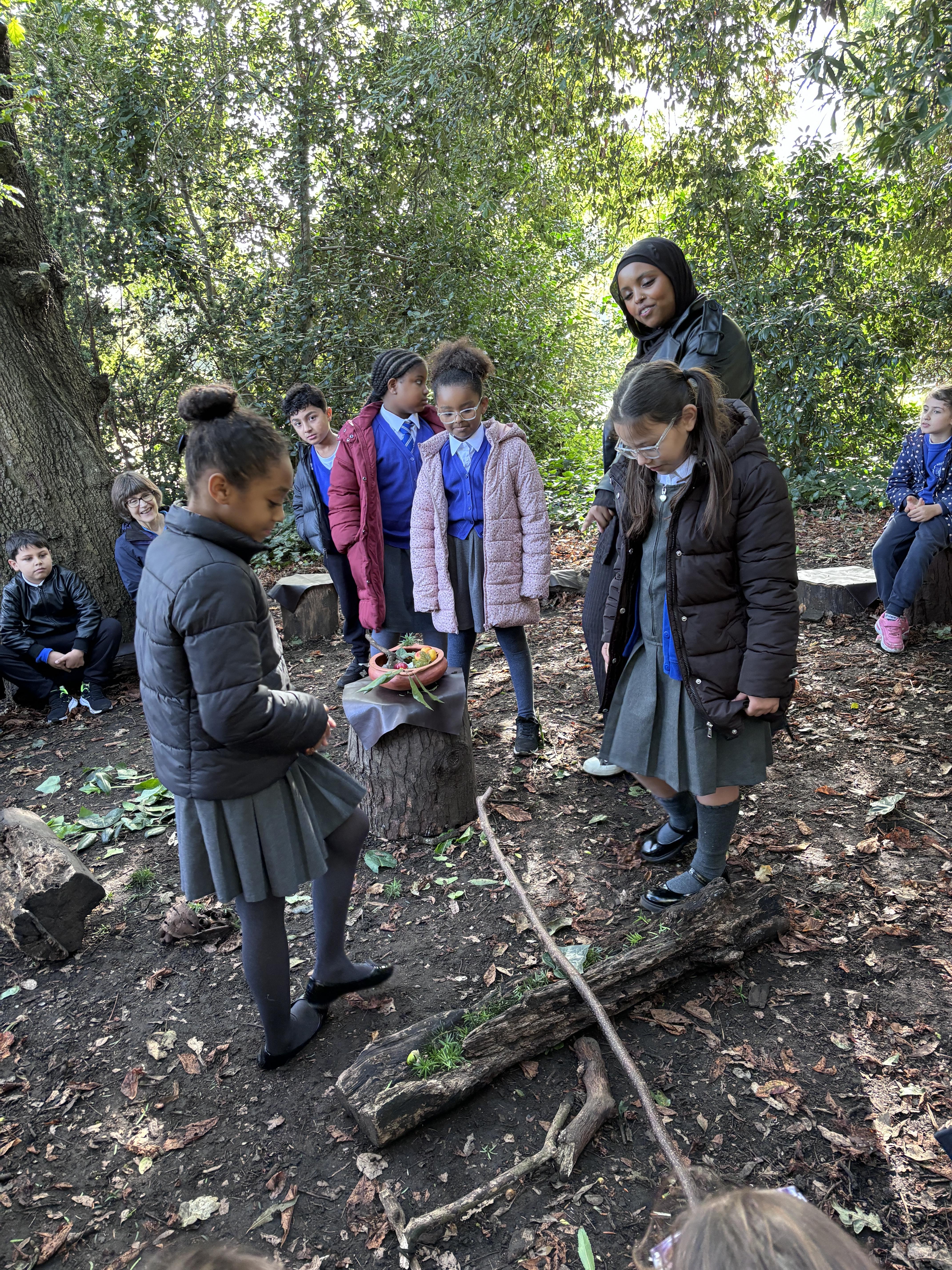 Fulham Palace-We had a workshop at Fulham Palace to learn more about the Stone Age. We looked at different artefacts from that time period and discussed what they were used for. Then, we went outside and got to build a shelter, a trap, a camp and forage for food just like Stone Age people.