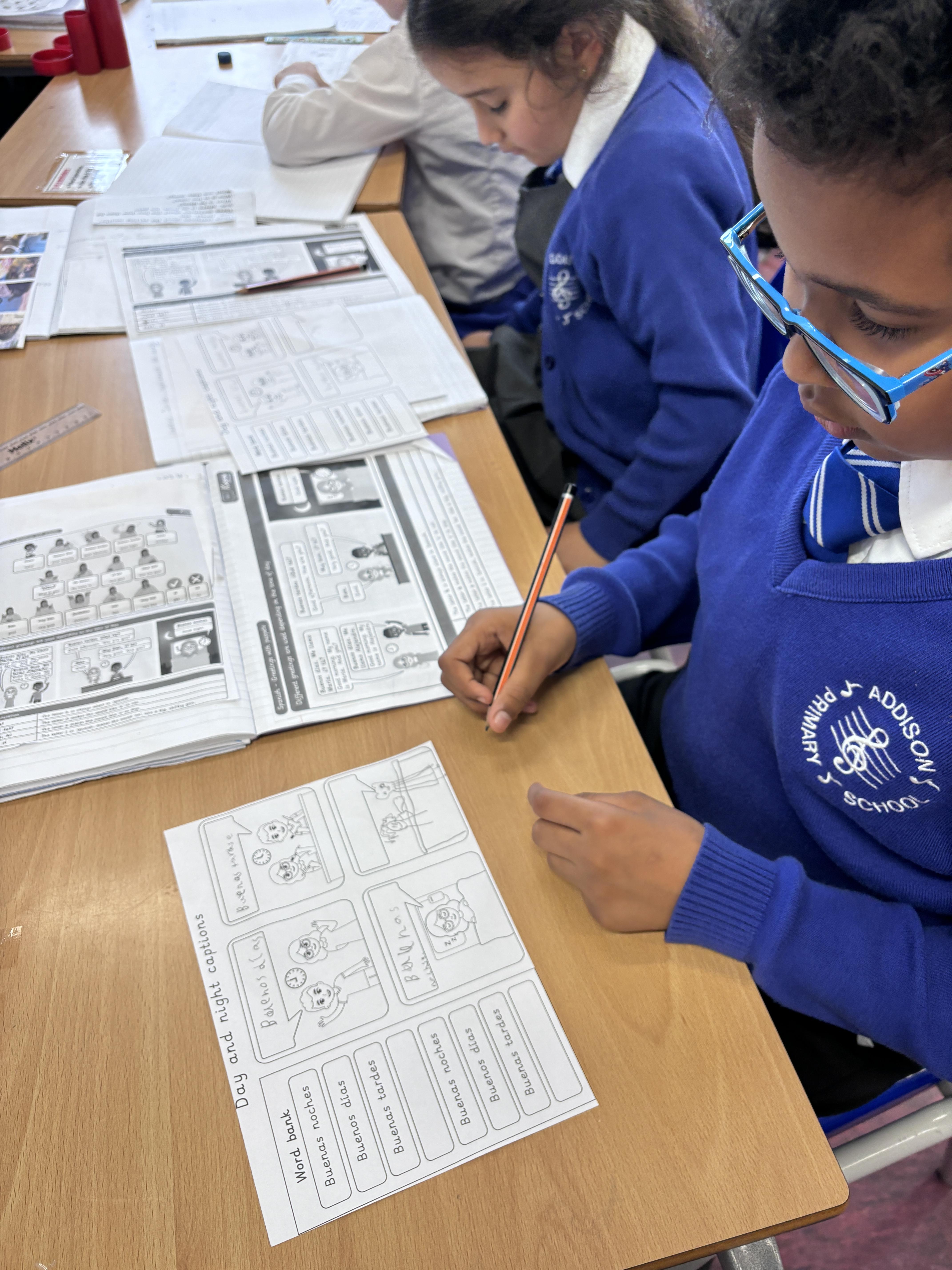 Spanish- We have been learning different greetings in Spanish for good morning, good afternoon and good evening. We really enjoy using drama to act out our spanish.