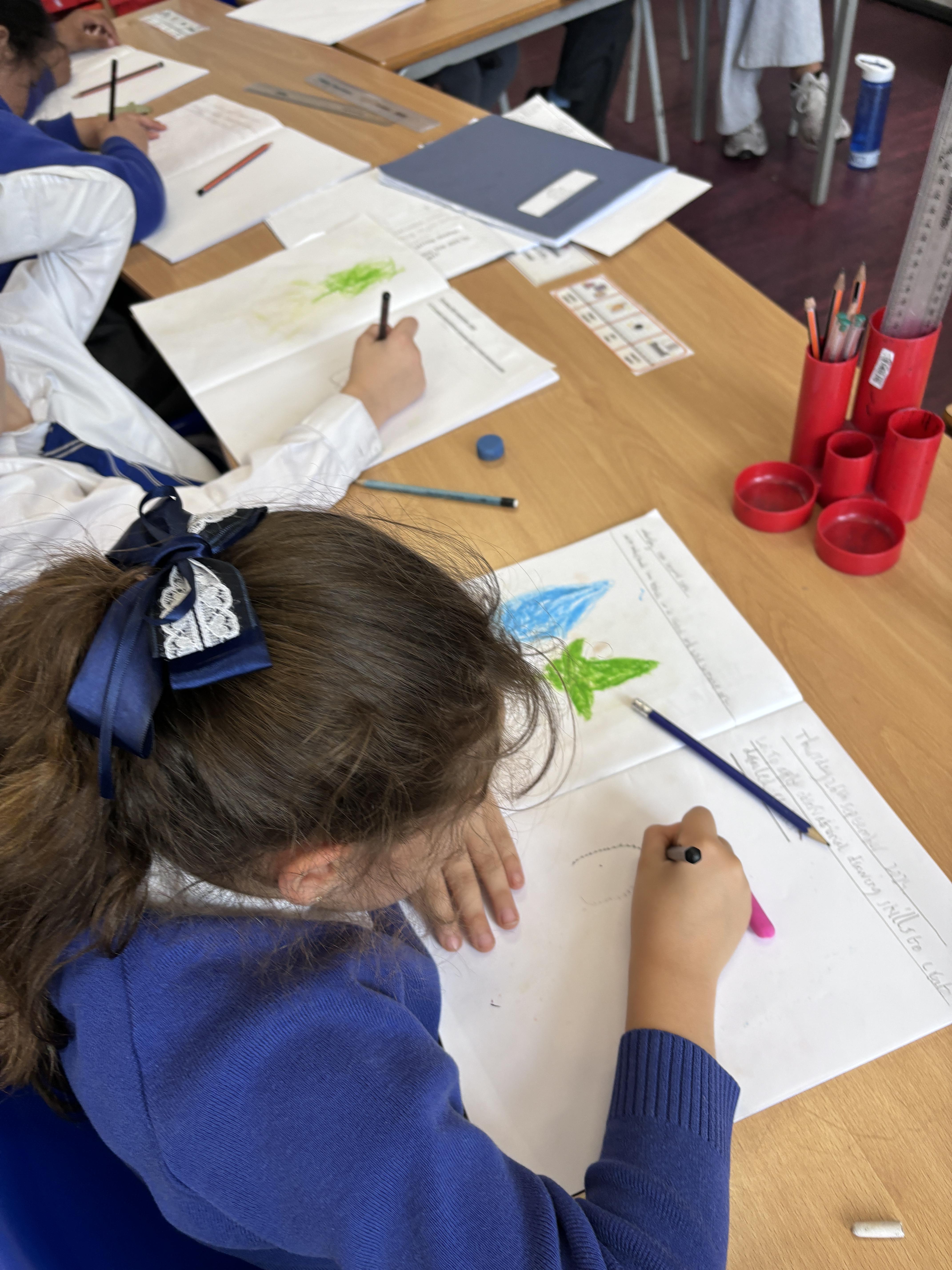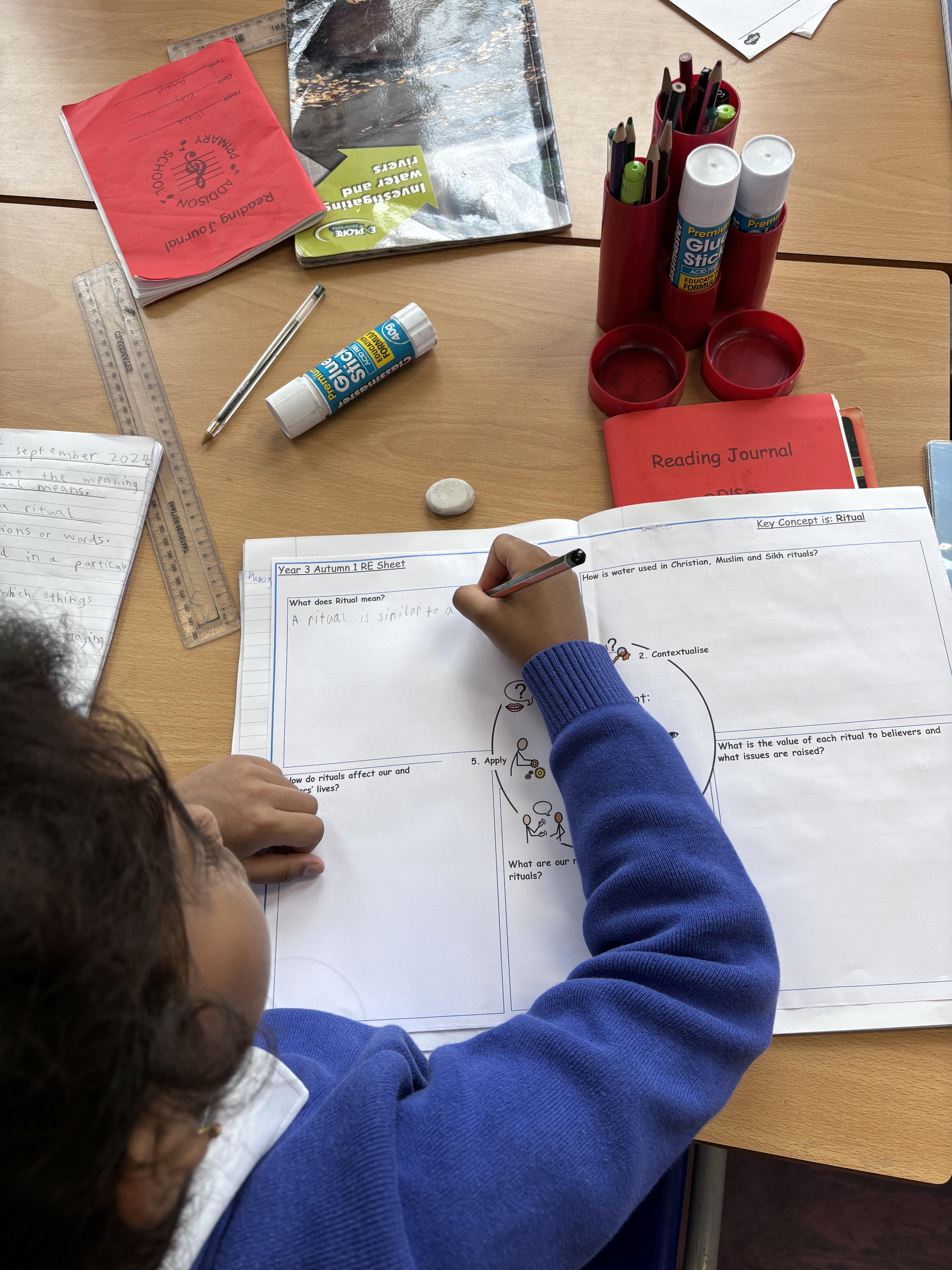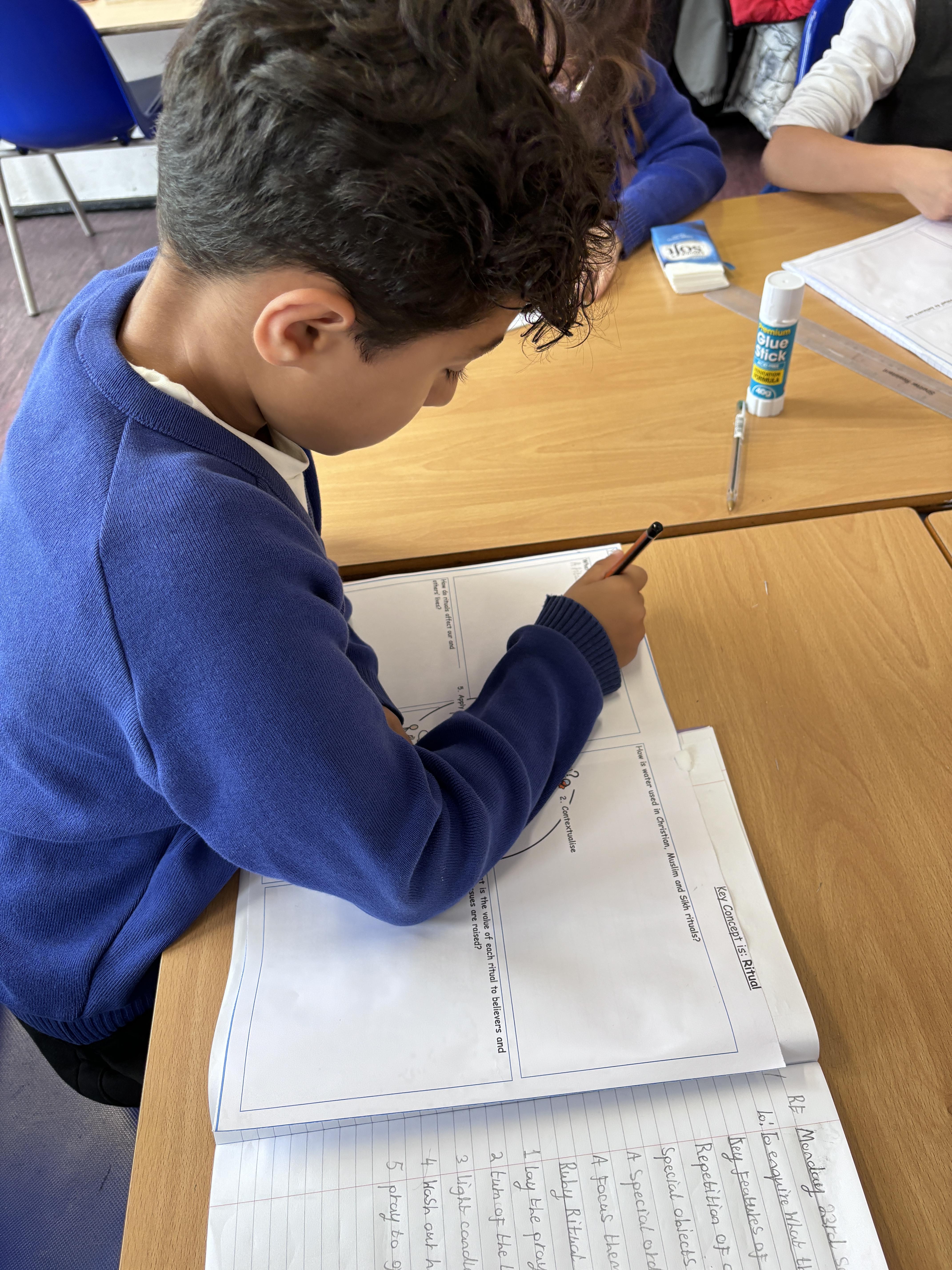RE Day-We had a whole day of learning of RE. Our concept was rituals and we focused on how water is used in rituals for Christians, Muslims and Sikhs. We carried out a range of activities and had Cameron visit to have a discussion about Baptism.