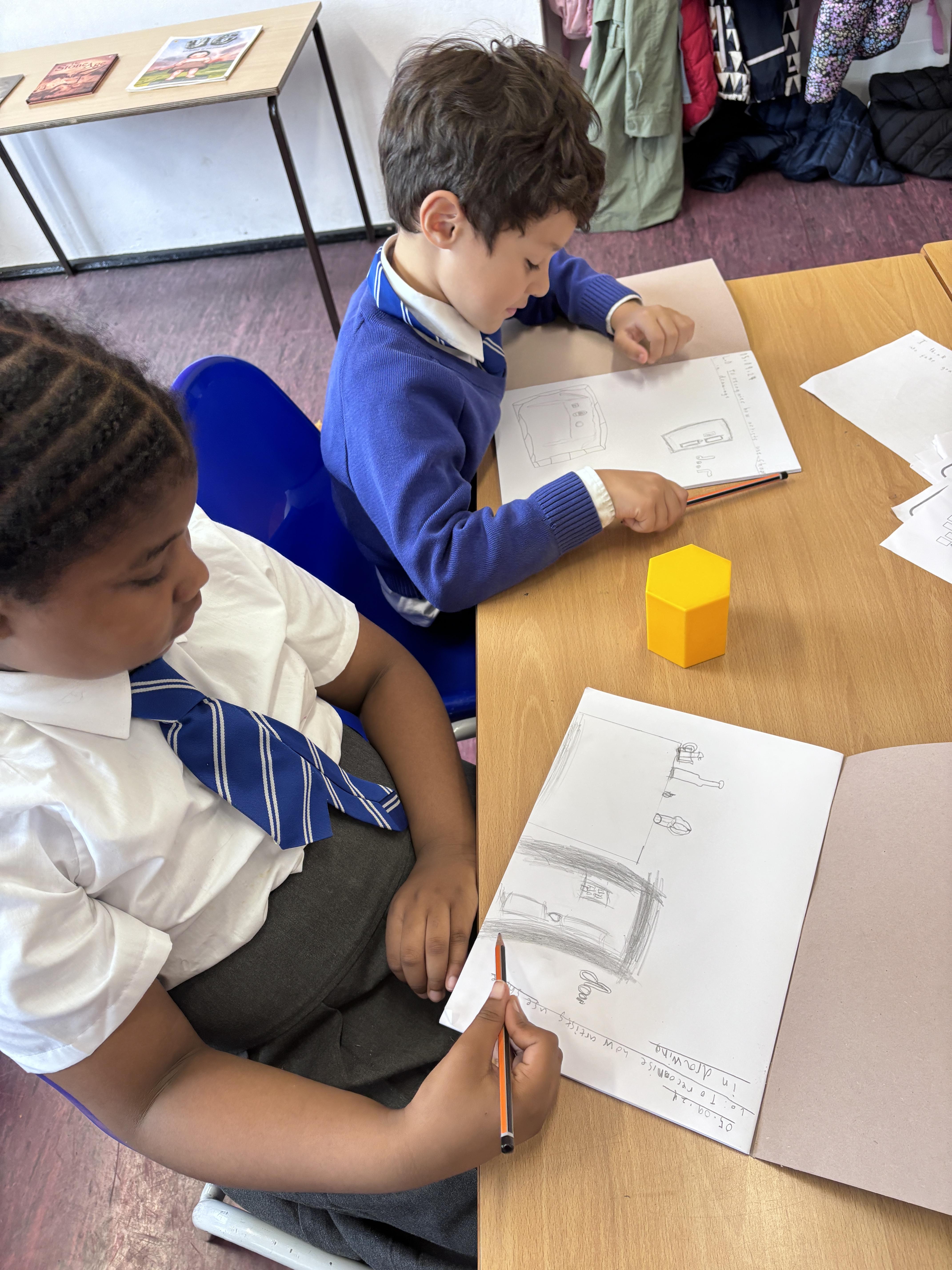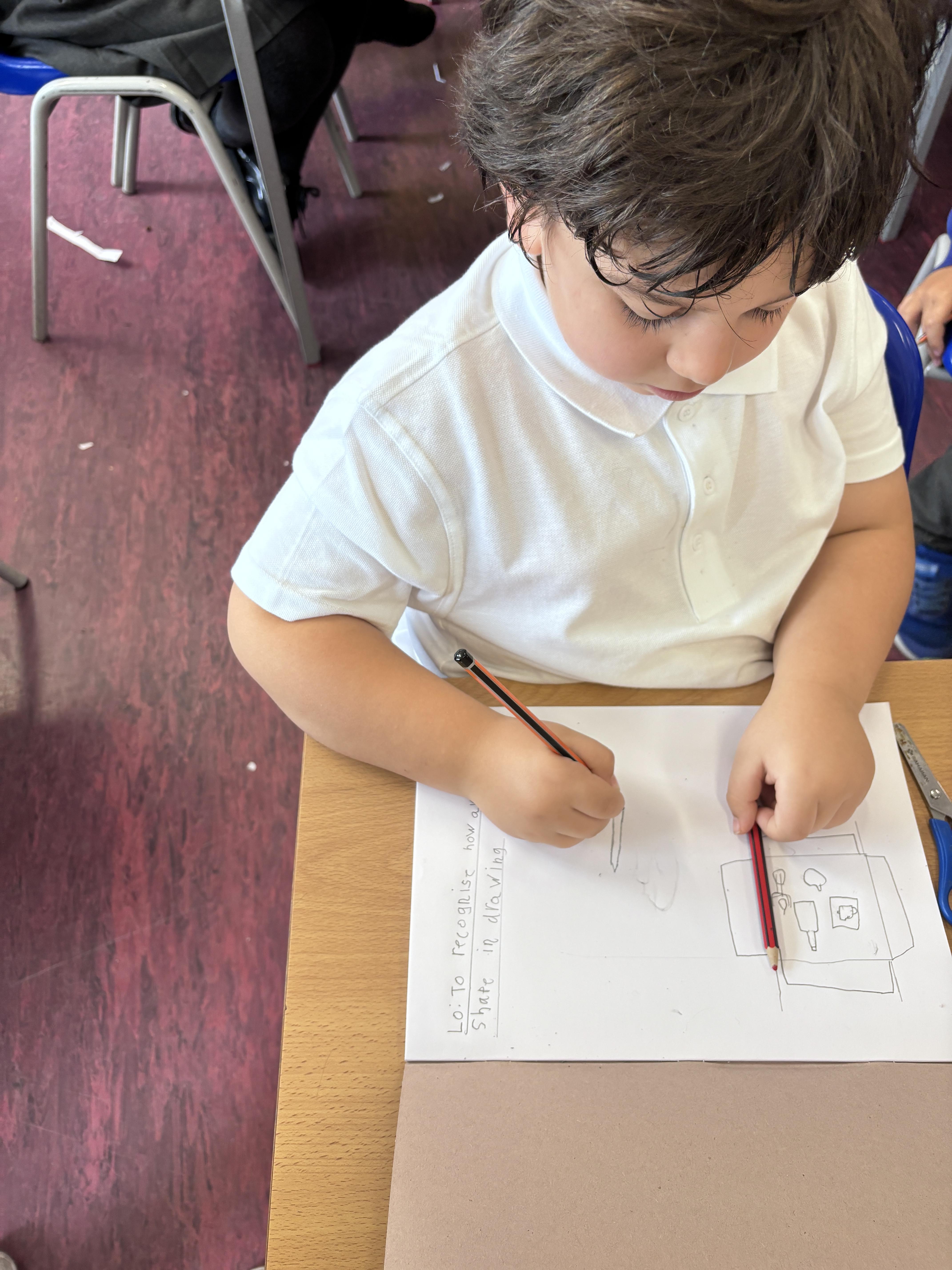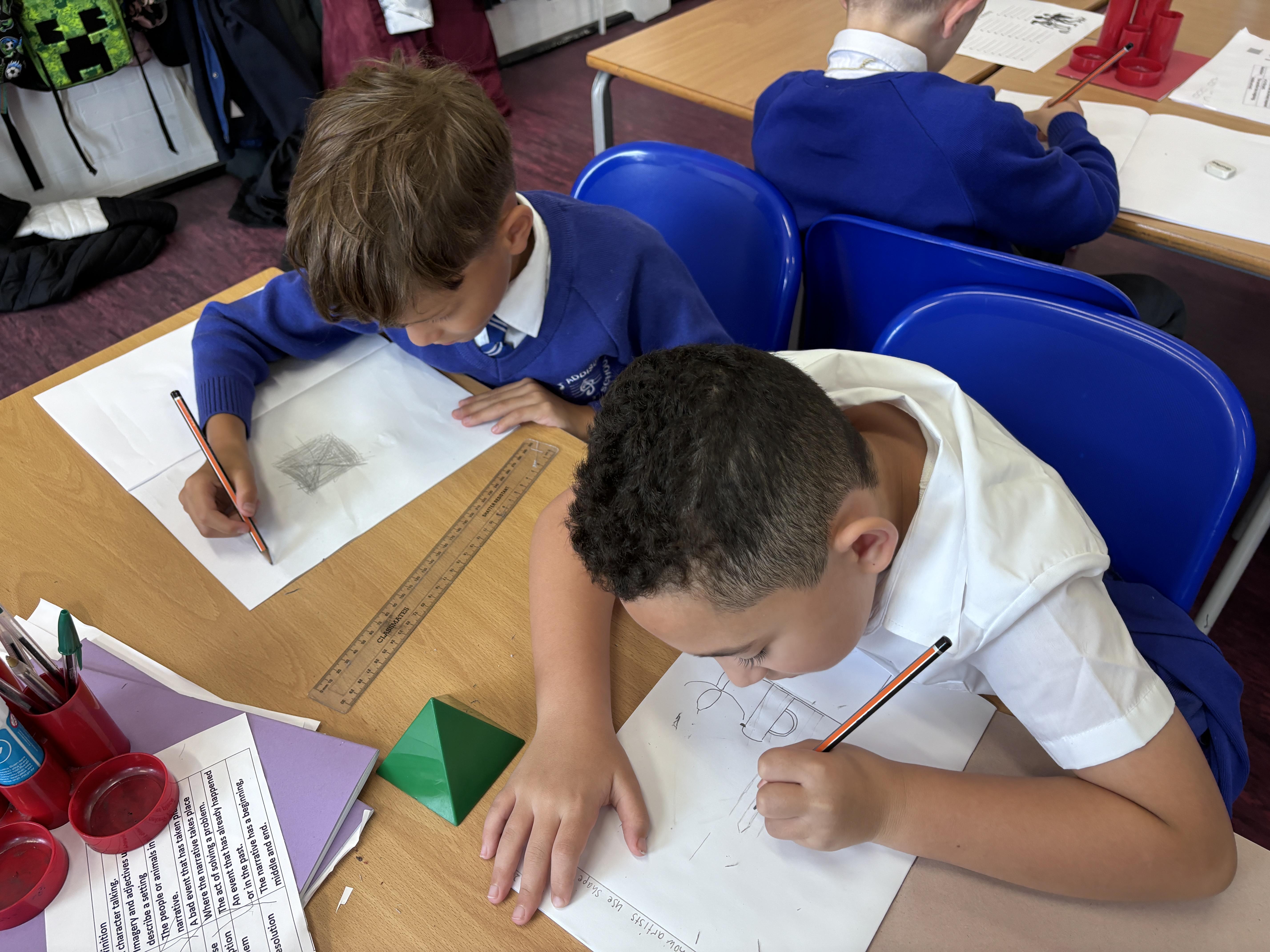Art-In Art we have been practising our sketching skills by focusing on shapes. We had to find different shapes in the classroom and sketch and label them.