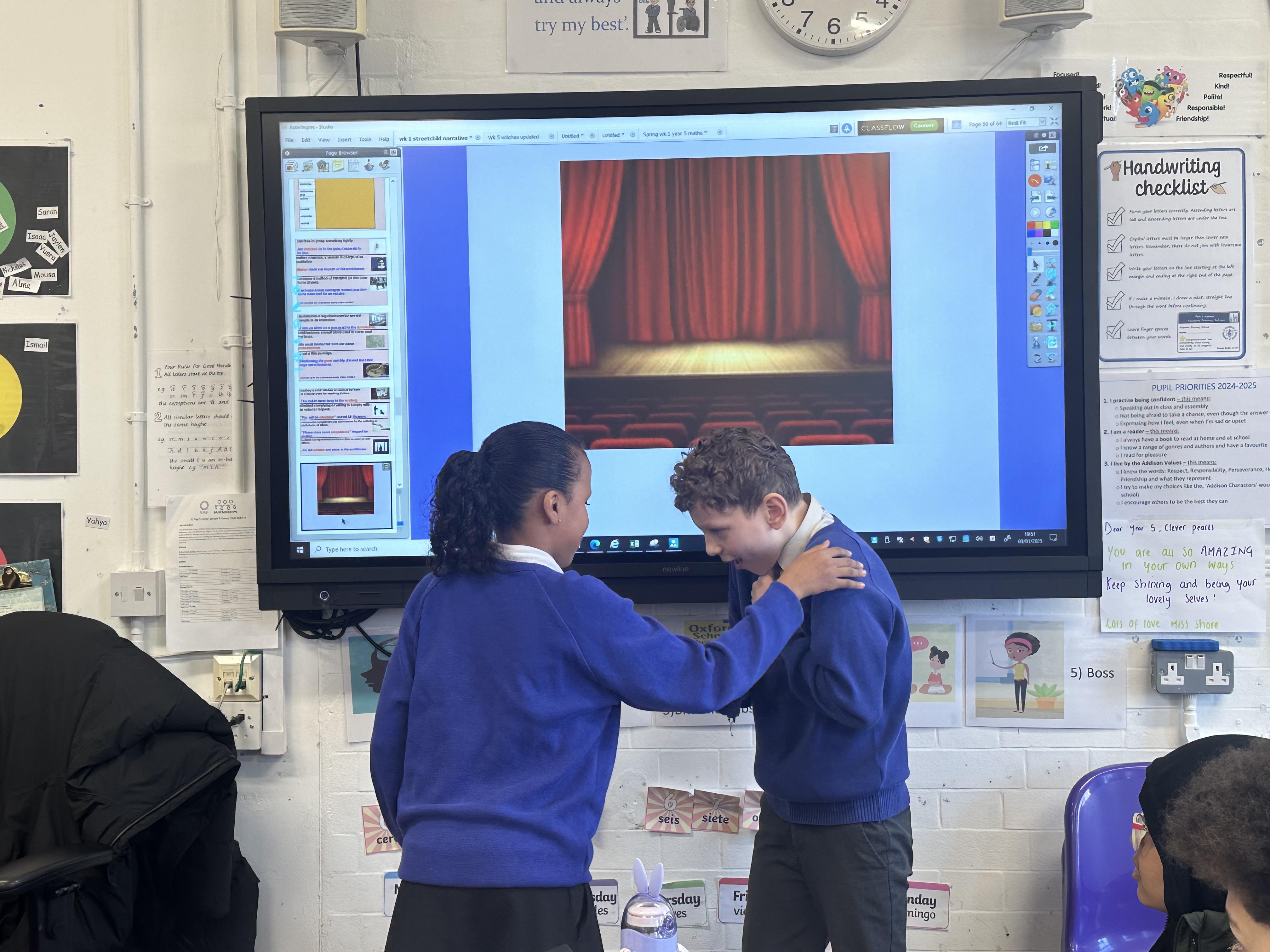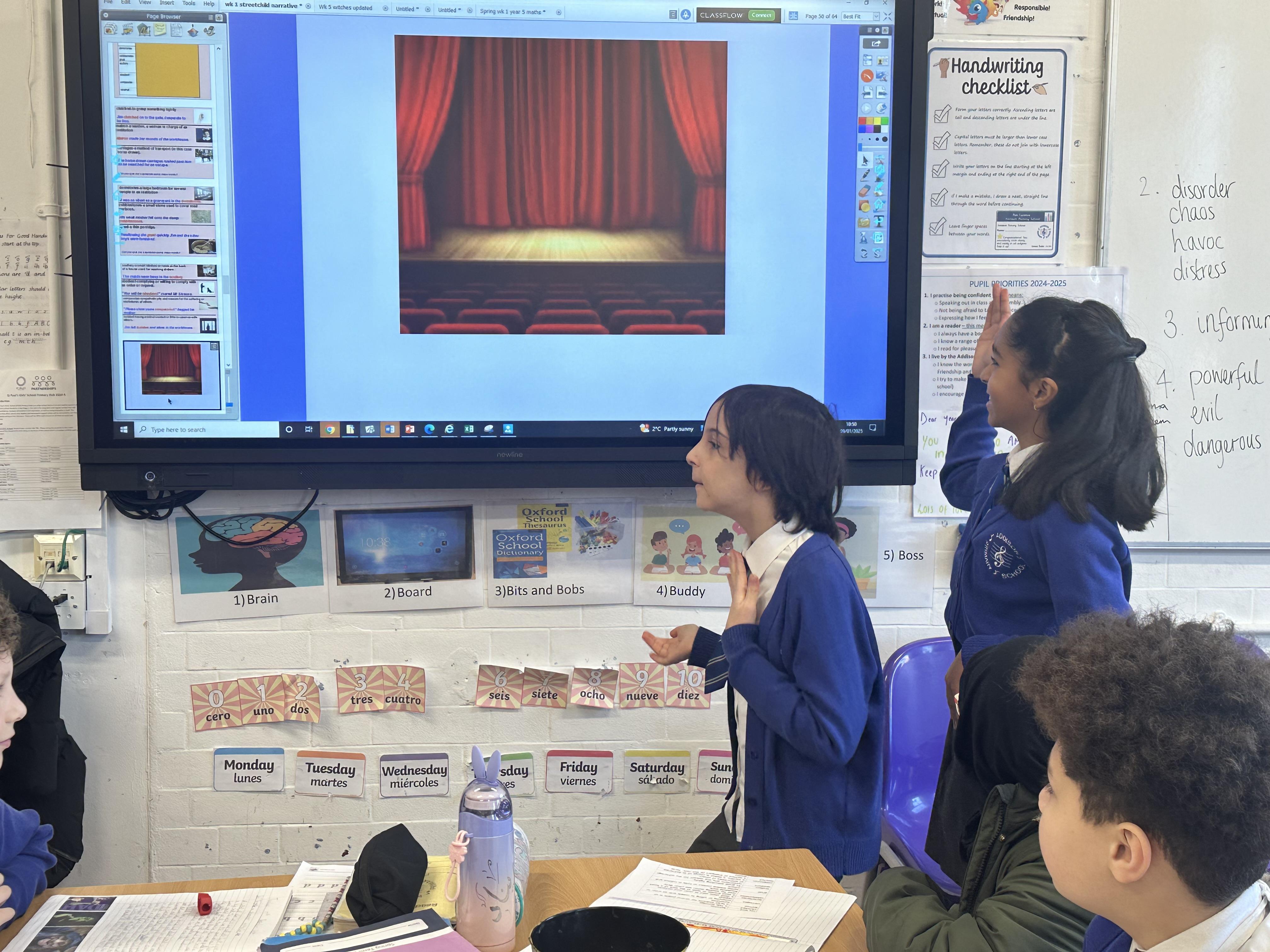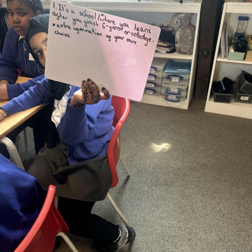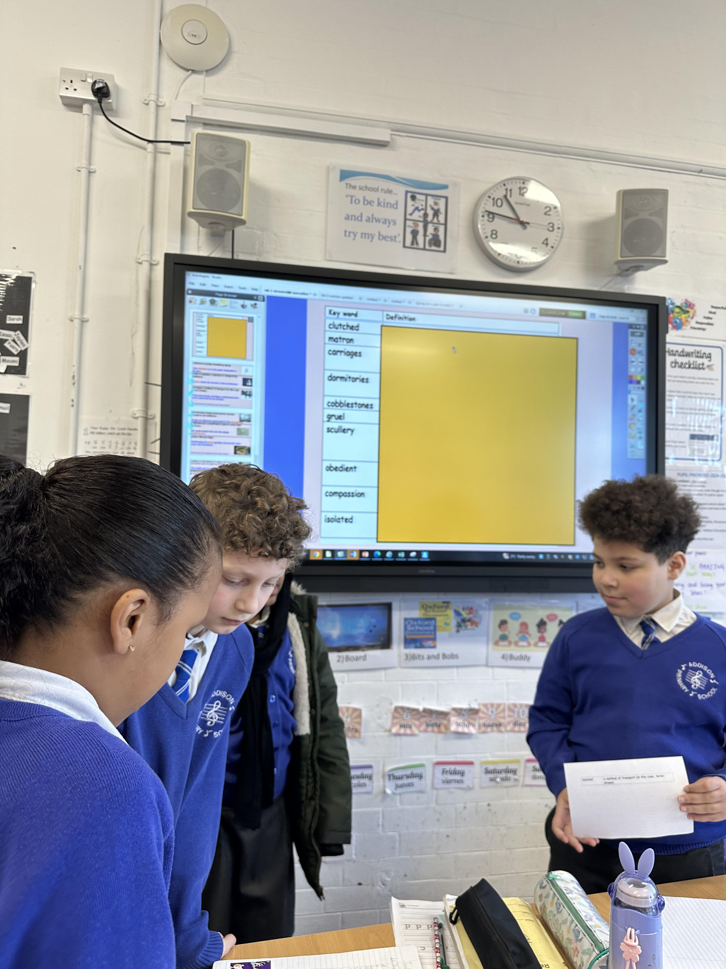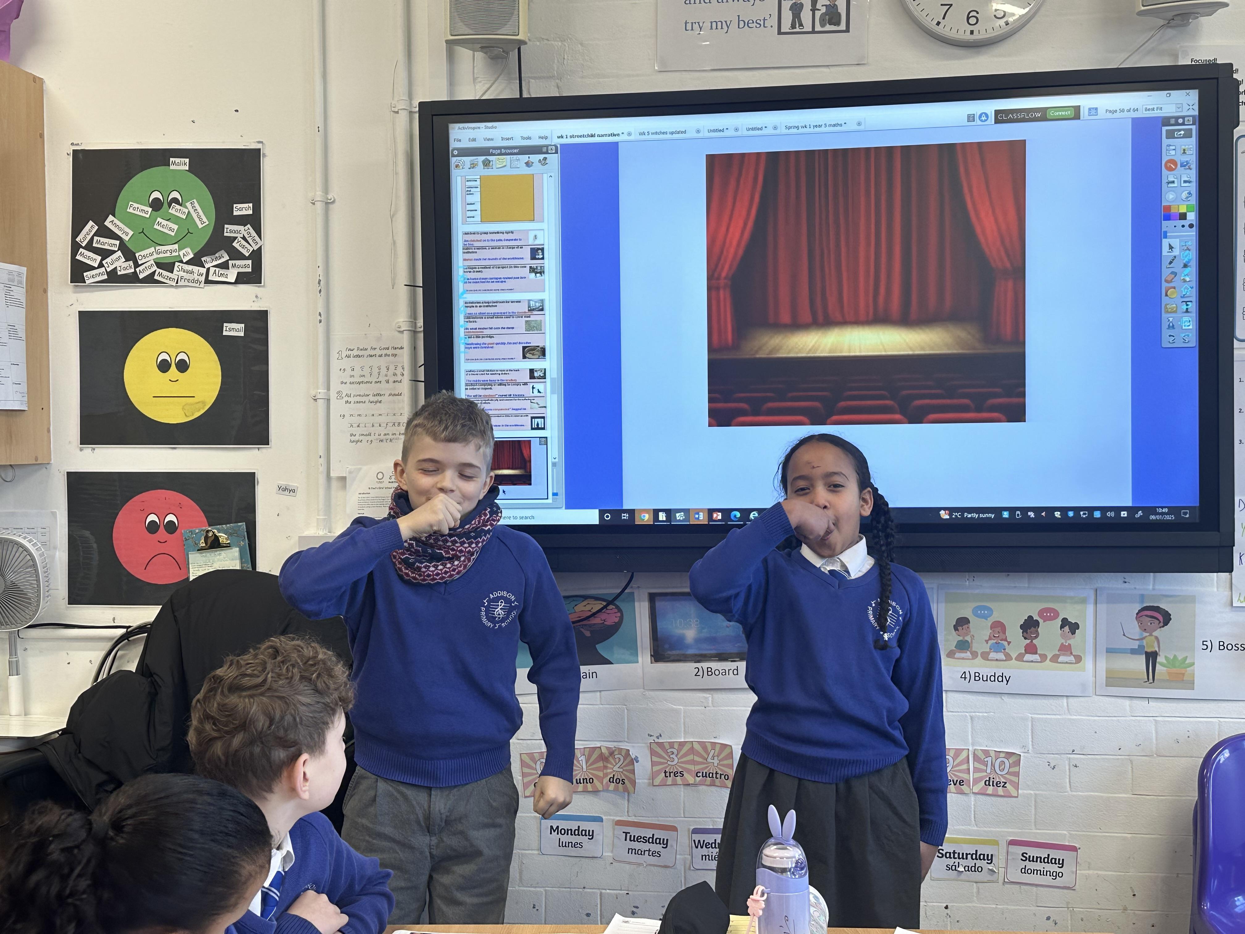 During English, we learnt new vocabulary words for our Victorian setting description. We then acted out our definitions and pupils had to guess what word it related to from our vocabulary list.