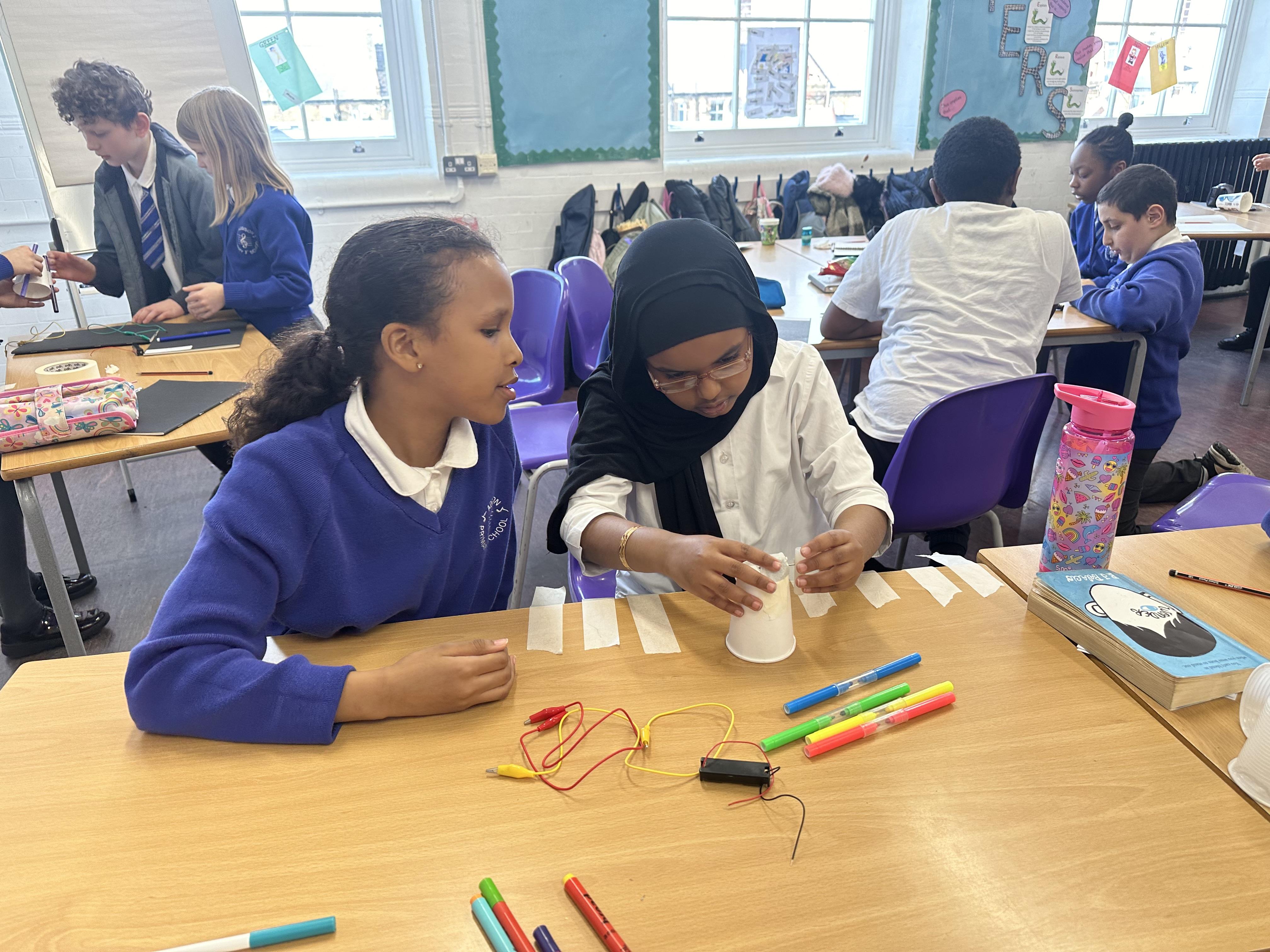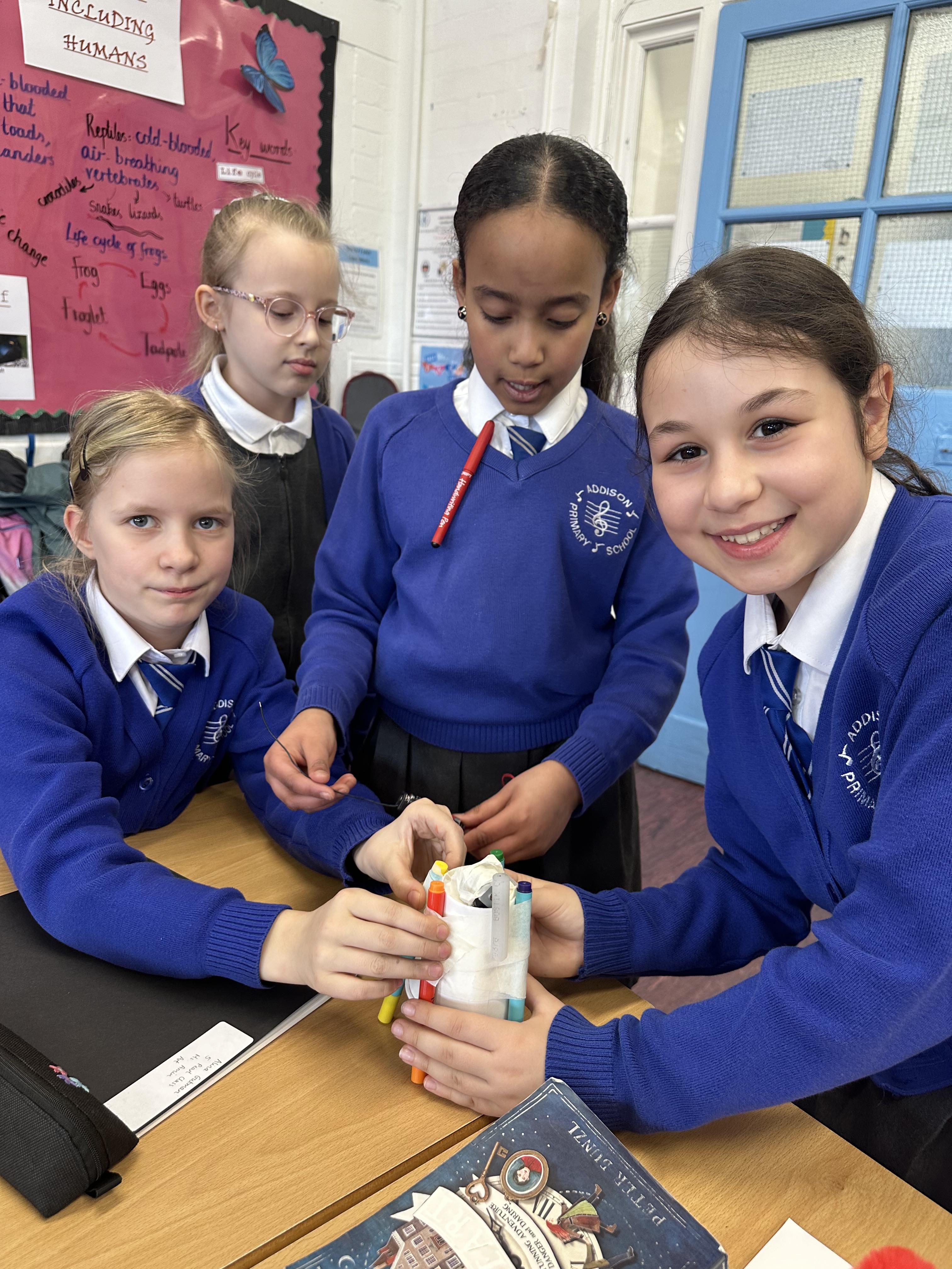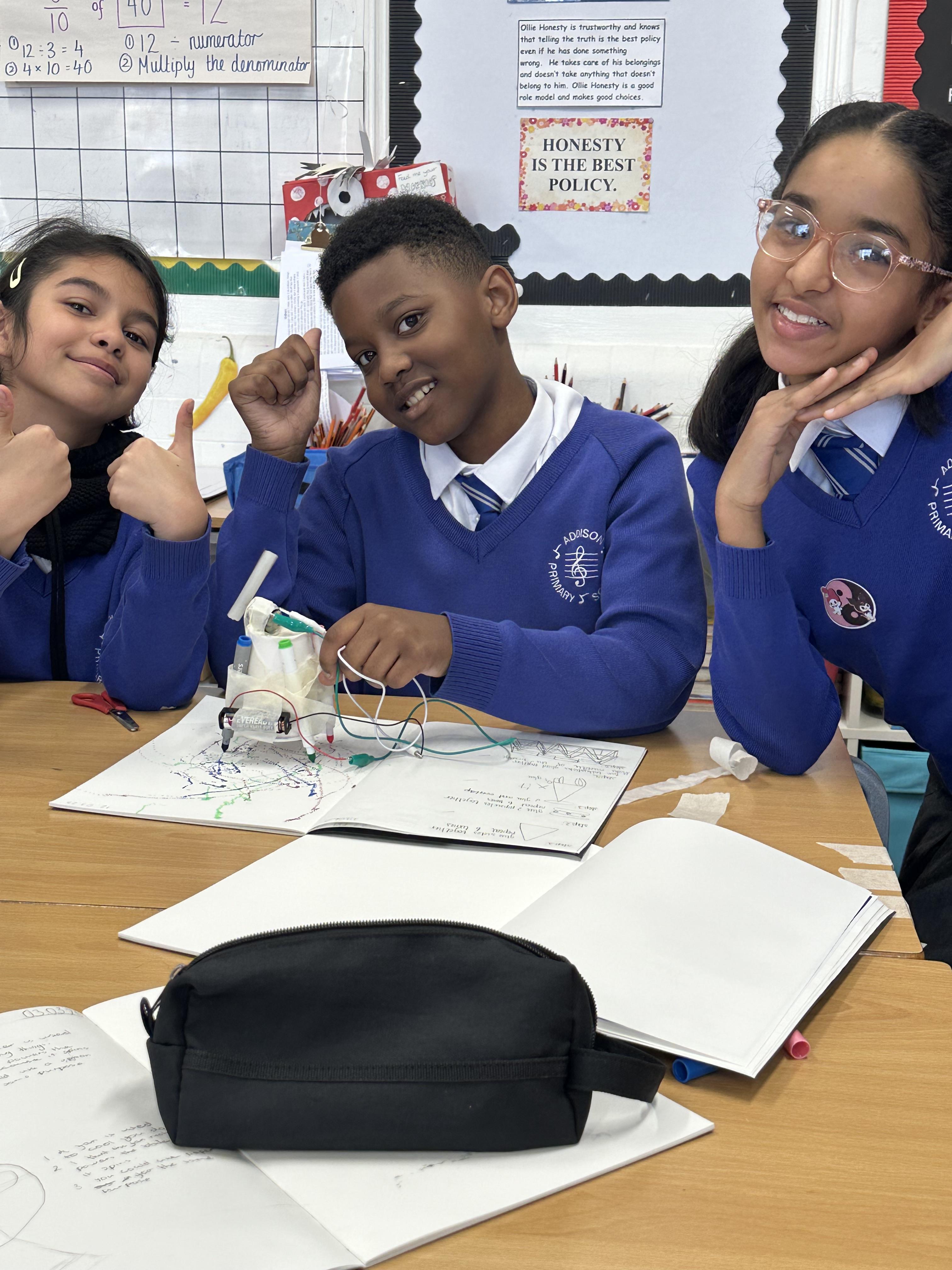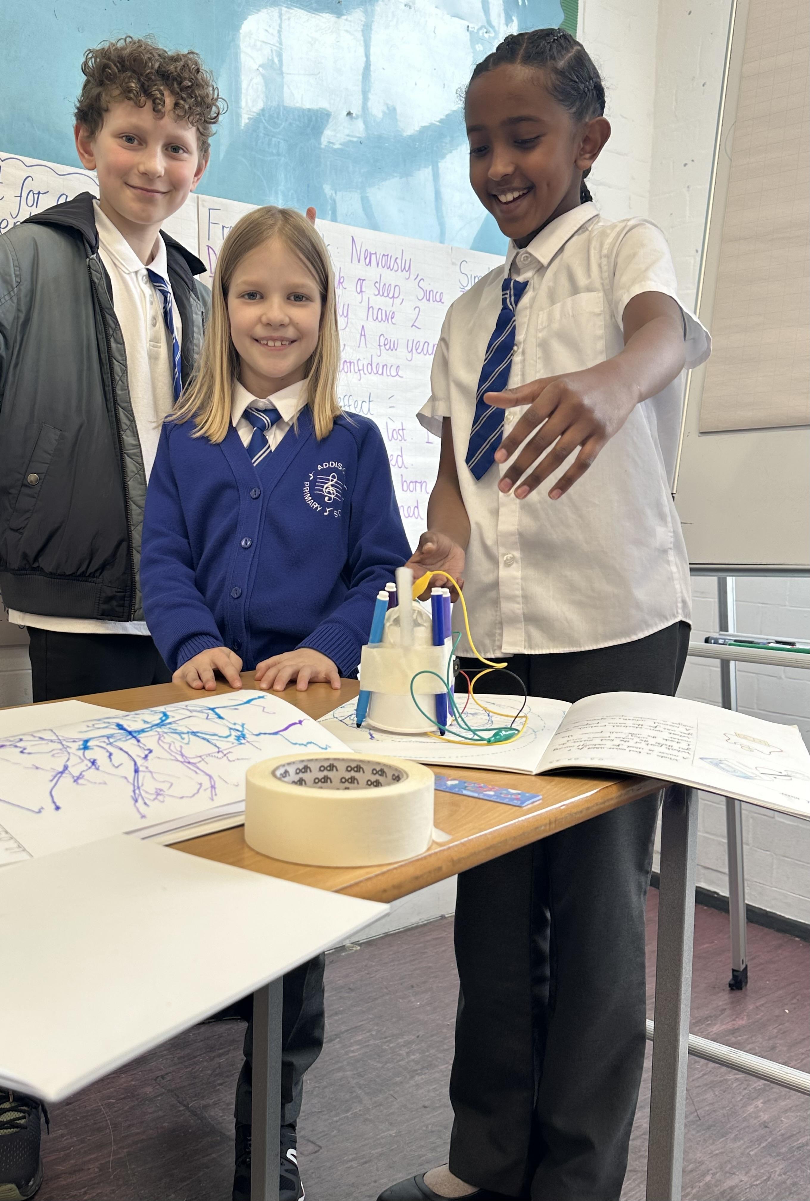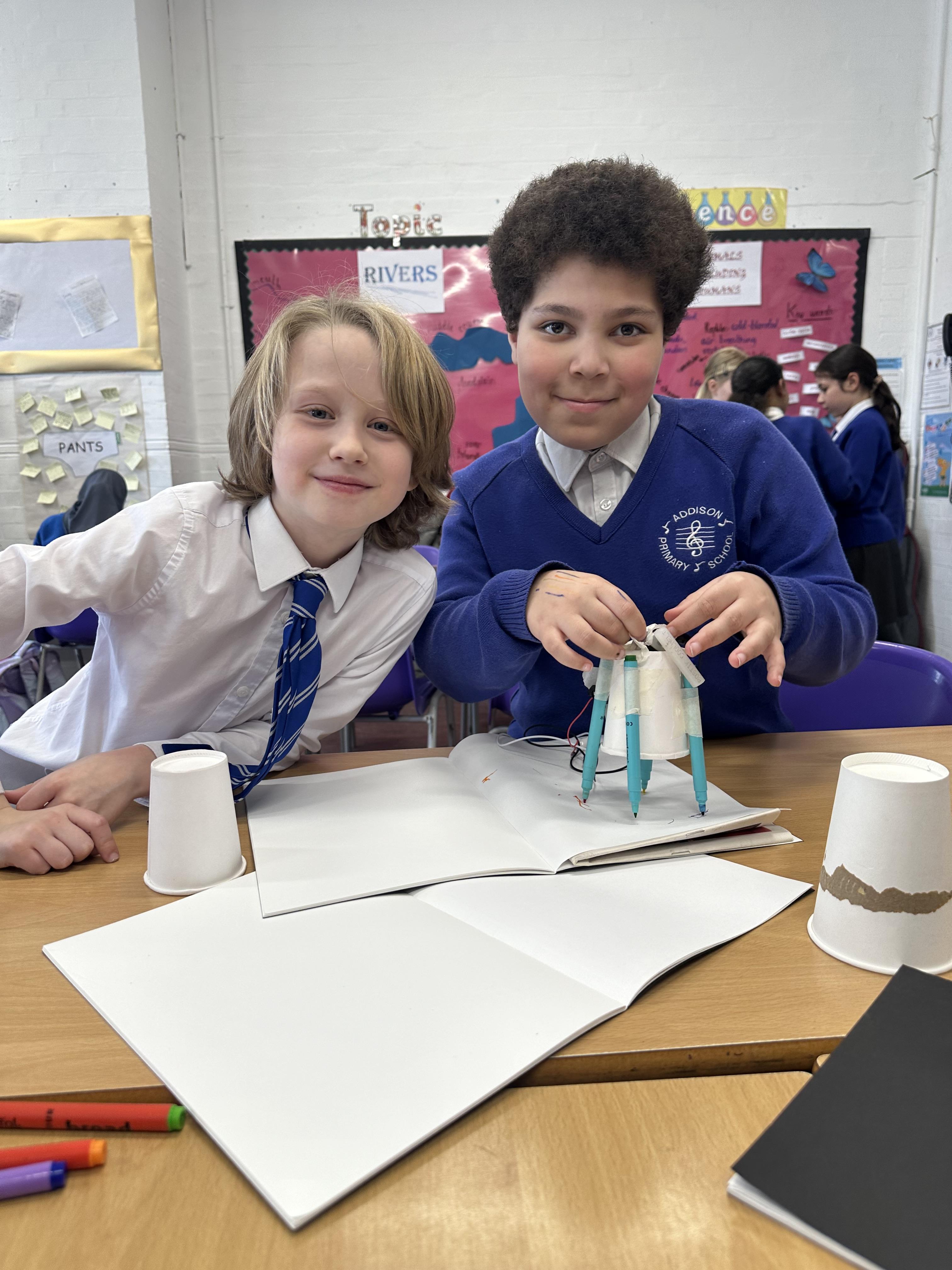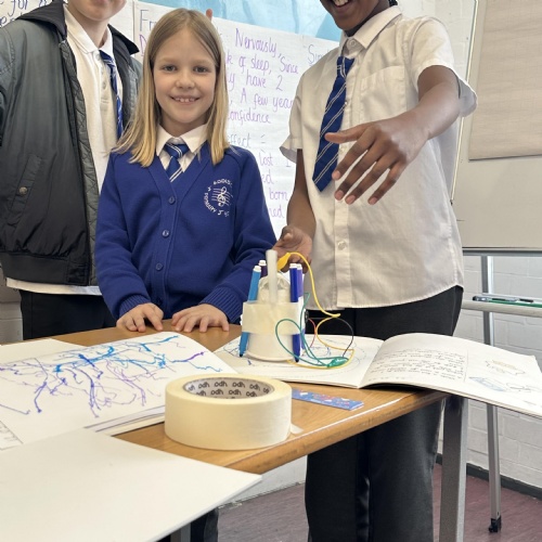 Doodlers- Pupils created their own doodlers in DT using paper cups, crocodile wires, a motor, a battery and their own art supplies.