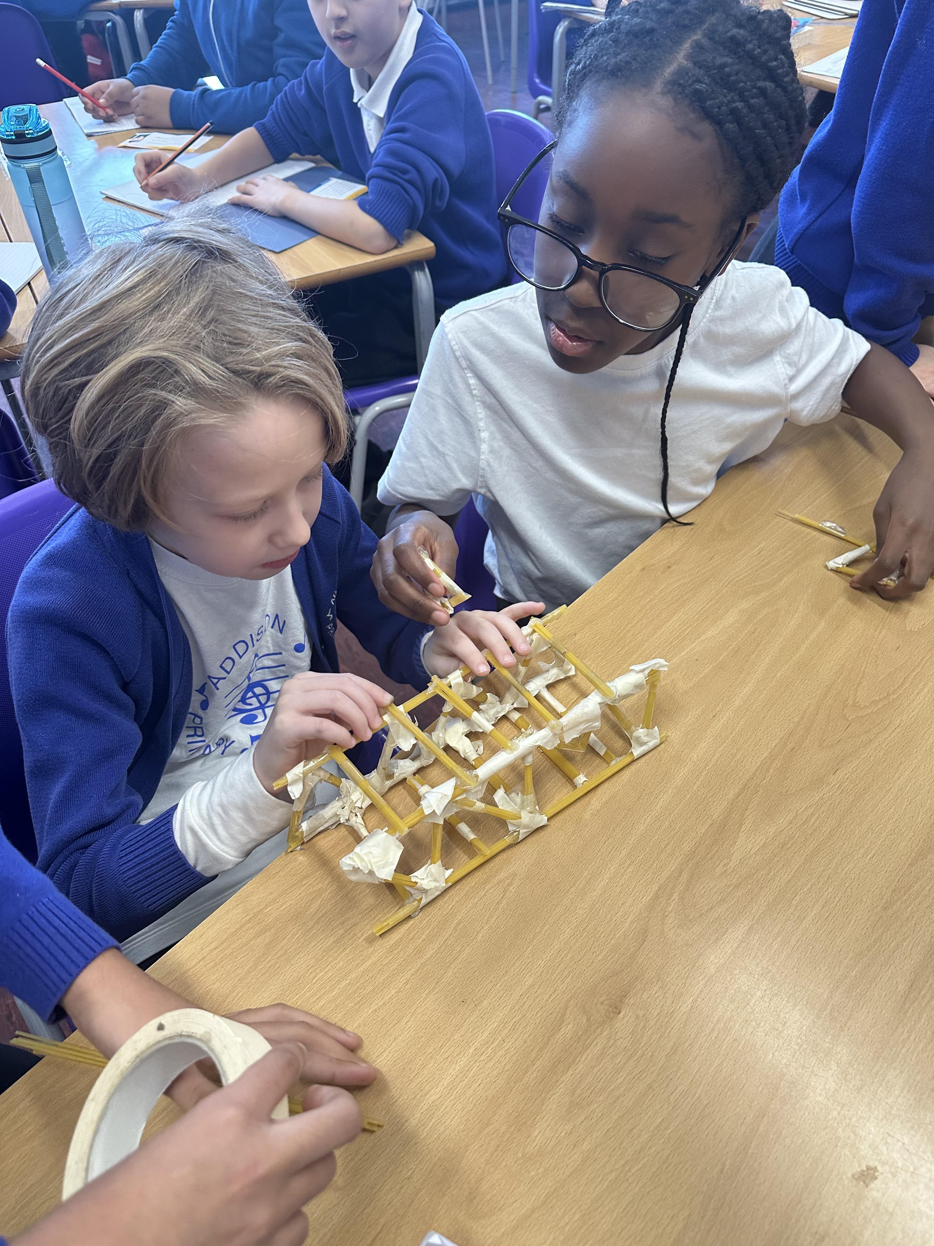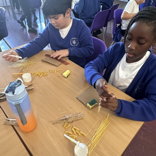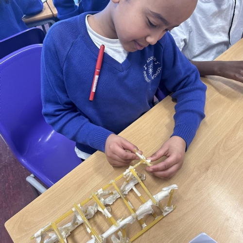 Year 5 created a spaghetti truss bridge as part of our DT unit: Building Bridges.