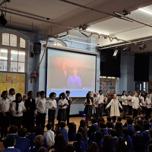 Pupils performed their song, Midnight Gang, using the backing track of Believer by Imagine Dragons. Dressed in their pyjamas, they came together to bring The Midnight Gang to life, using balloons to re-enact scenes from David Walliams' book.