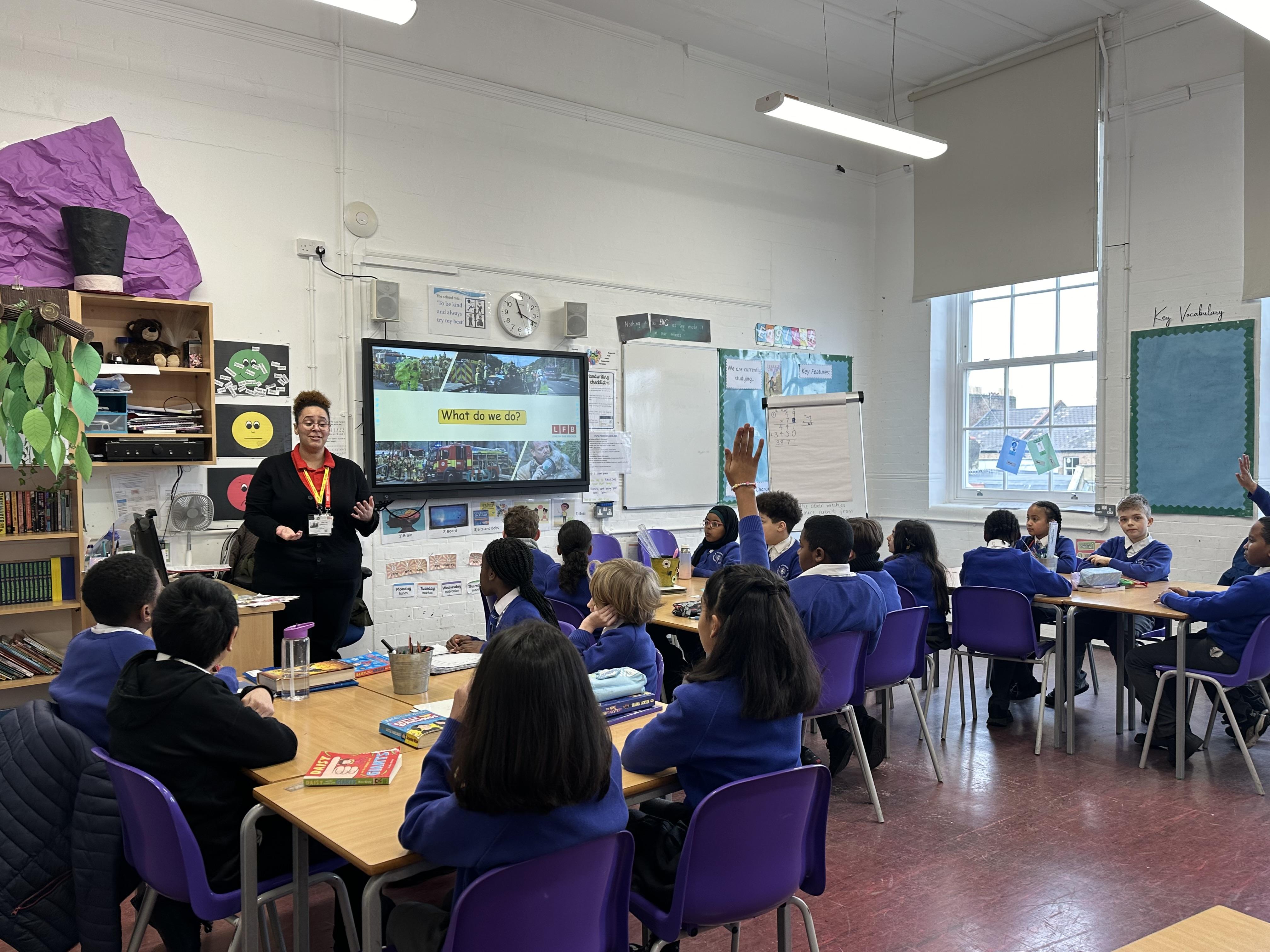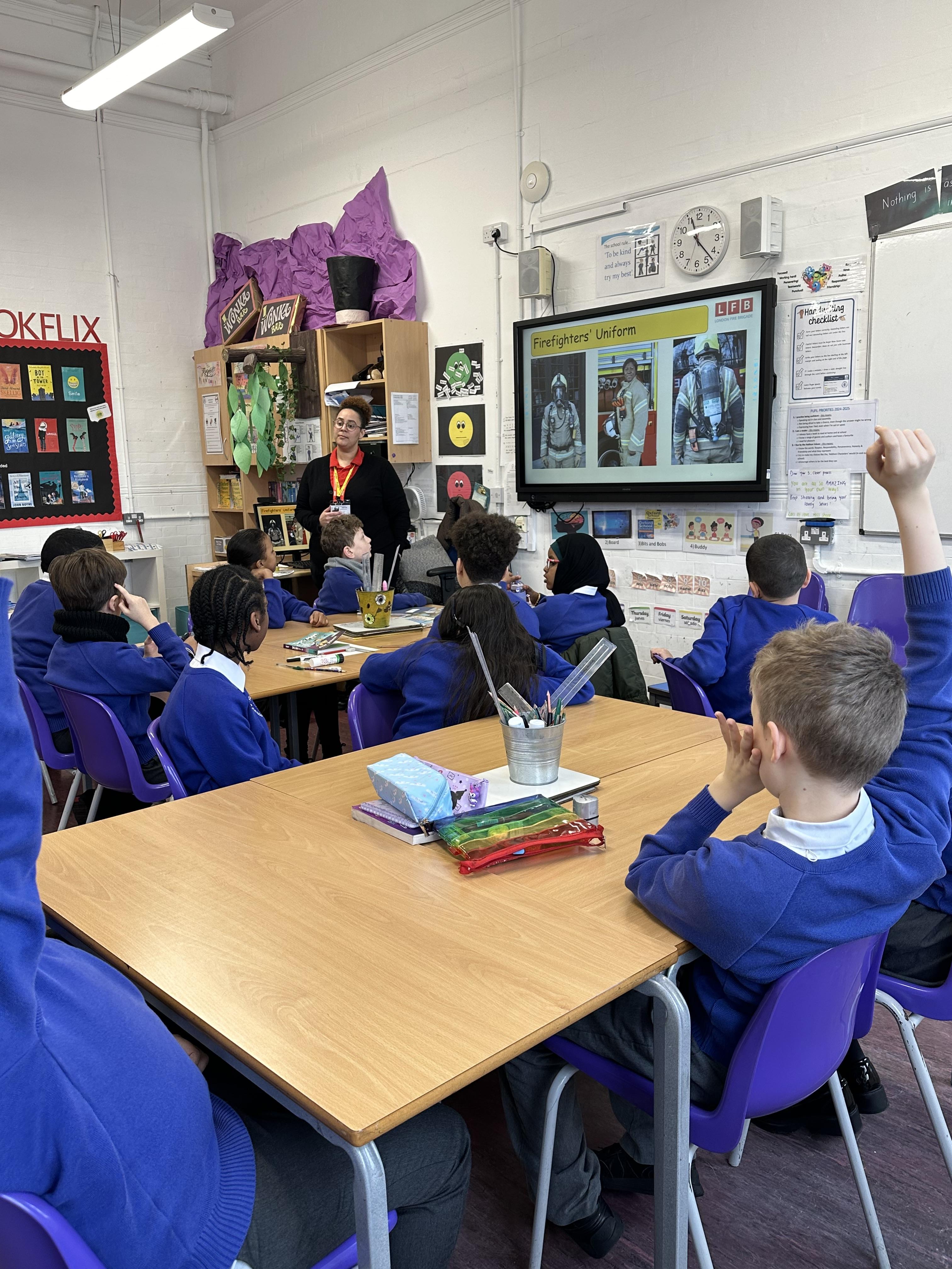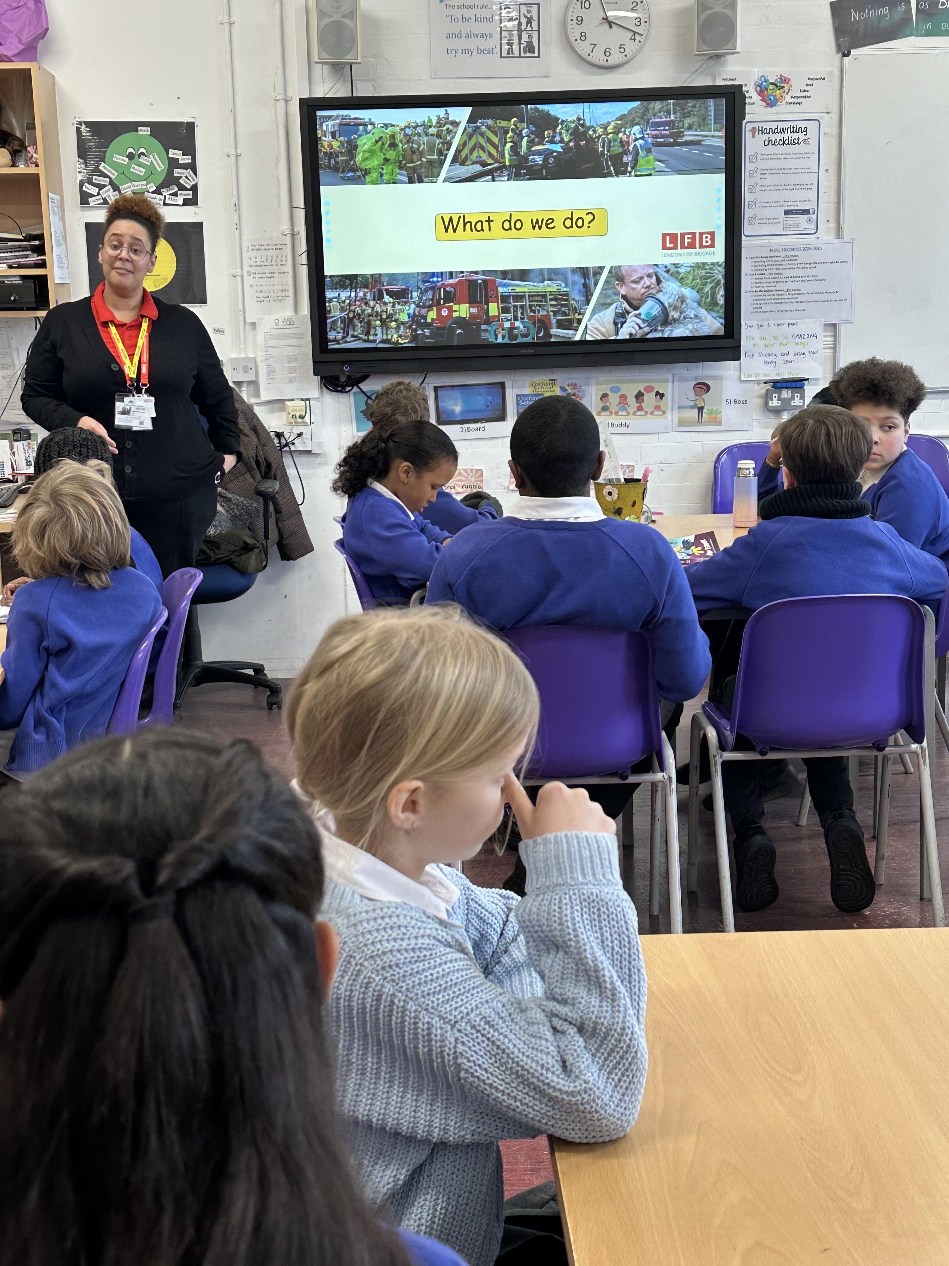 The local fire brigade (LFB) visited Year 5 for a workshop to teach the children about fire safety. During the session, the firefighter explained the importance of having working smoke alarms and practising a fire escape plan at home. They demonstrated how to 'Stop, Drop, and Roll' if clothing catches fire and discussed the dangers of playing with matches or lighters. The children had the opportunity to ask questions and learn about the protective gear and equipment used by firefighters.