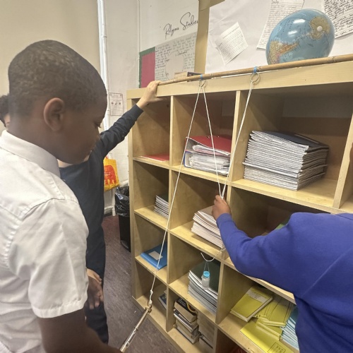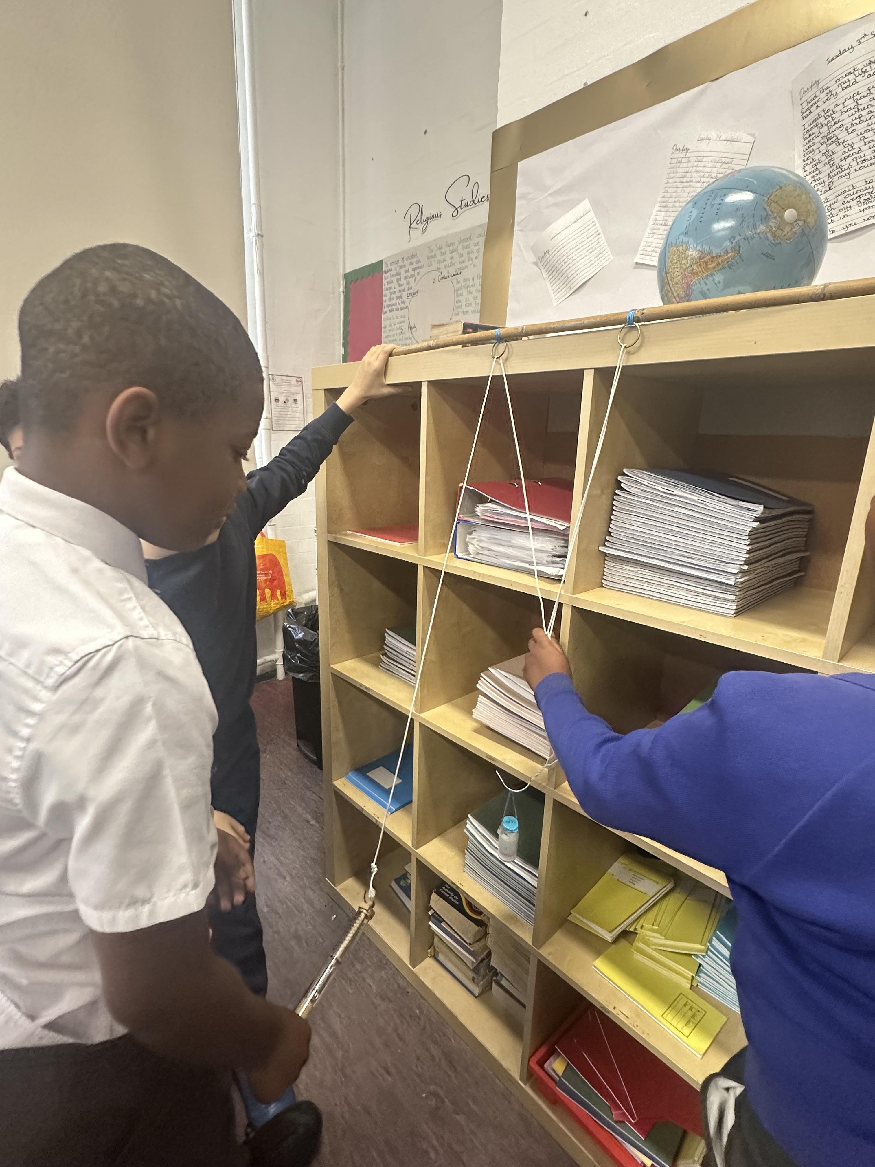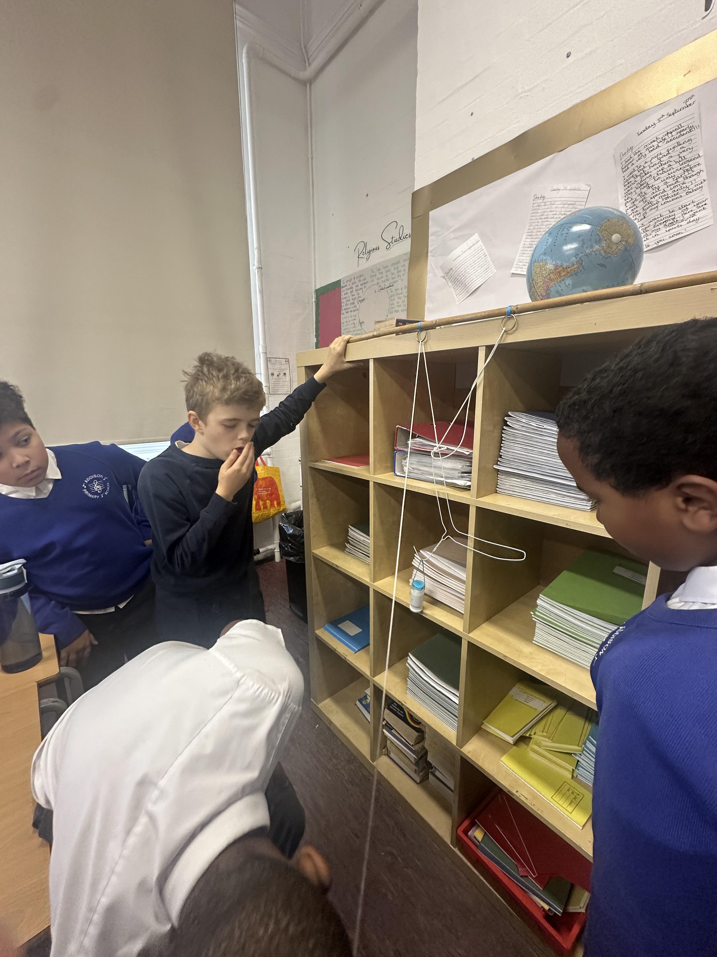 Experimenting how pulleys can affect the force to lift a load!