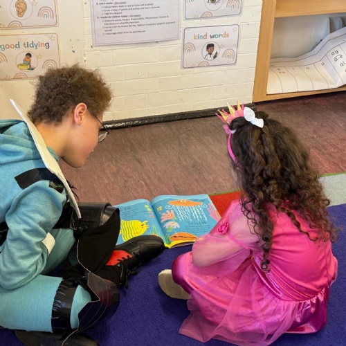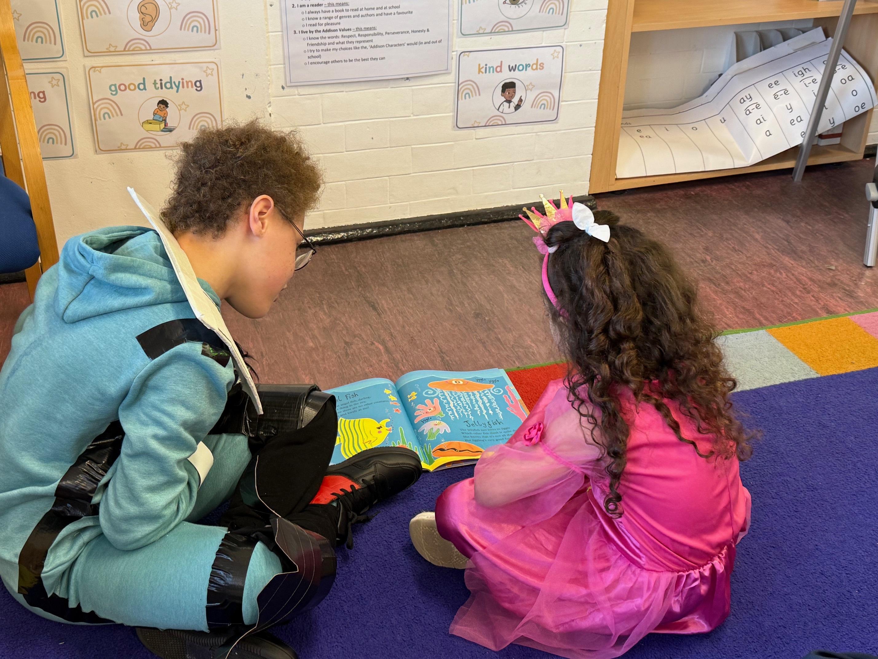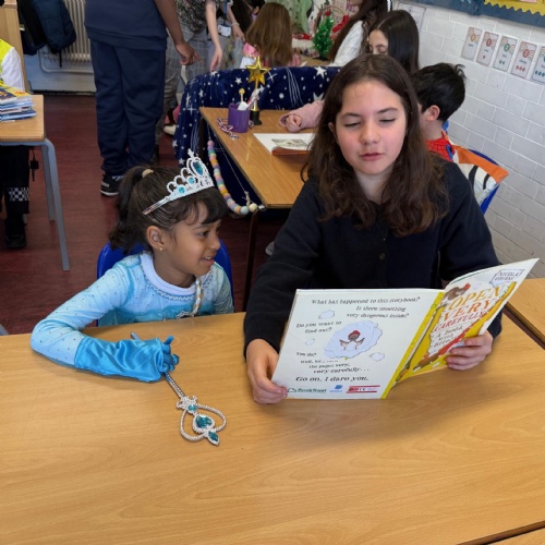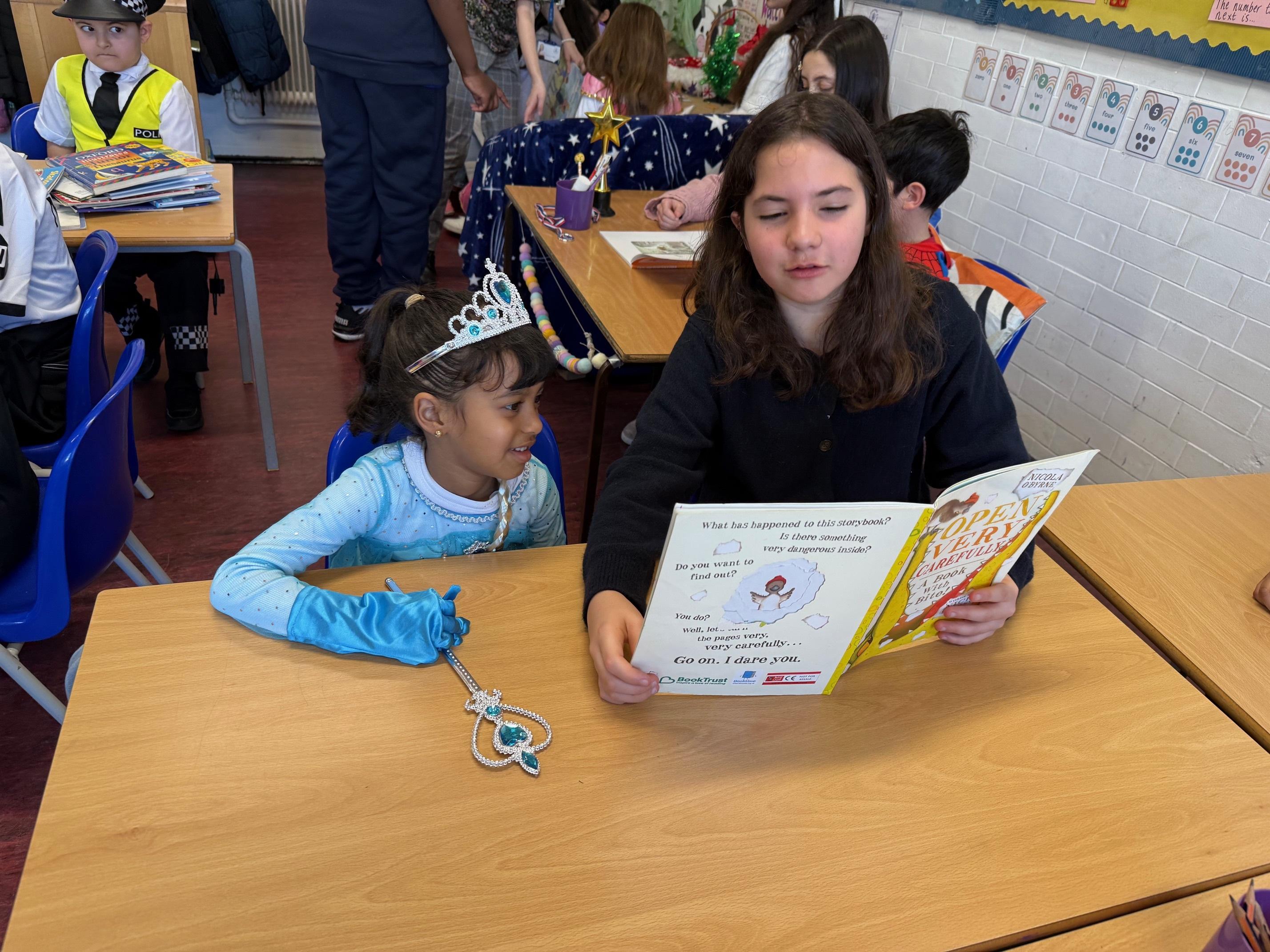 For Book Day, the Year 6 students dressed as their favorite characters, bringing their beloved stories to life. They enjoyed reading with the Year 1 children, sharing magical adventures and inspiring a love for books.