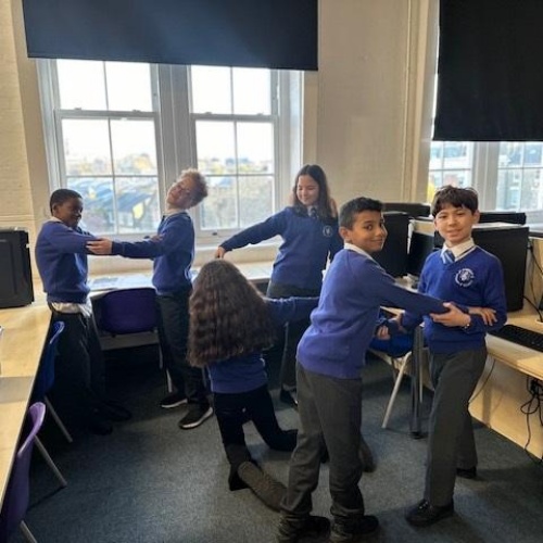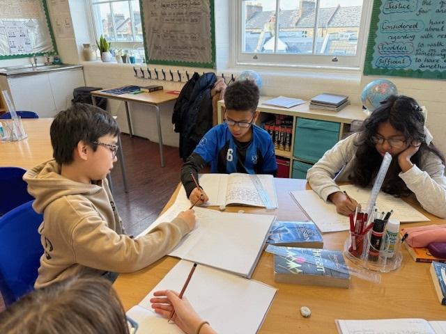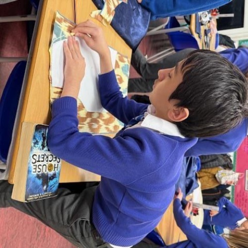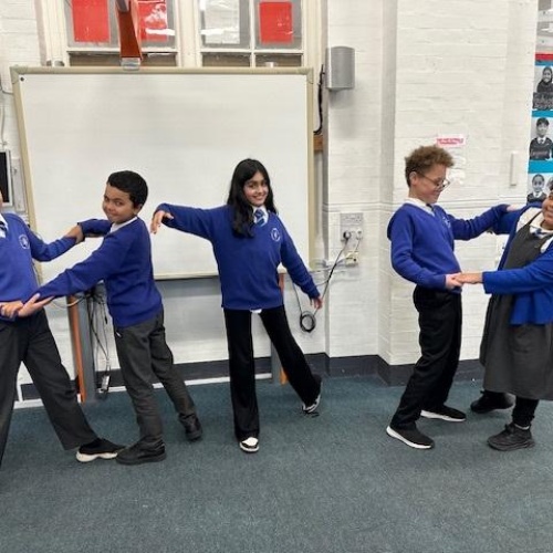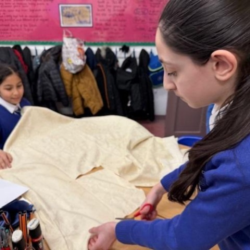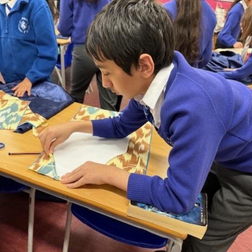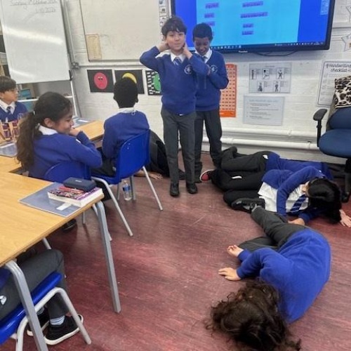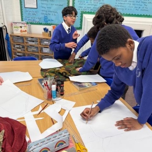 In Art, students explored the meaning of a piece of artwork through creative drama, using movement and dialogue to express their interpretations. Inspired by the activity, they then created their own artwork, reflecting their personal responses and ideas.